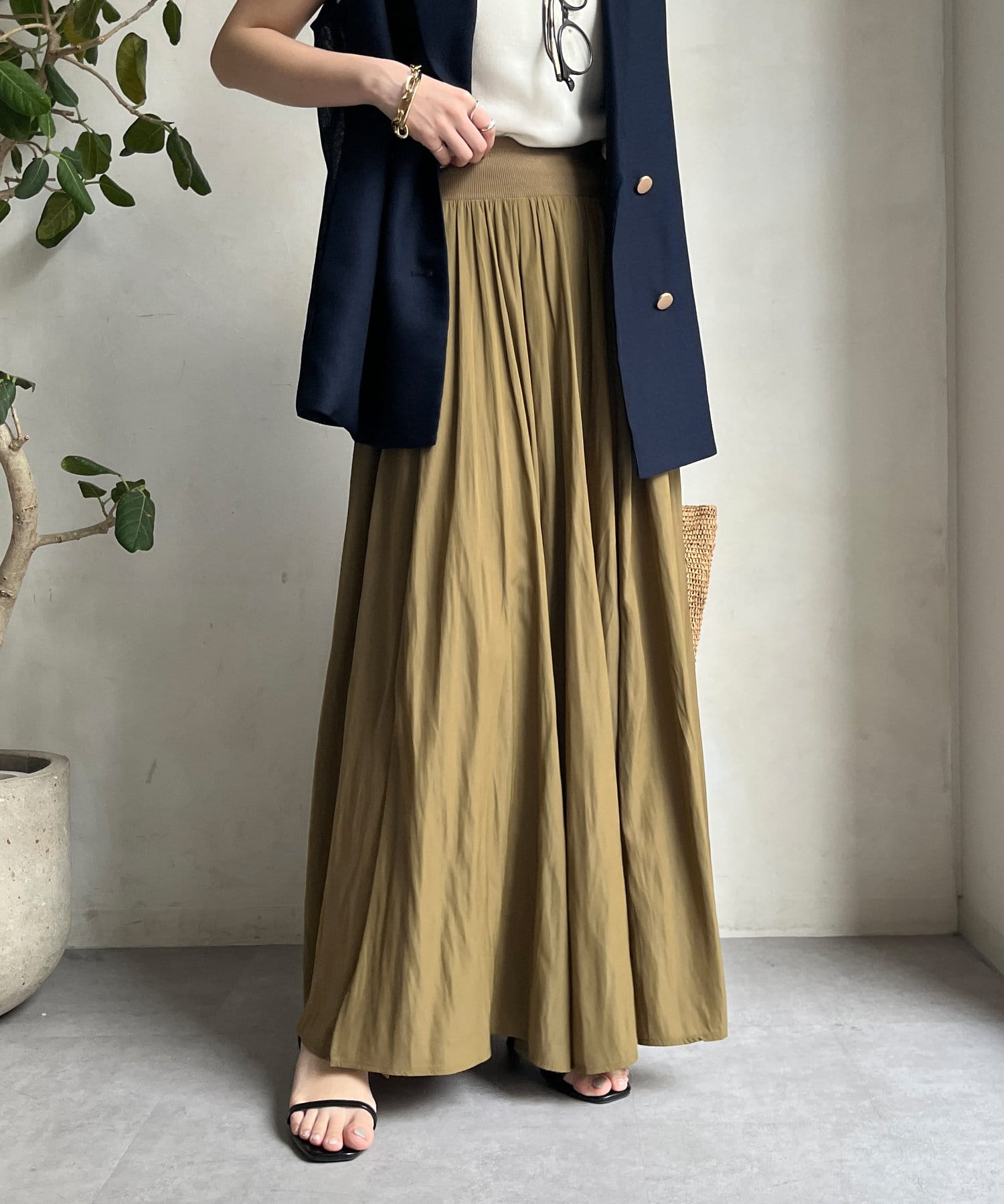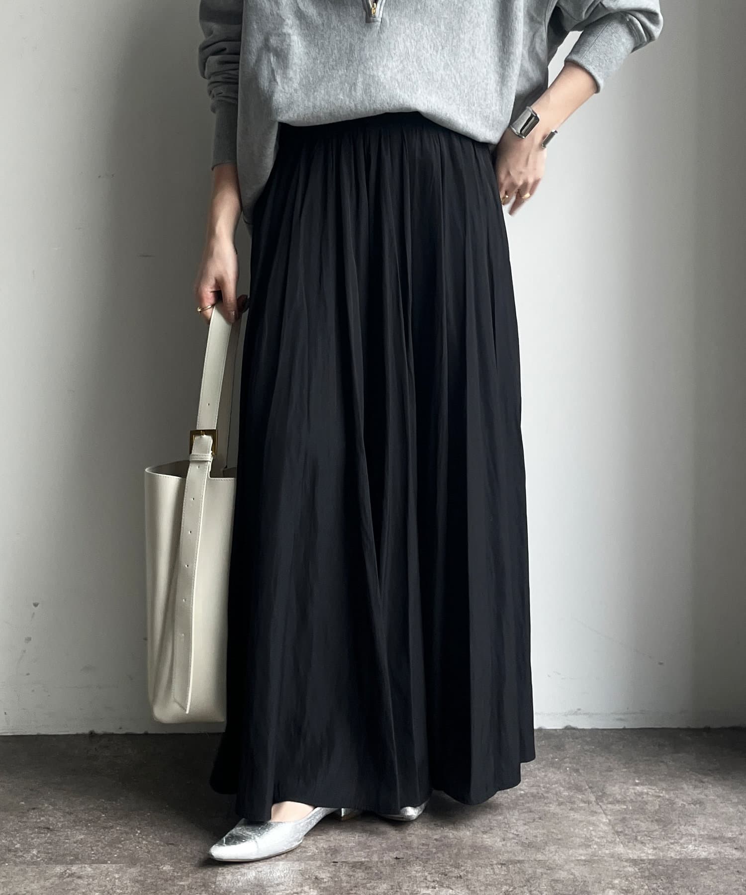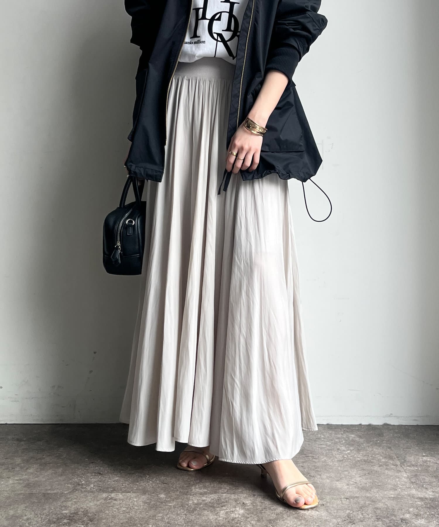 ギャザーを寄せることで、ふんわりと裾に向かって広がるシルエットを演出。