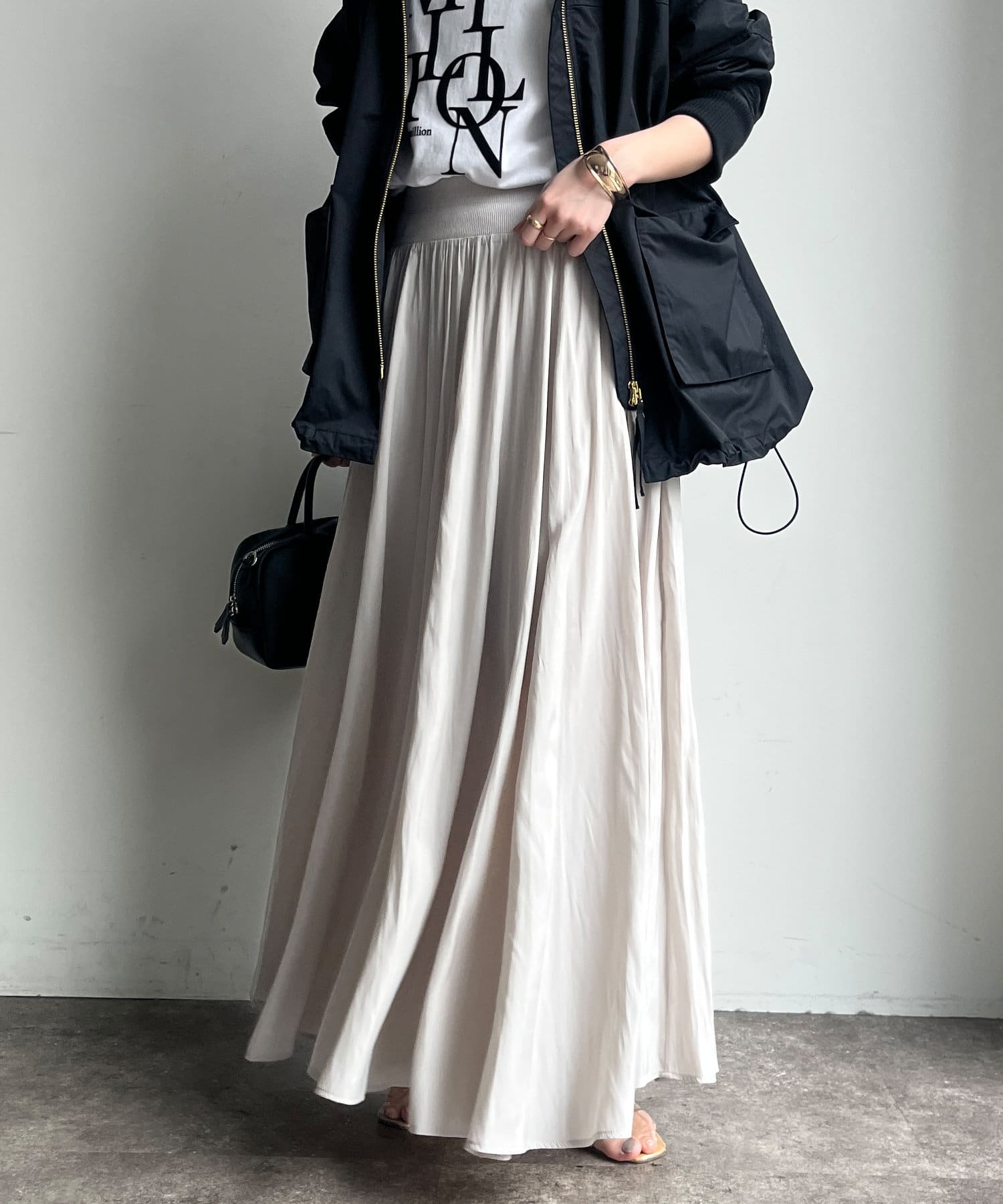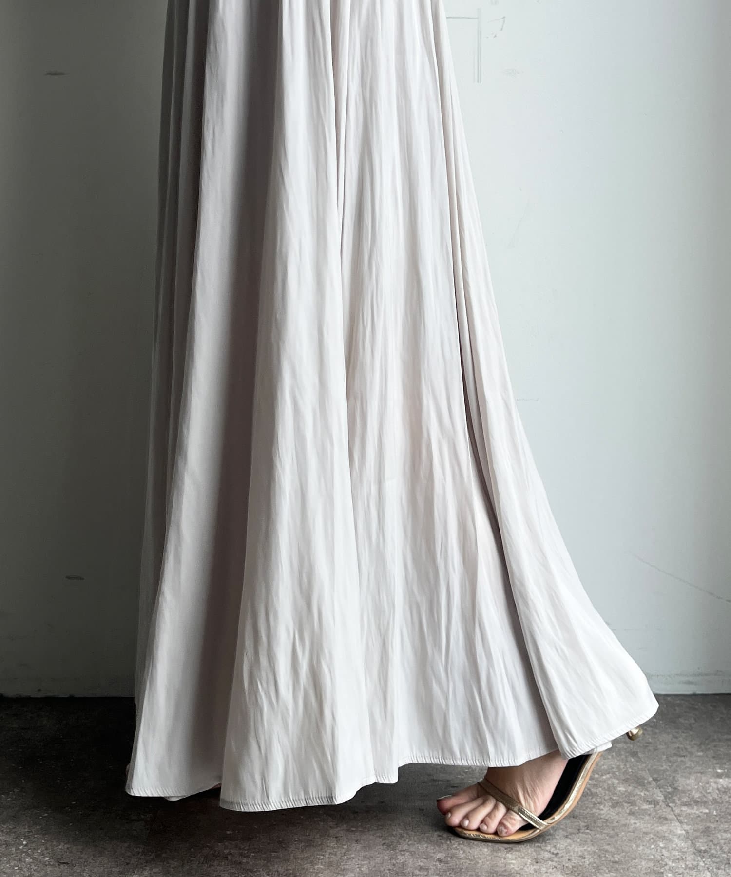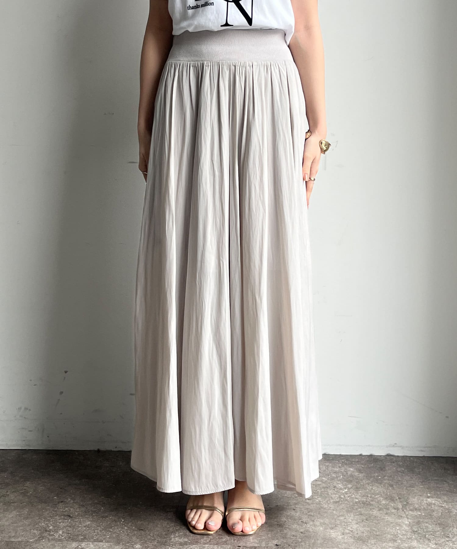 ギャザーを寄せることで、ふんわりと裾に向かって広がるシルエットを演出。