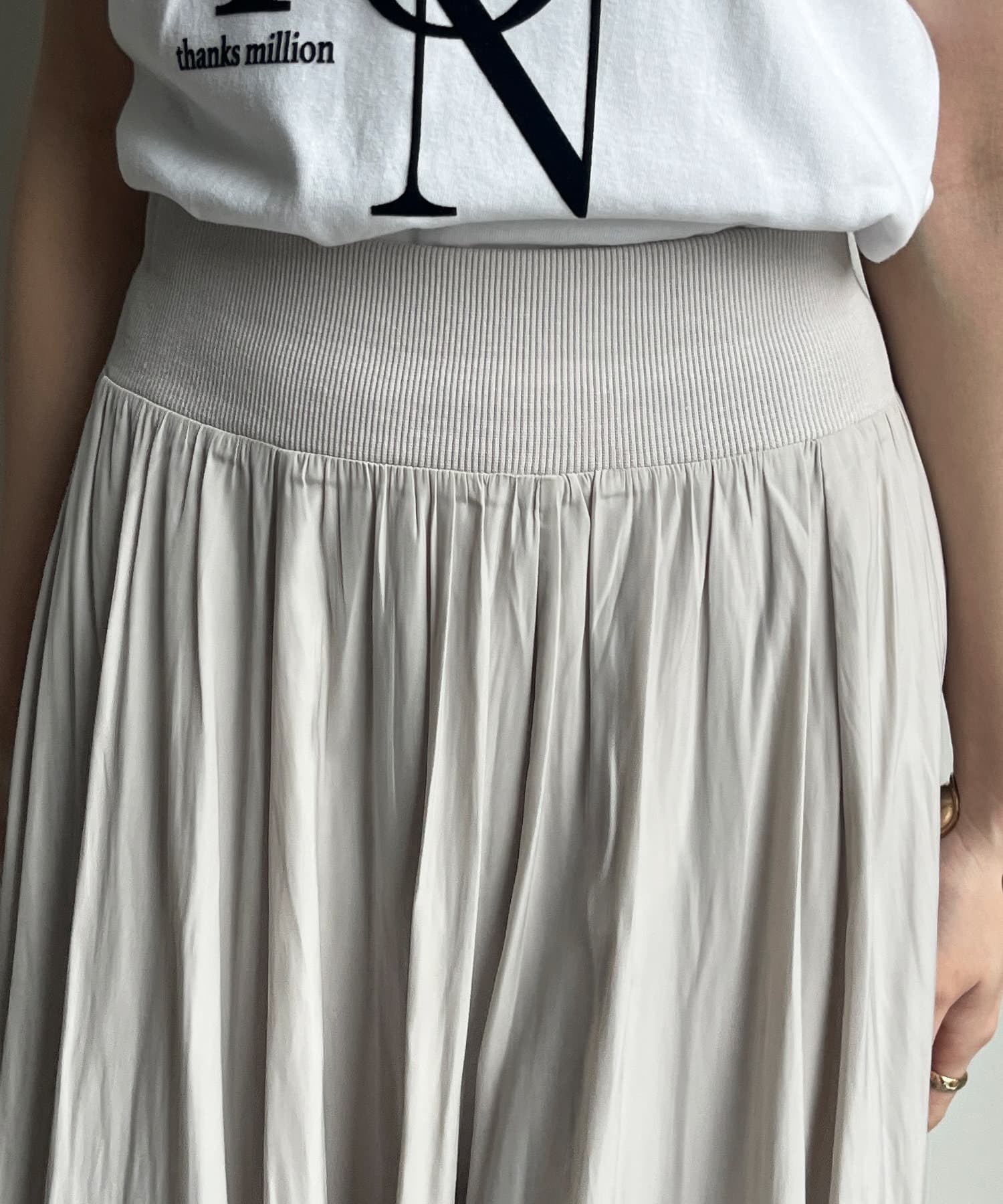 ウエスト部分をリブ素材に切り替えたフレアスカート。