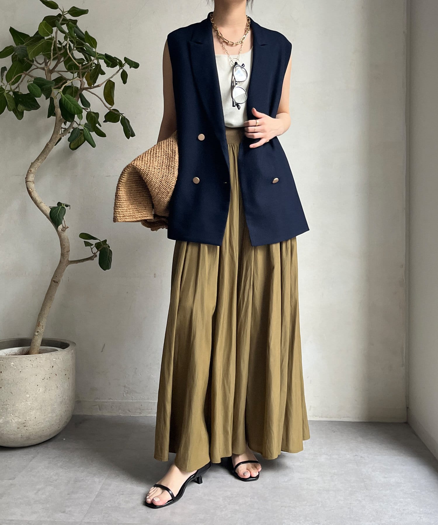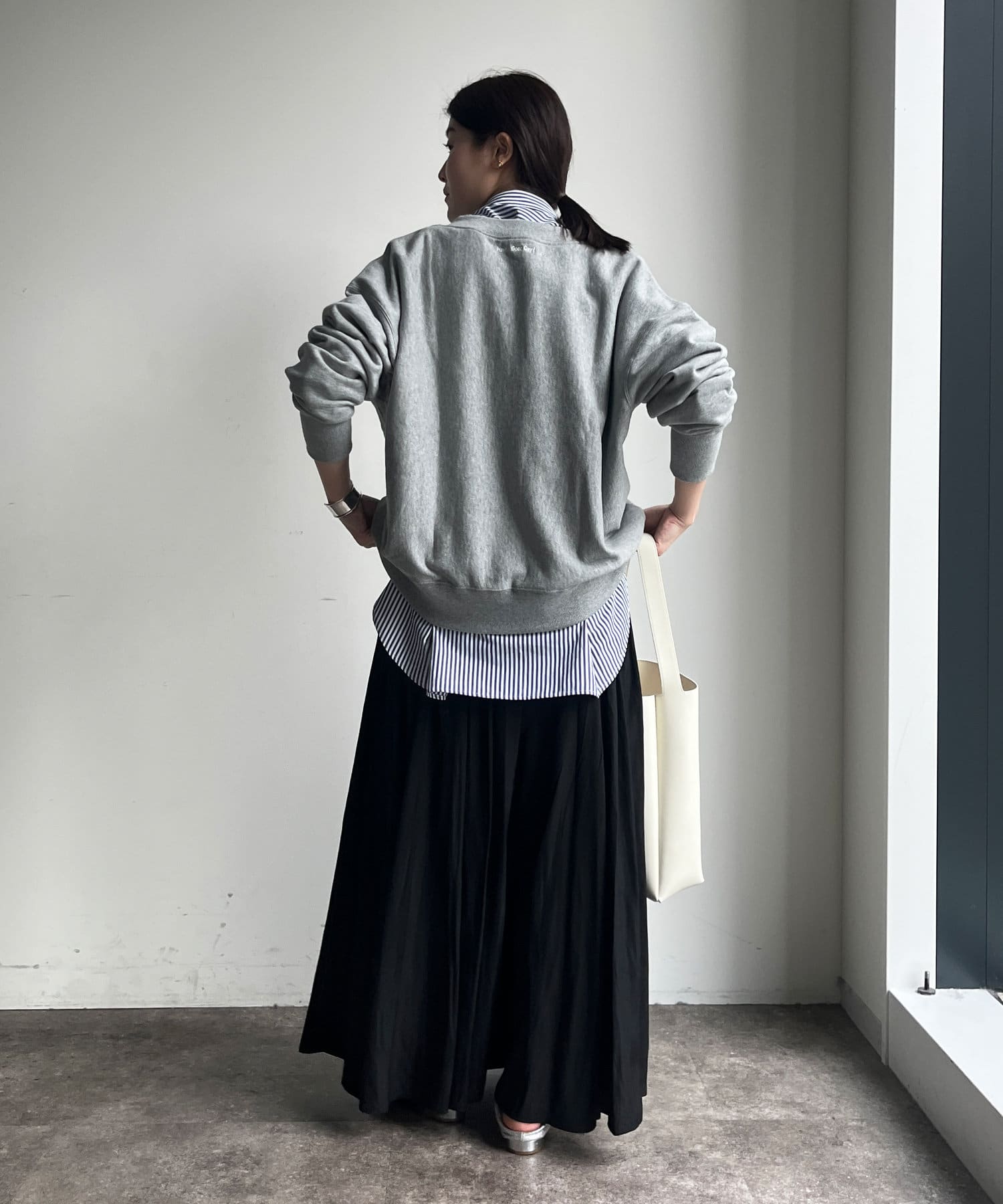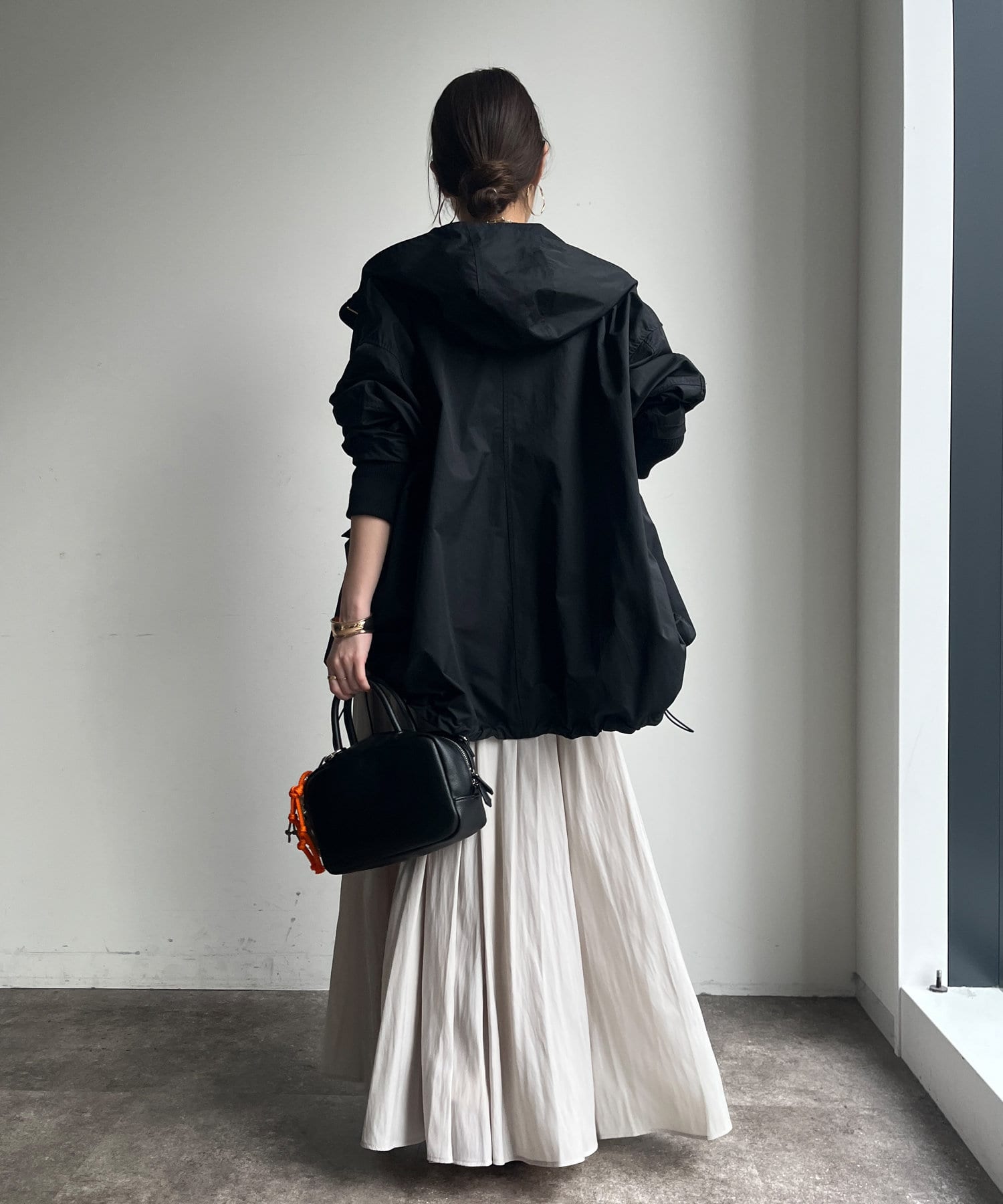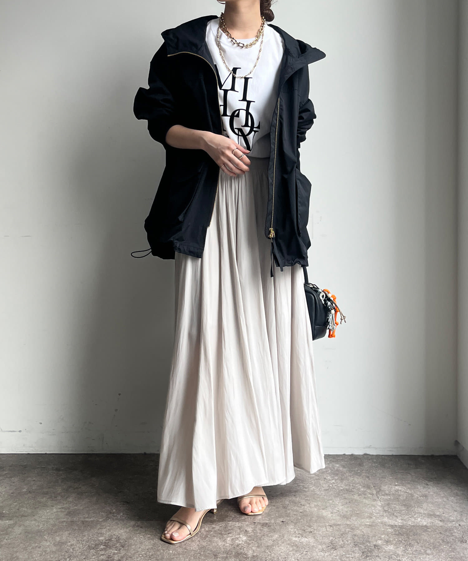 分量感はあるものの、片方の裾にはスリットを加えているため重たくなりすぎず、抜け感を与えてくれます。