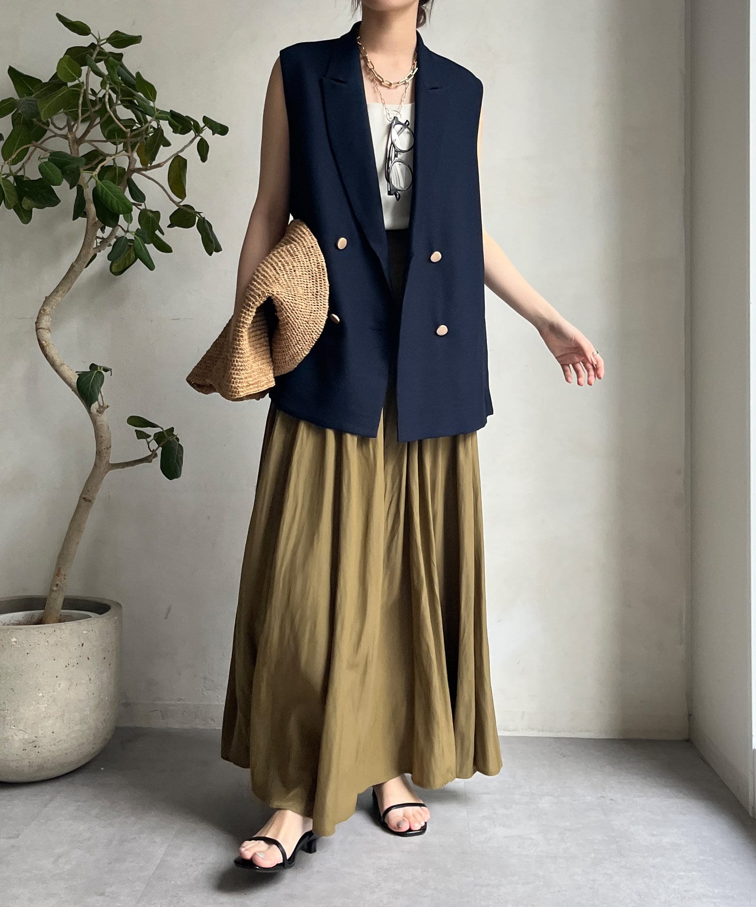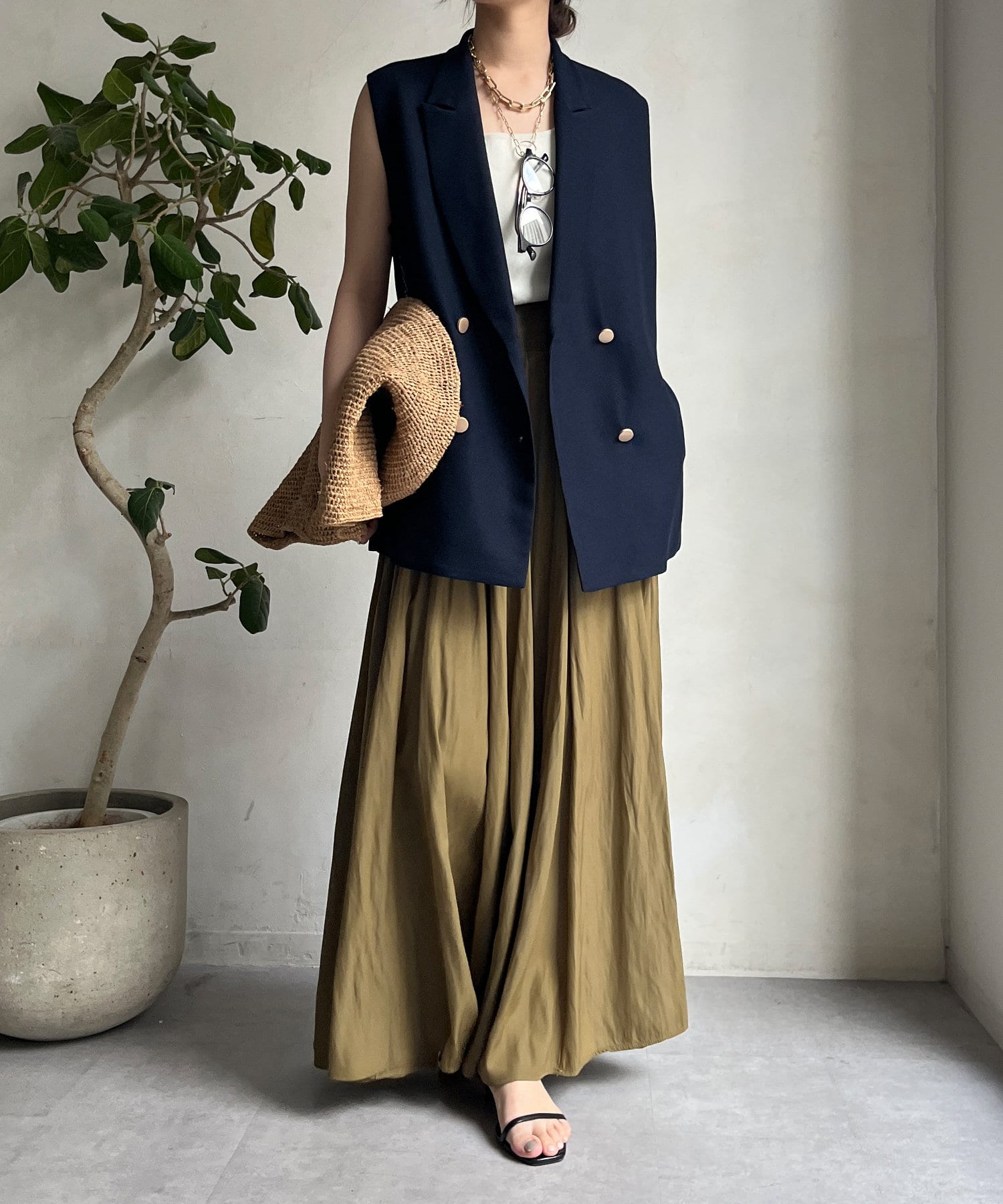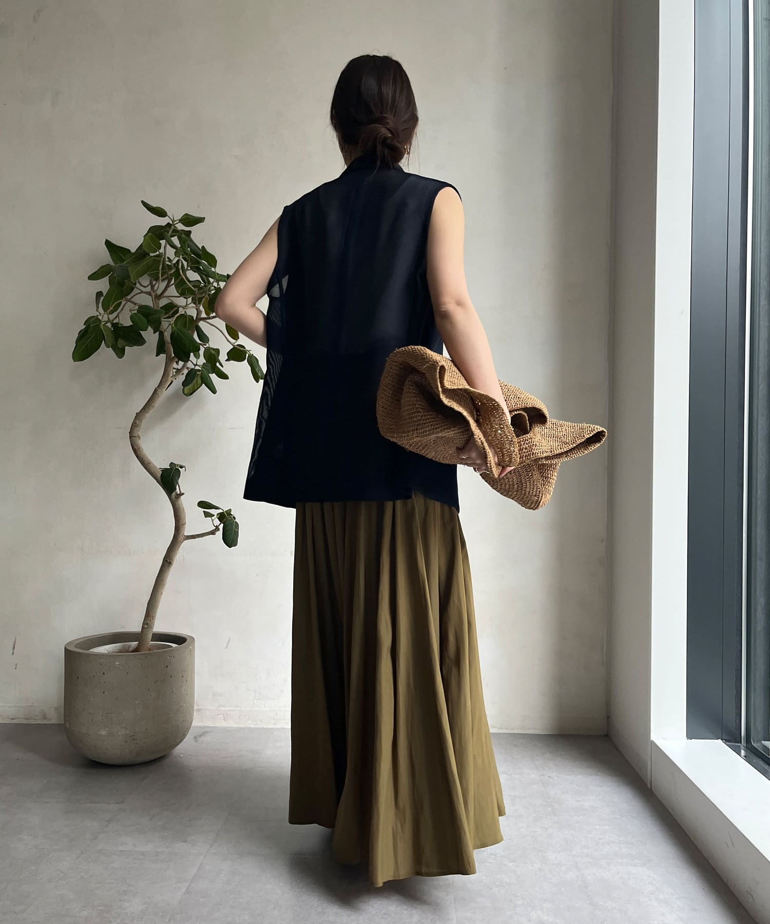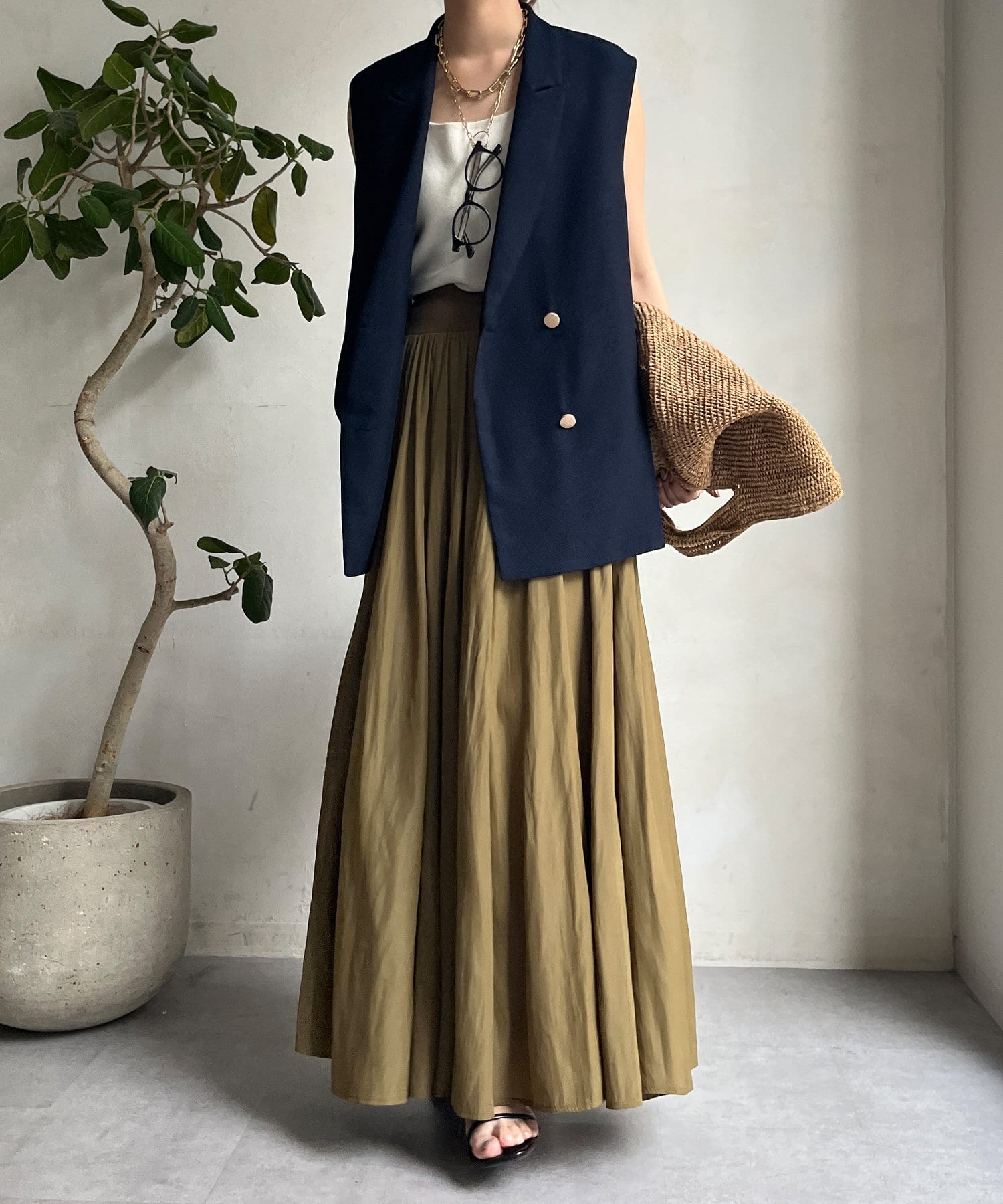 分量感はあるものの、片方の裾にはスリットを加えているため重たくなりすぎず、抜け感を与えてくれます。