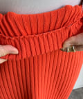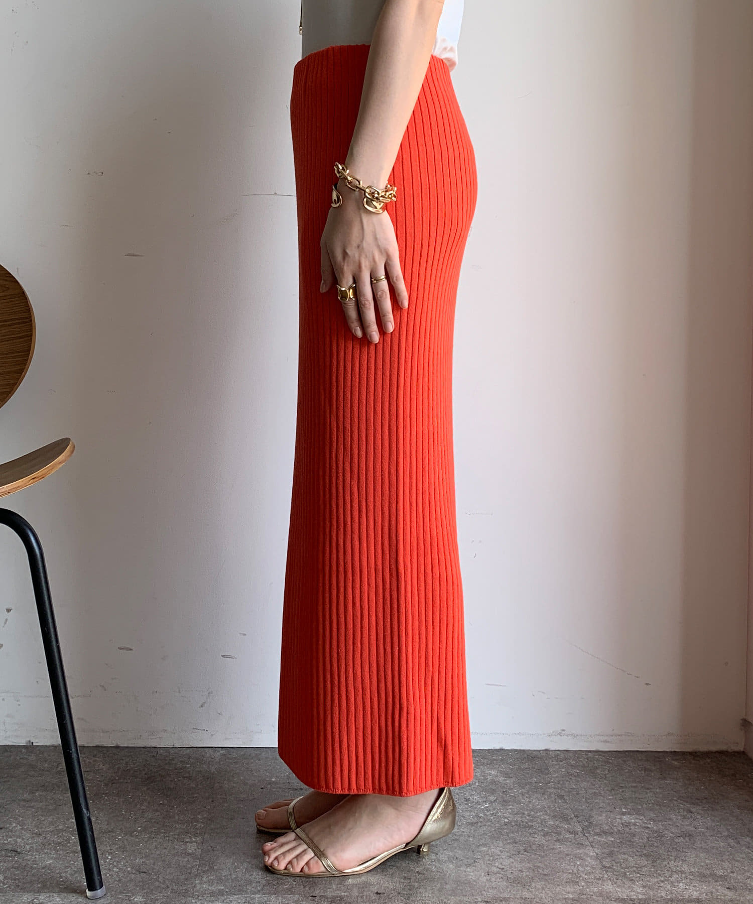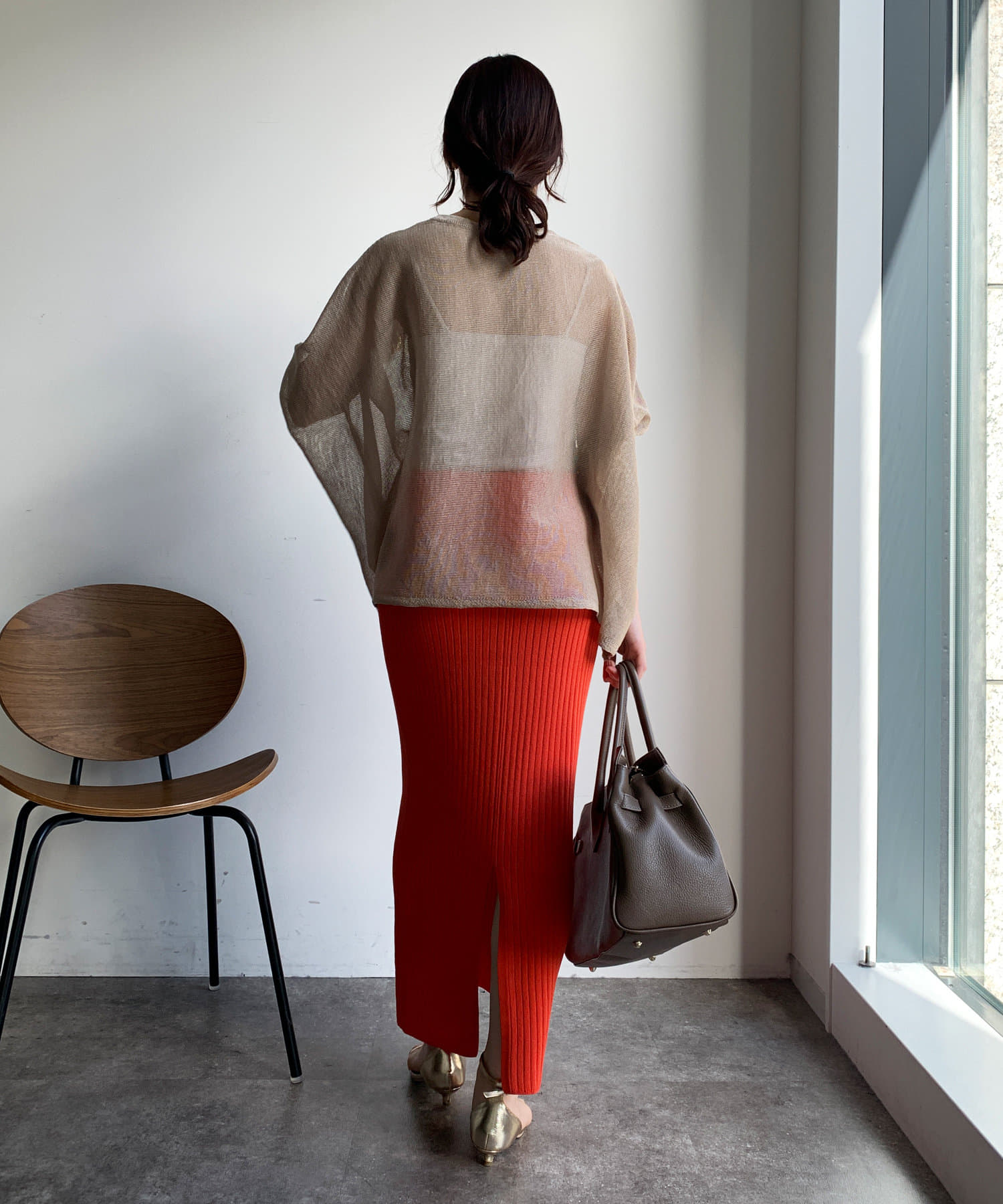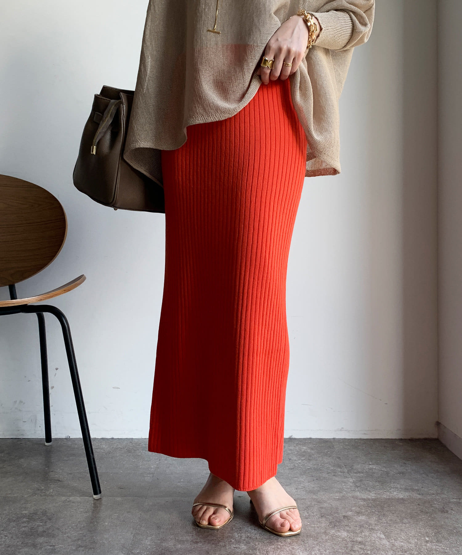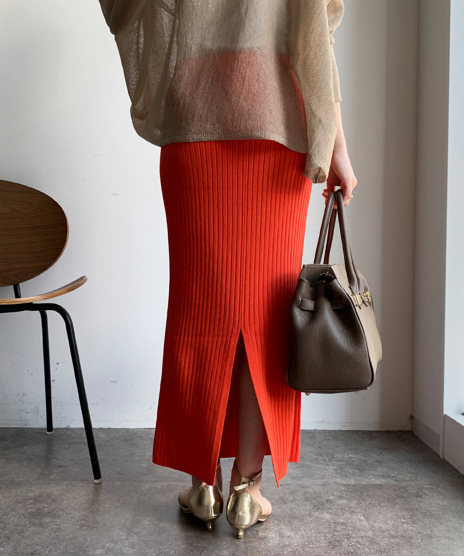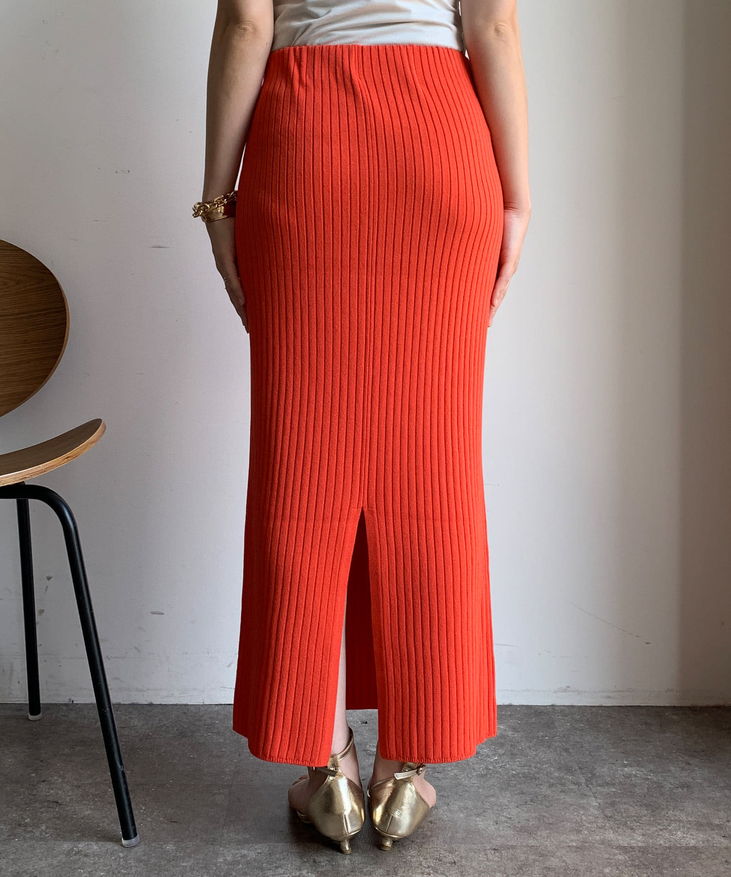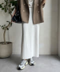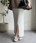 バックにはスリットを施し、抜け感をプラス。ウエストはもちろんオールゴム仕様なので、とってもラクチンですよ。