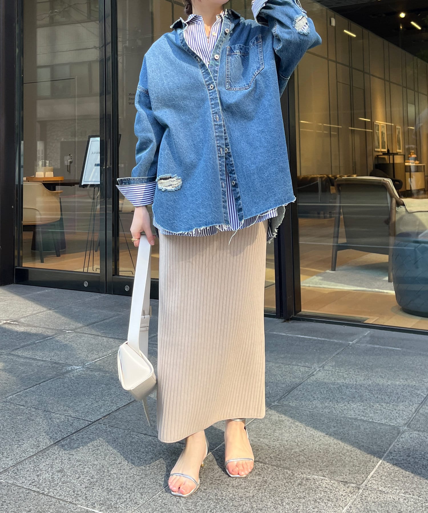 DOUDOUでもたくさん展開している、腰回りをカバーしてくれるルーズなサイズ感のトップスとは特に相性抜群!