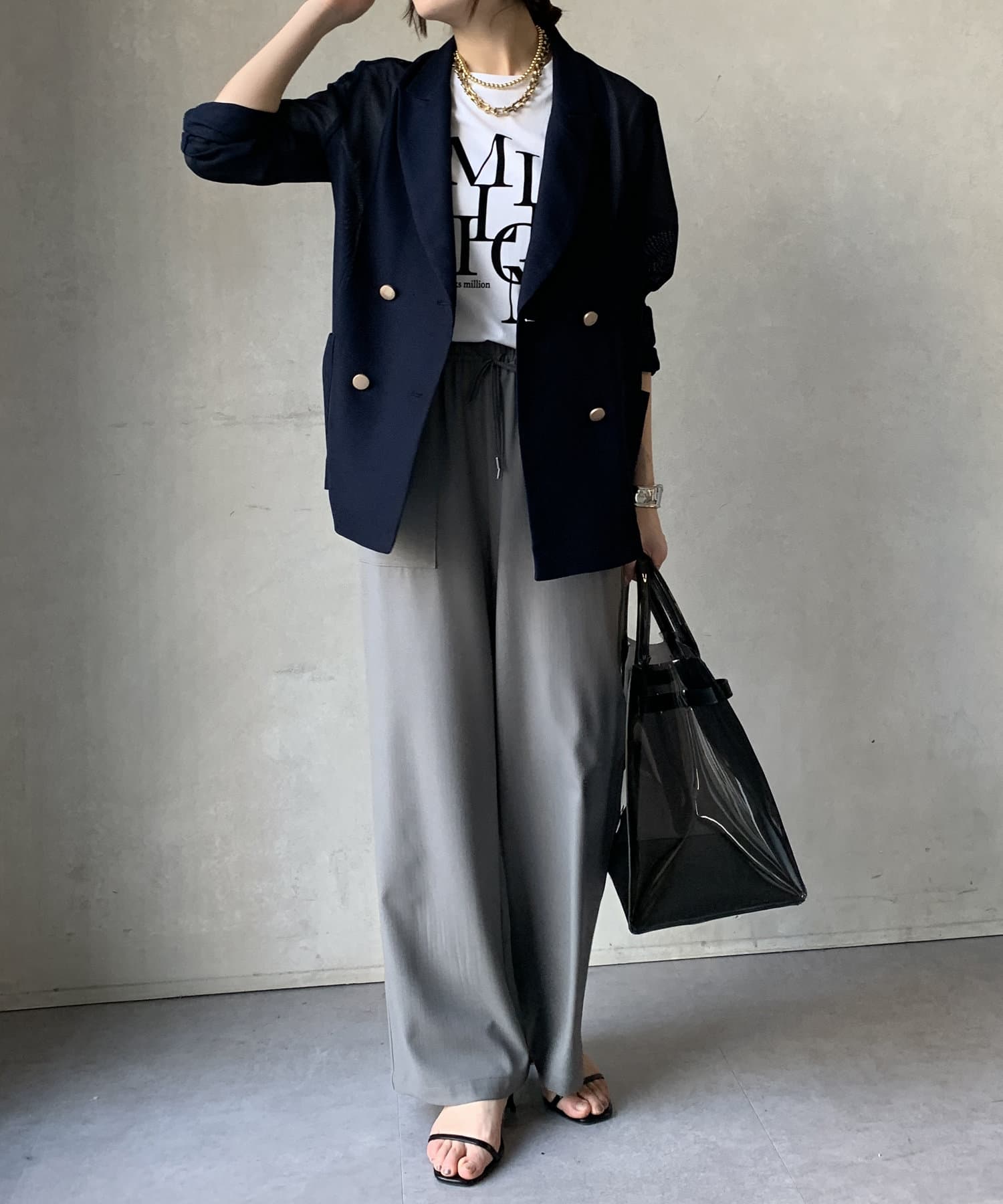 すっと落ち感のあるシルエットで、細見え効果も〇