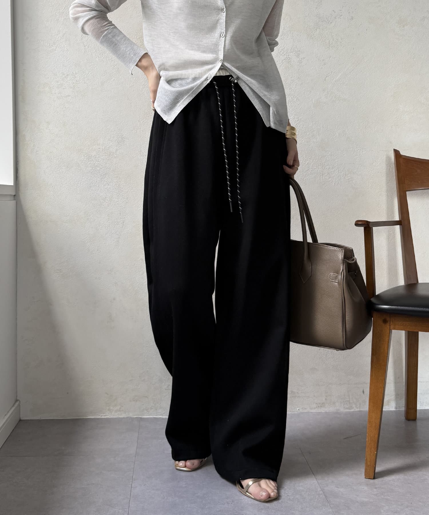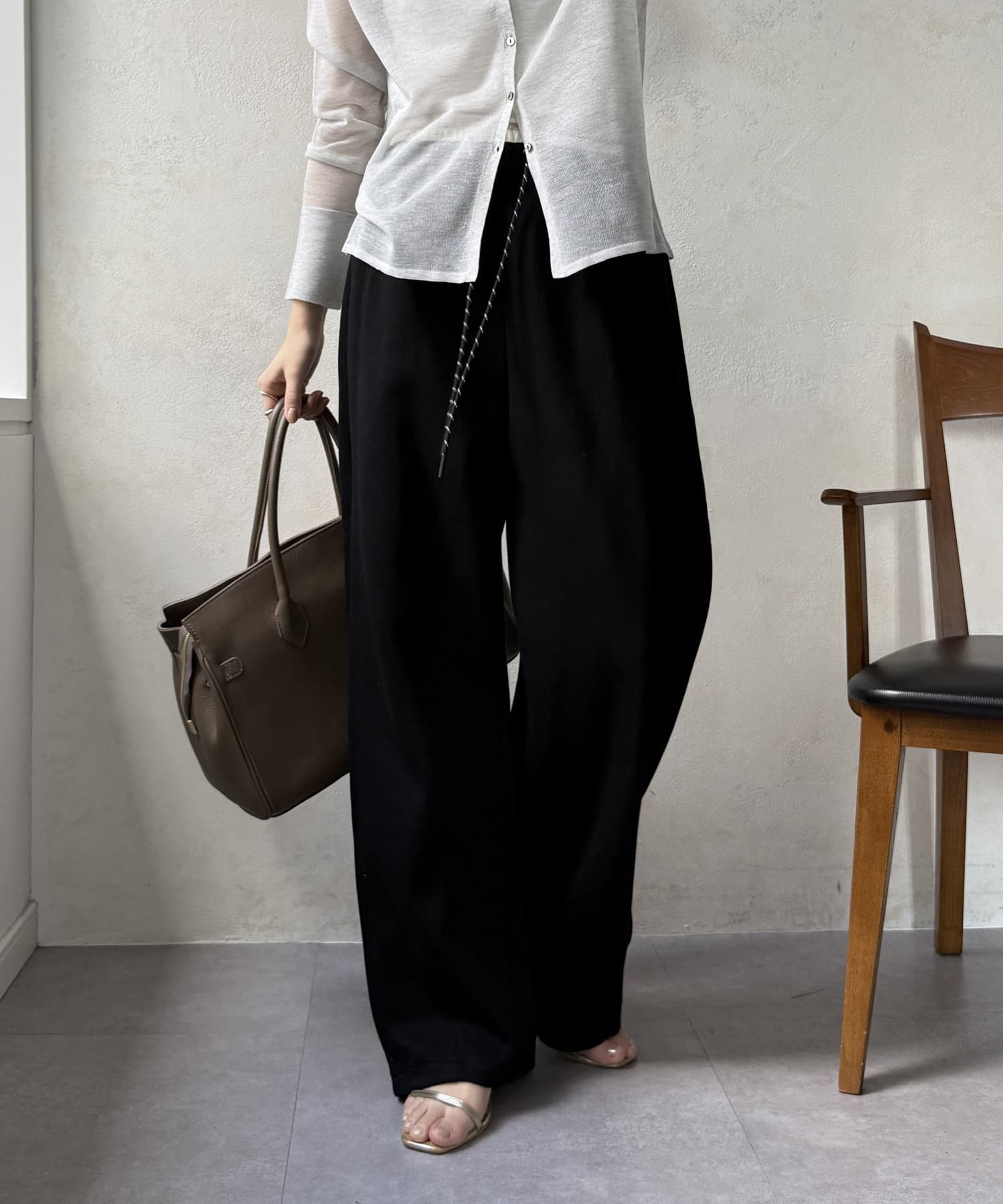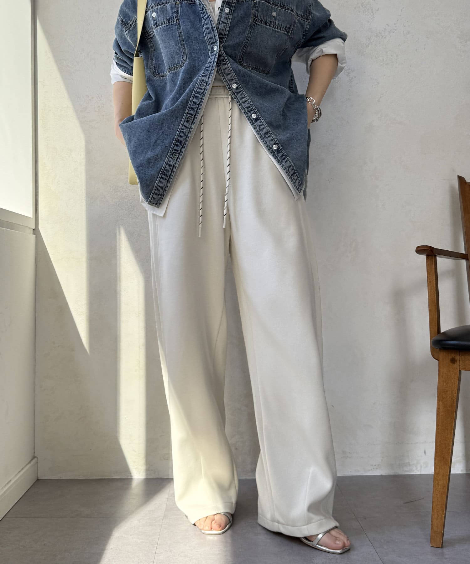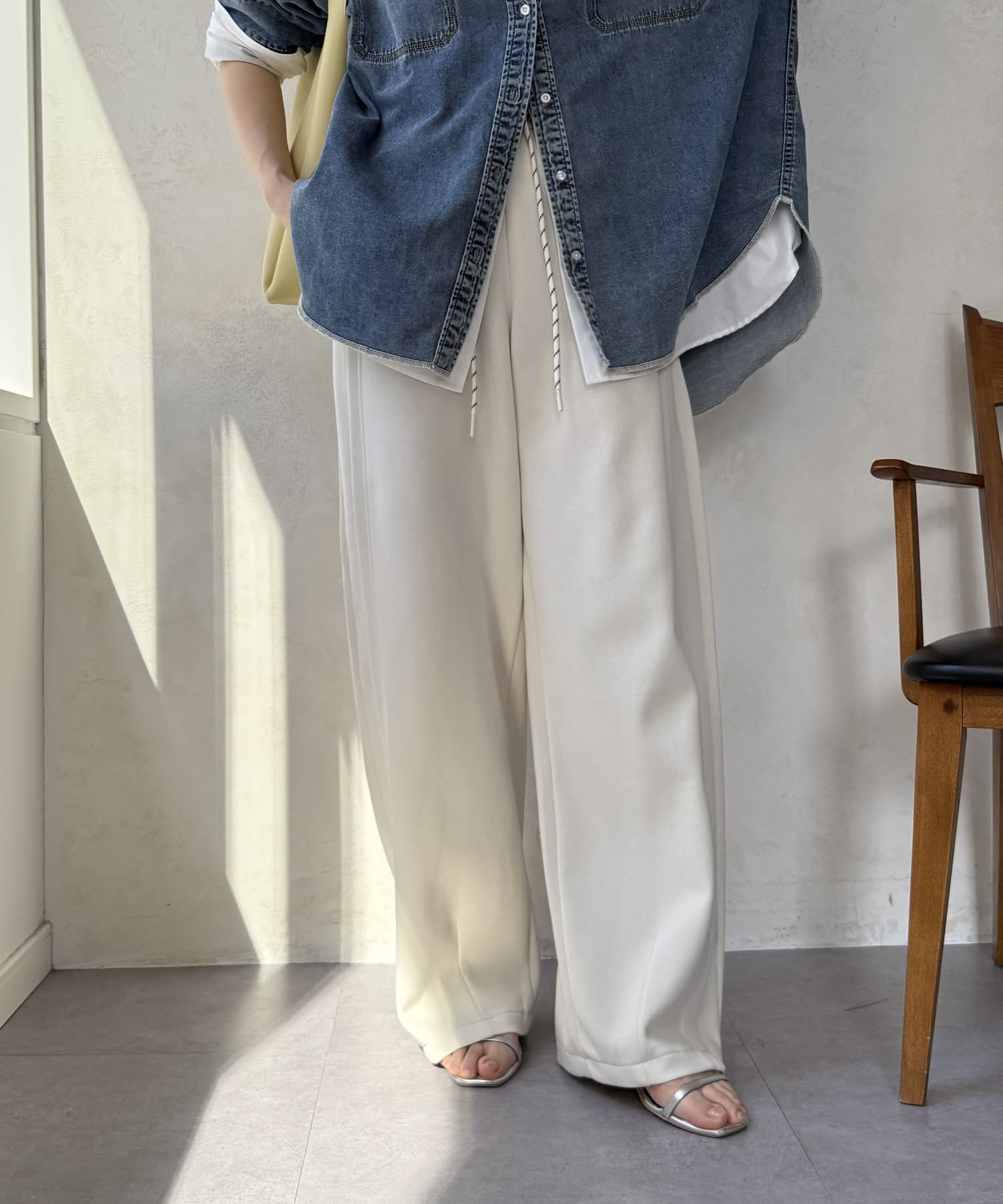 イージーでカジュアルに見えがちなワイドパンツもお洒落に着こなせます◎
