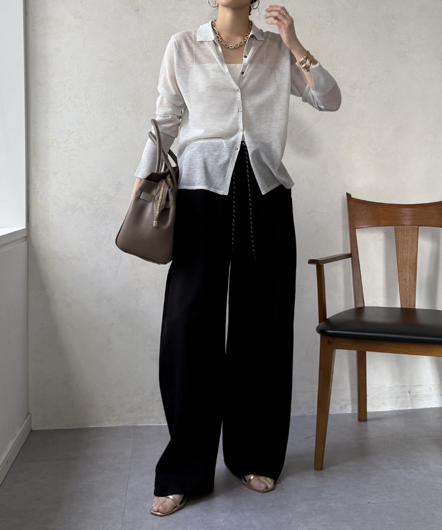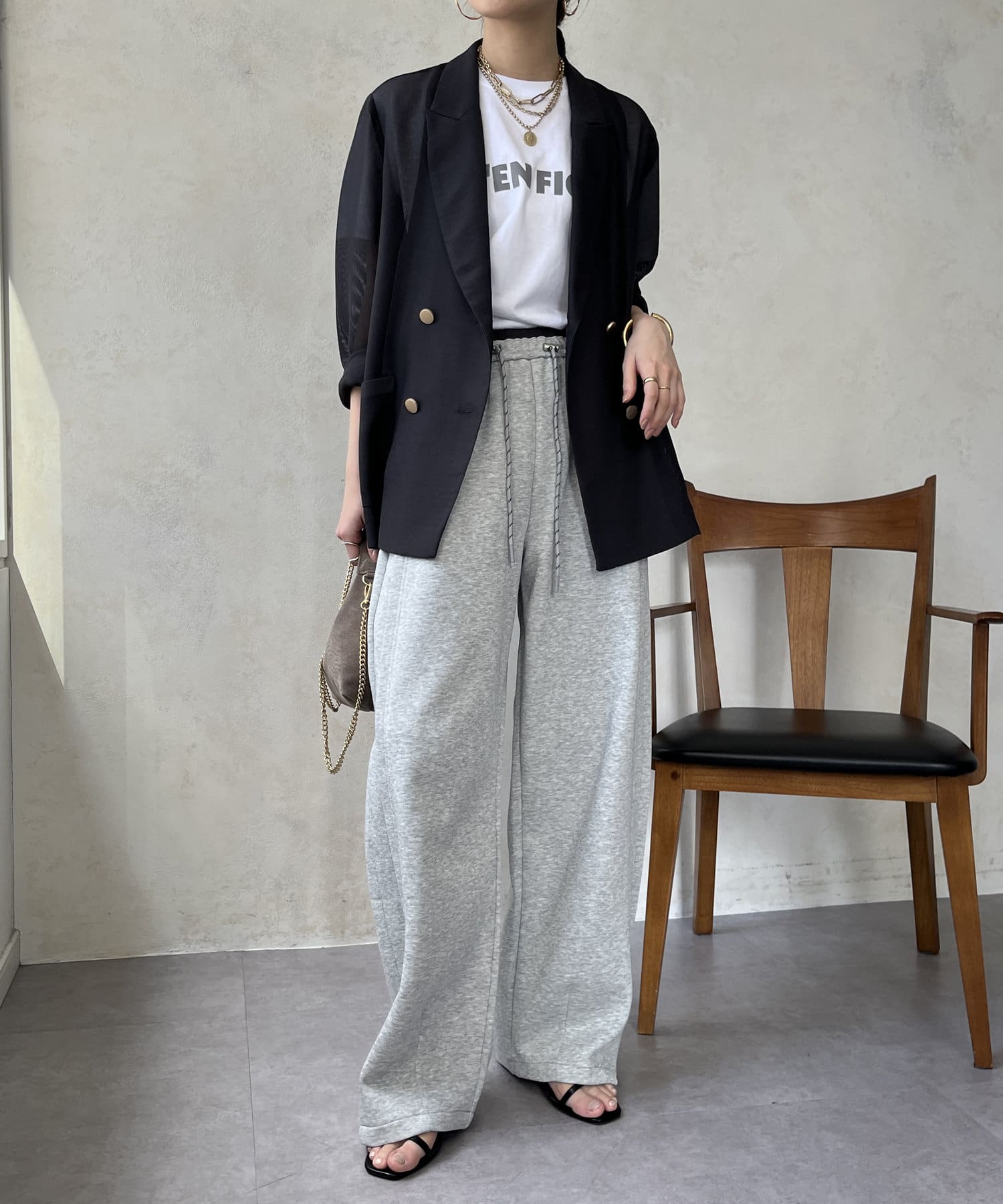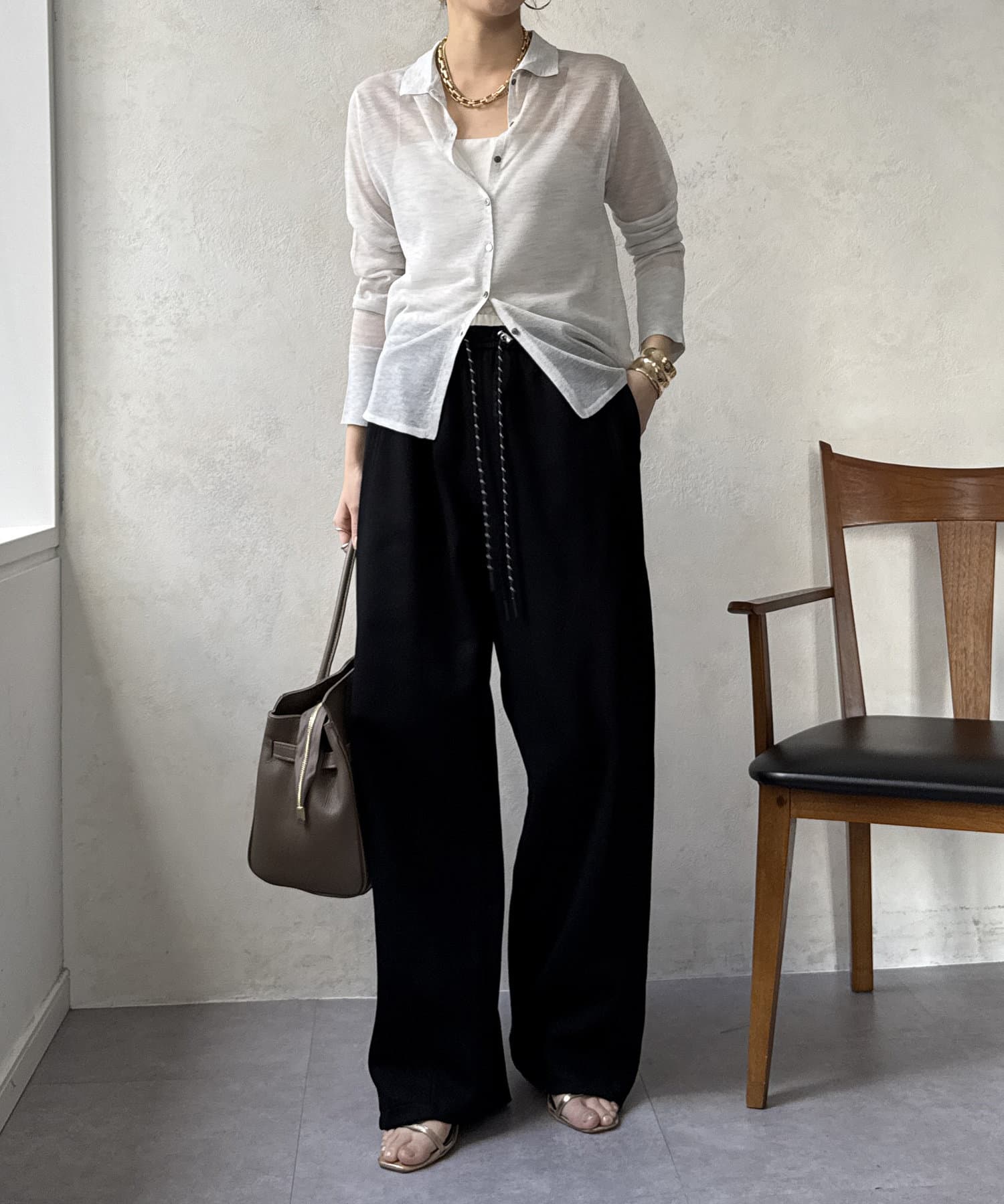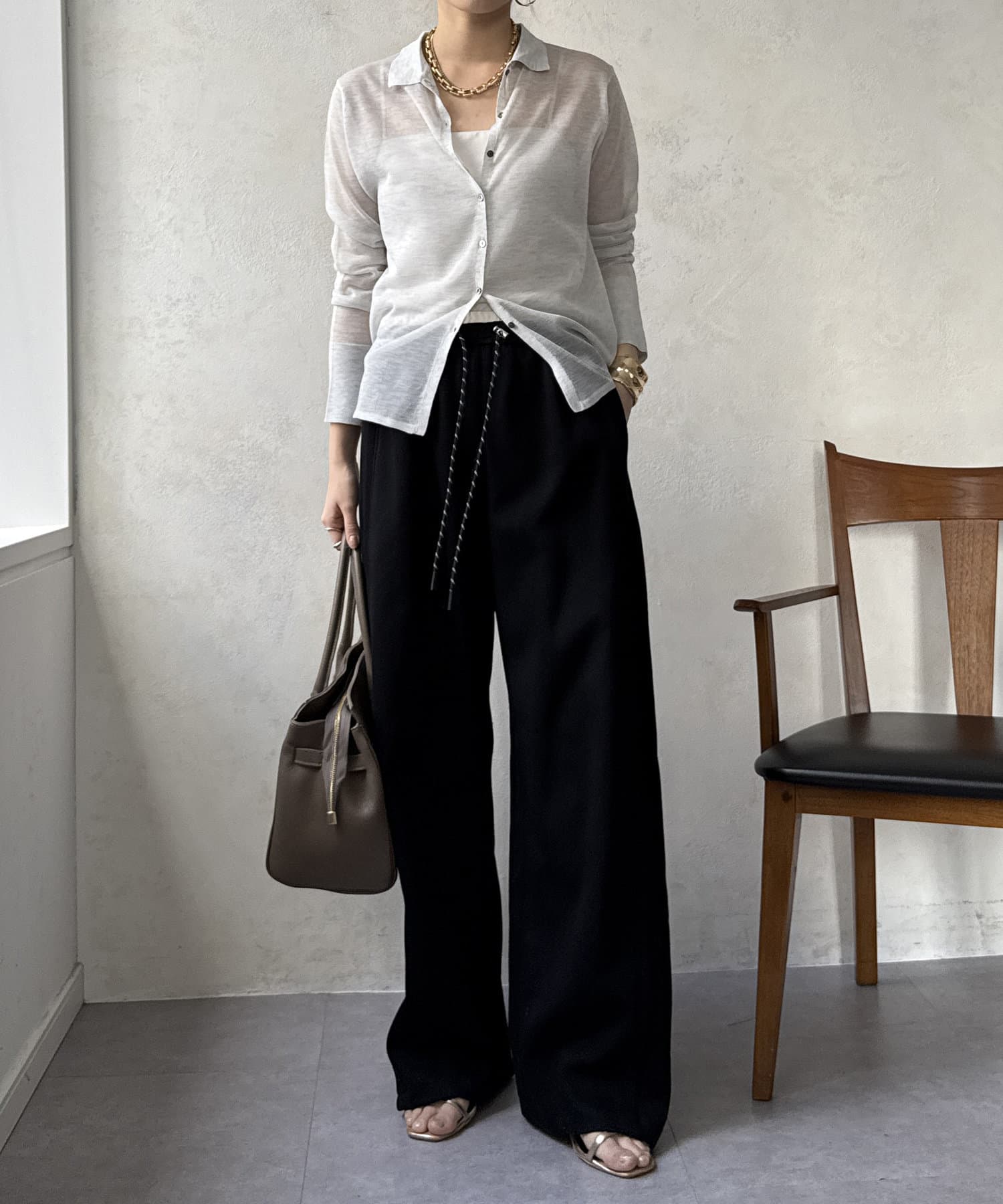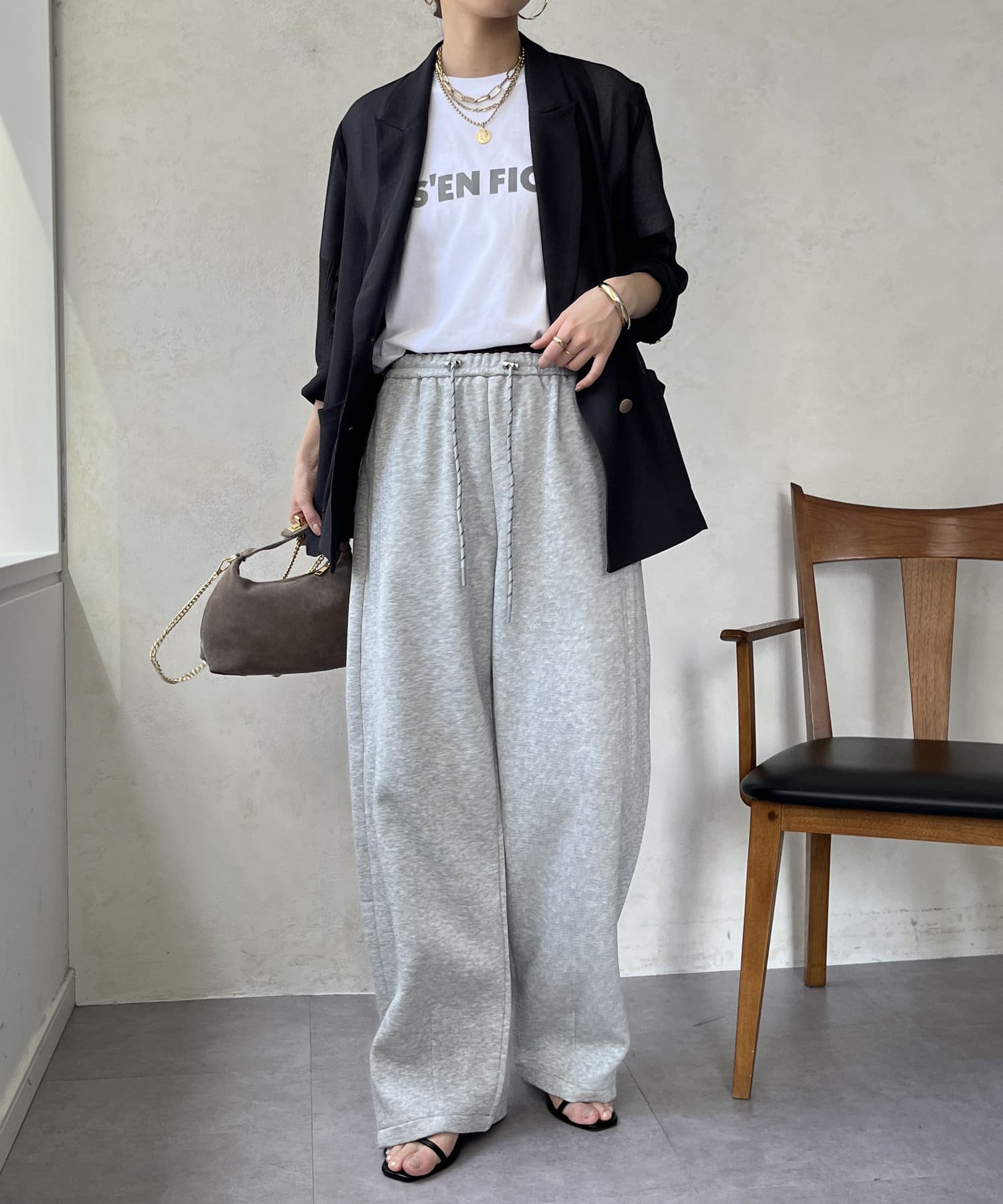 イージーでカジュアルに見えがちなワイドパンツもお洒落に着こなせます◎