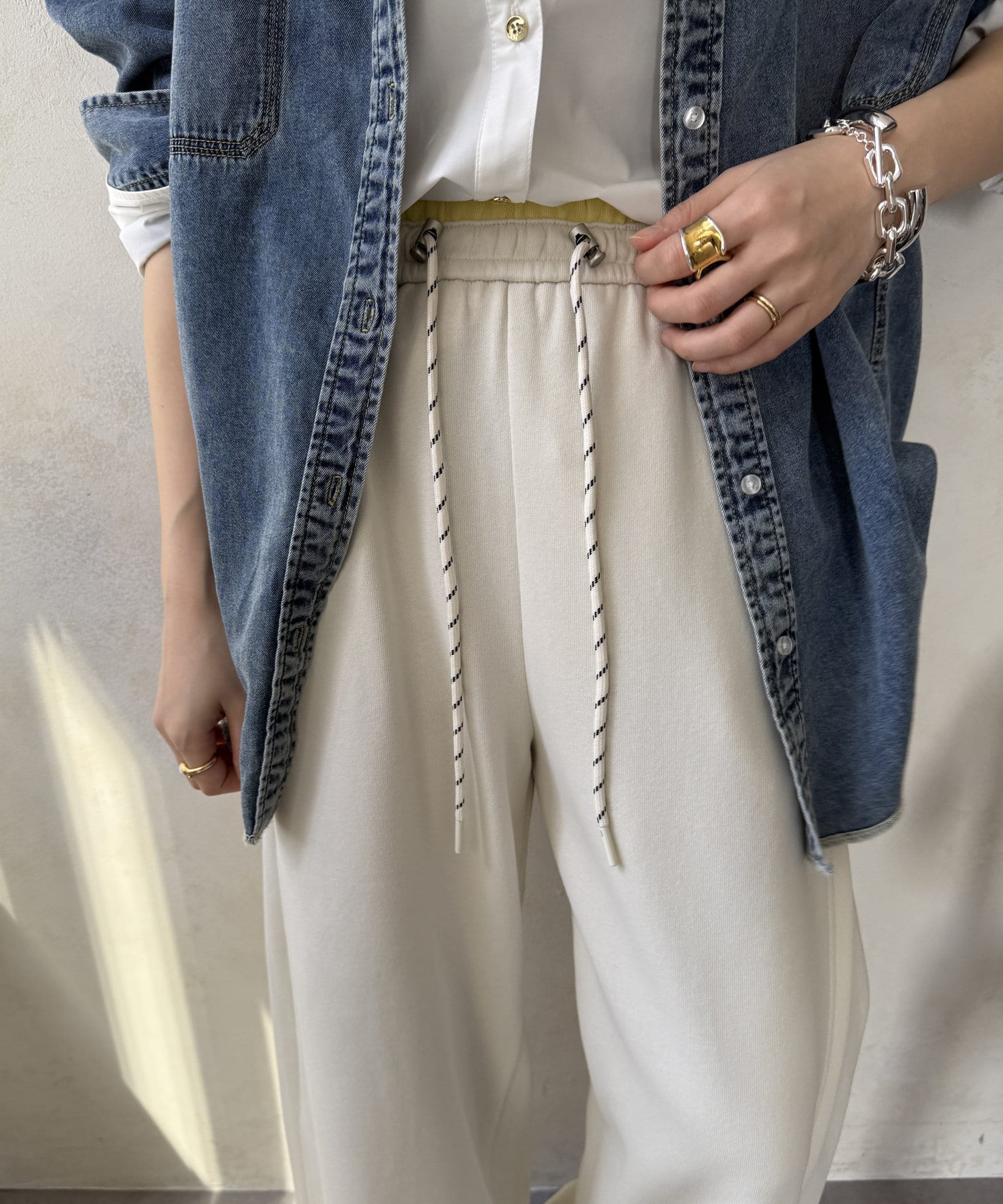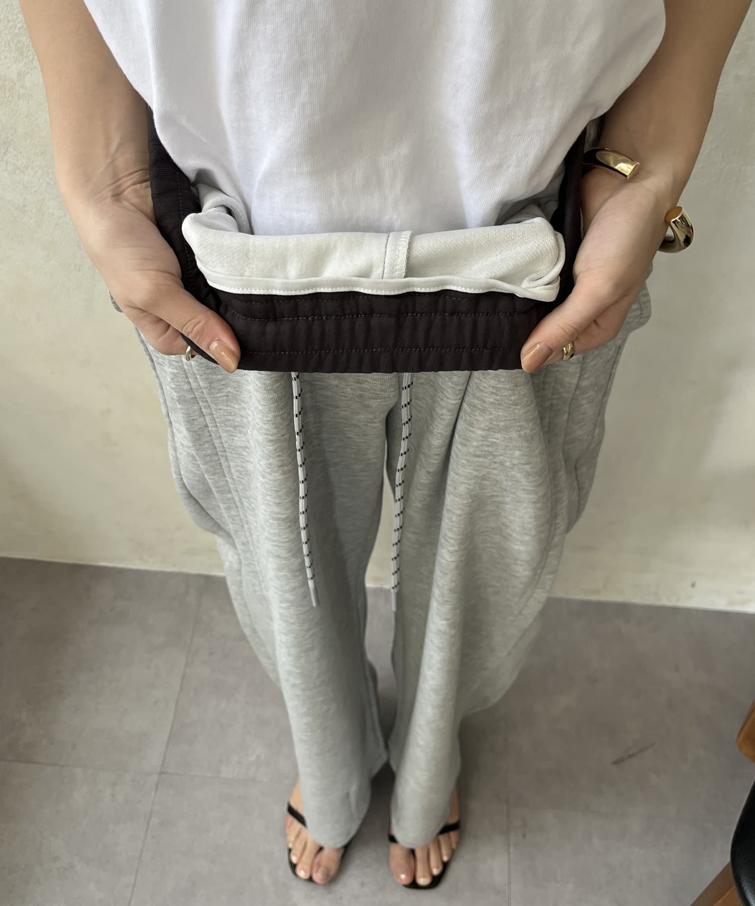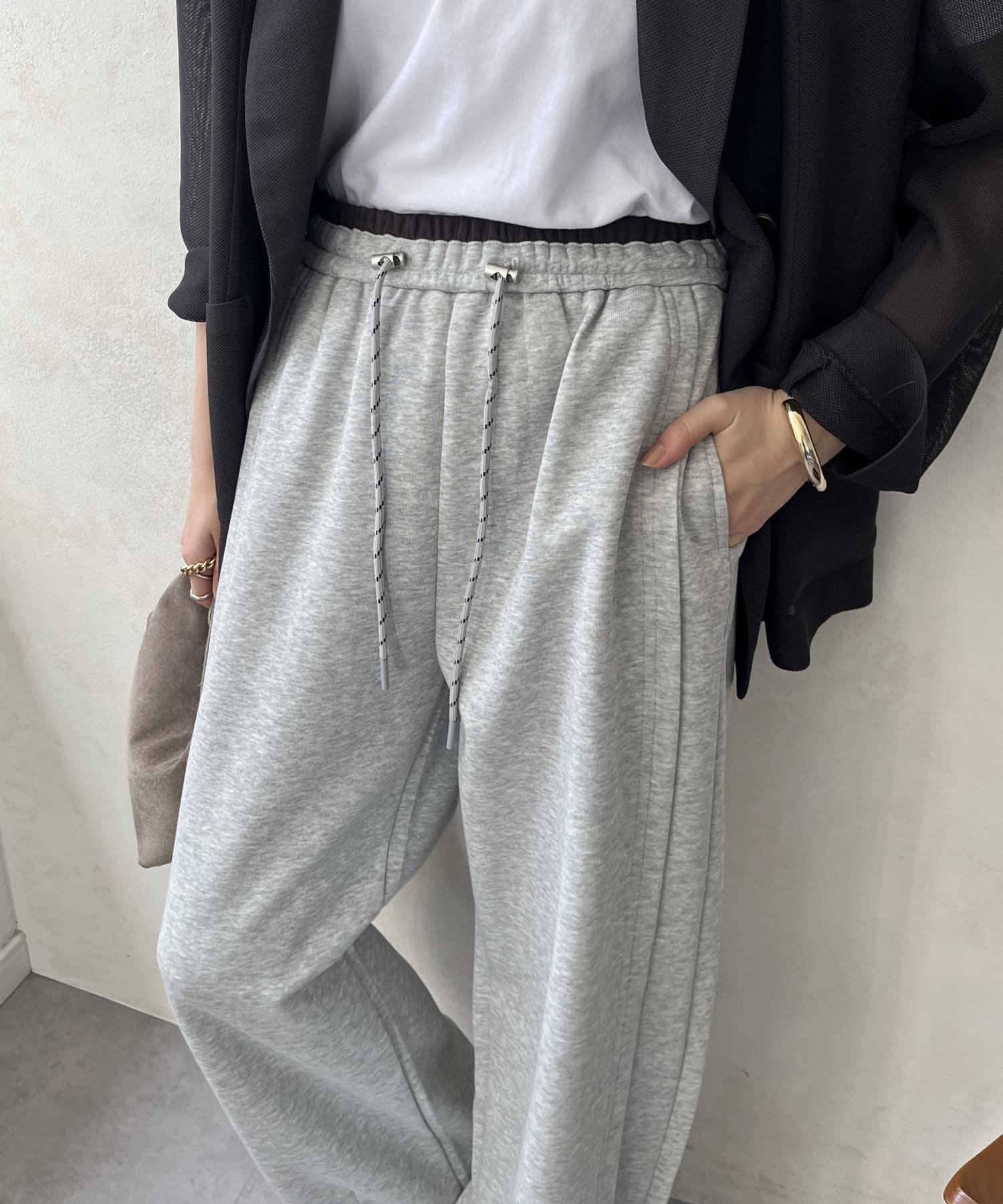 ウエスト部分にドロストが施されているので、サイズが調整できる優れもの!