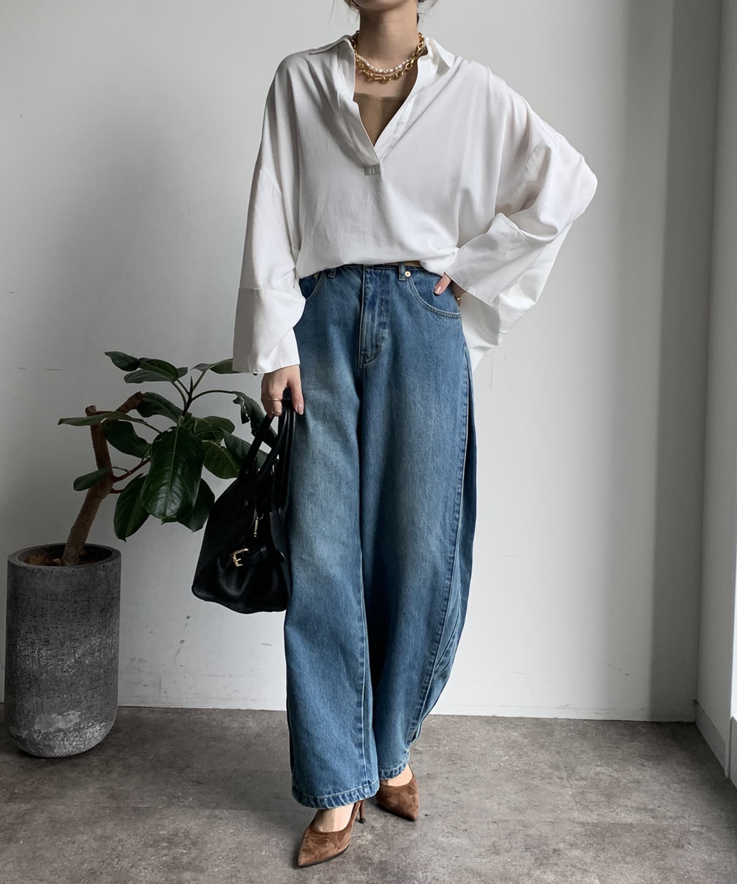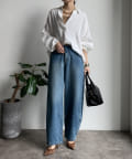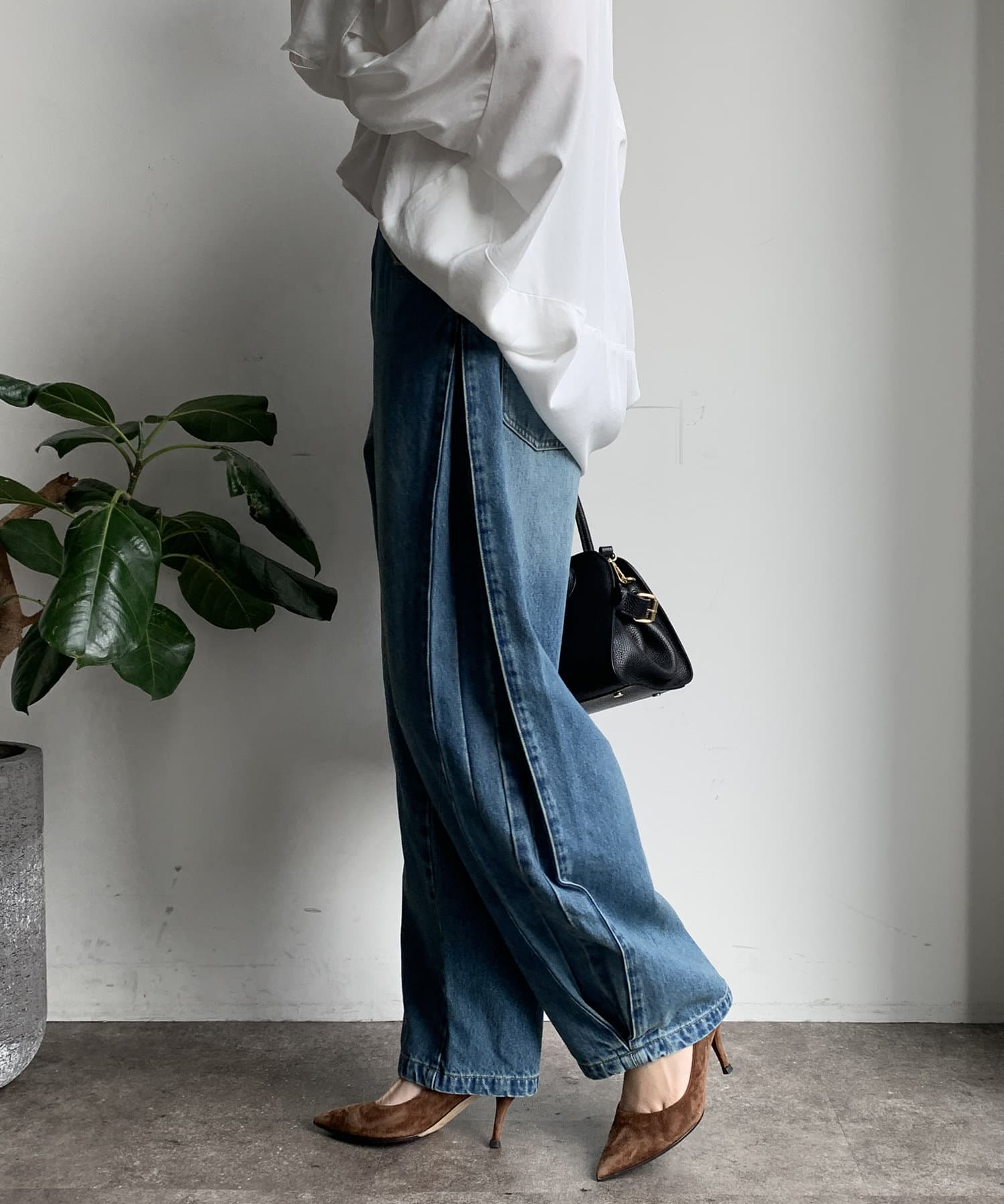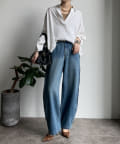 ヒールなどを合わせると足元に華奢さがプラスされて女性らしく仕上がるのでおすすめ。