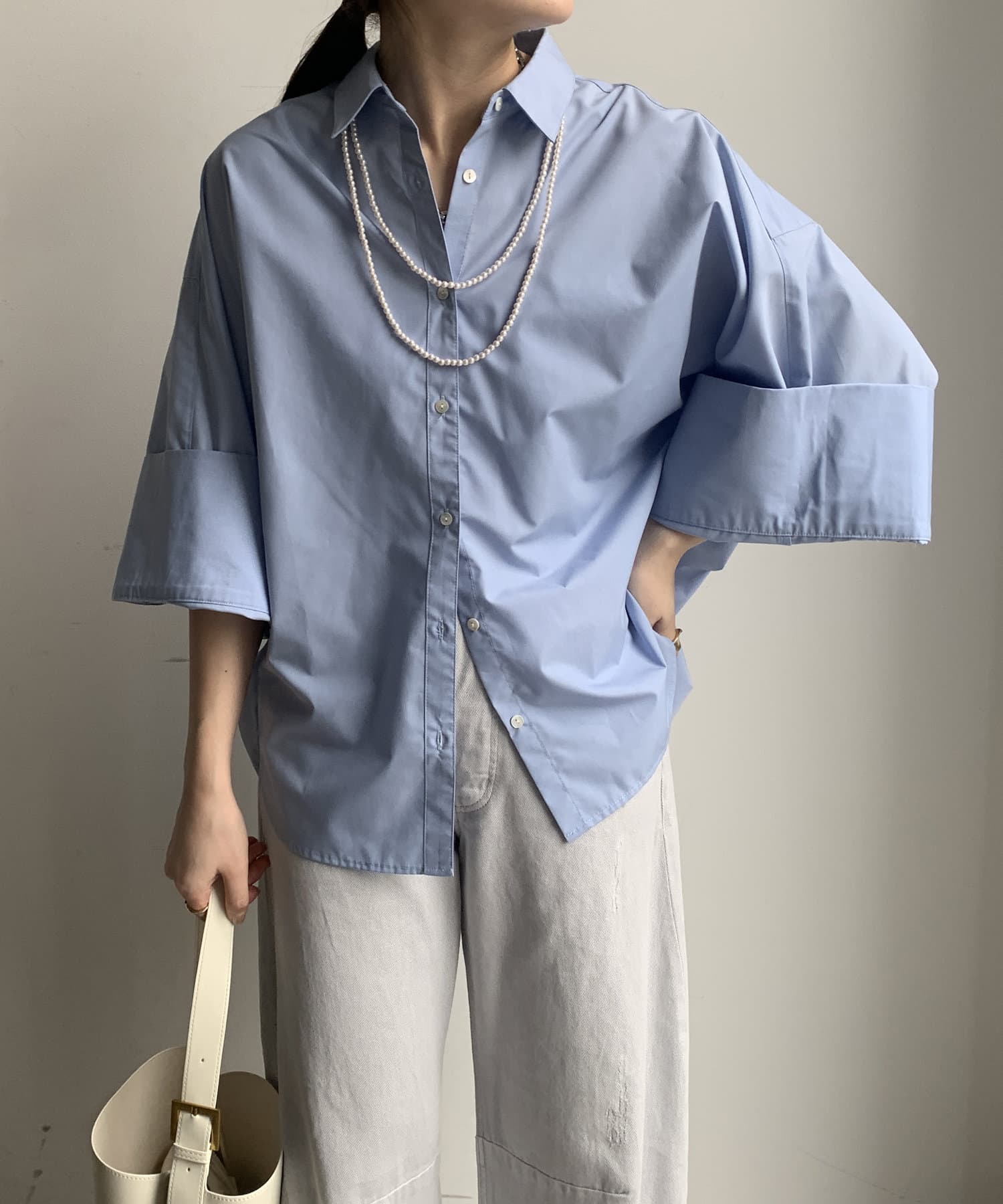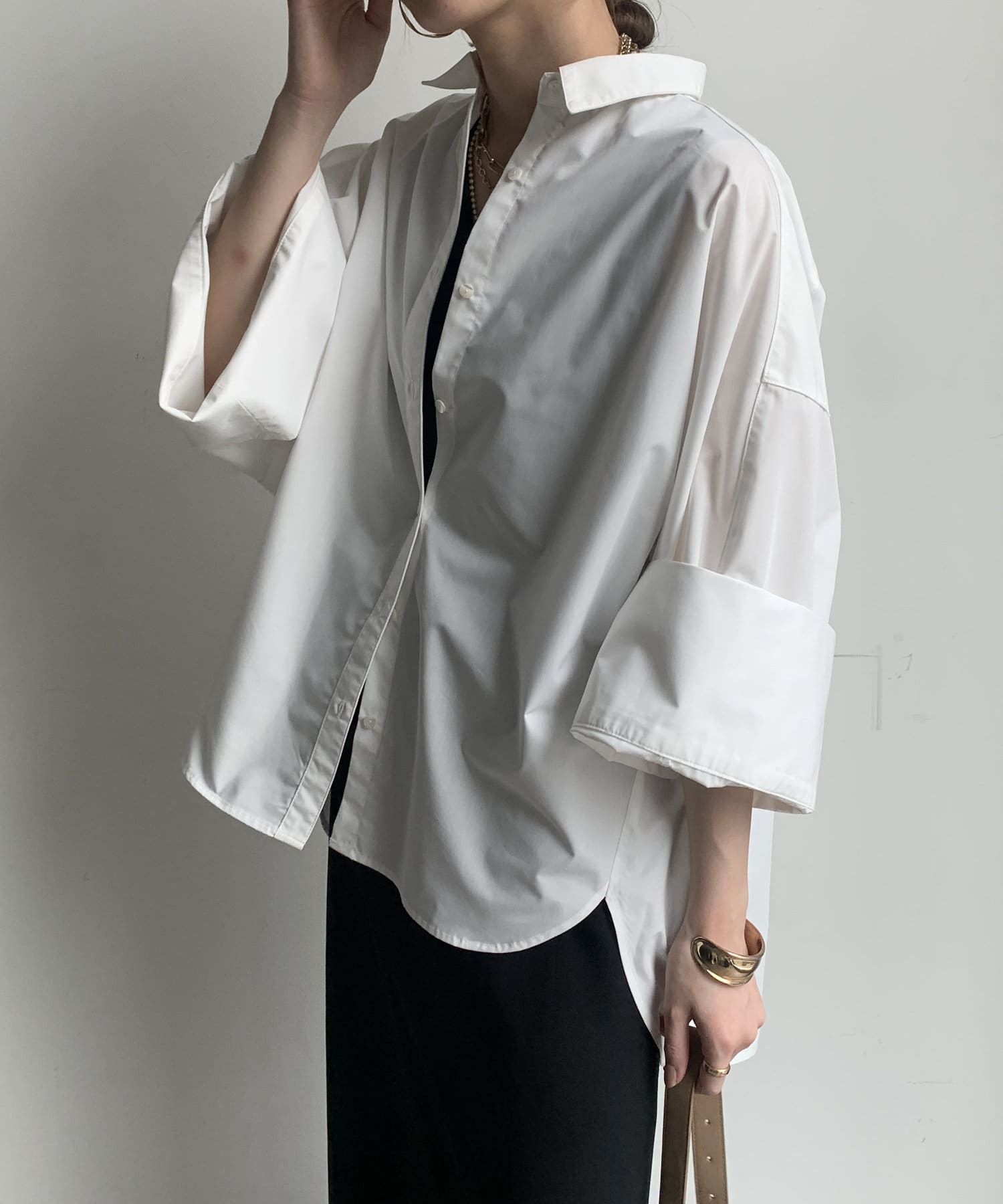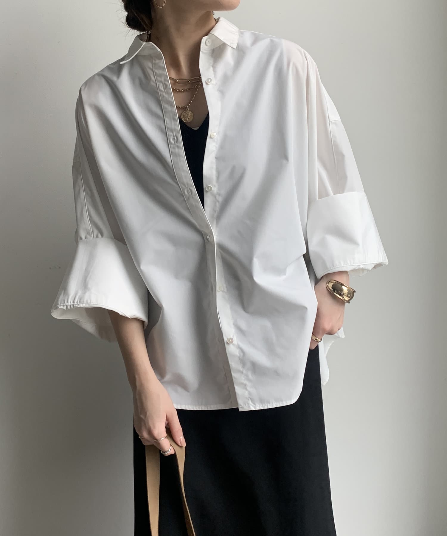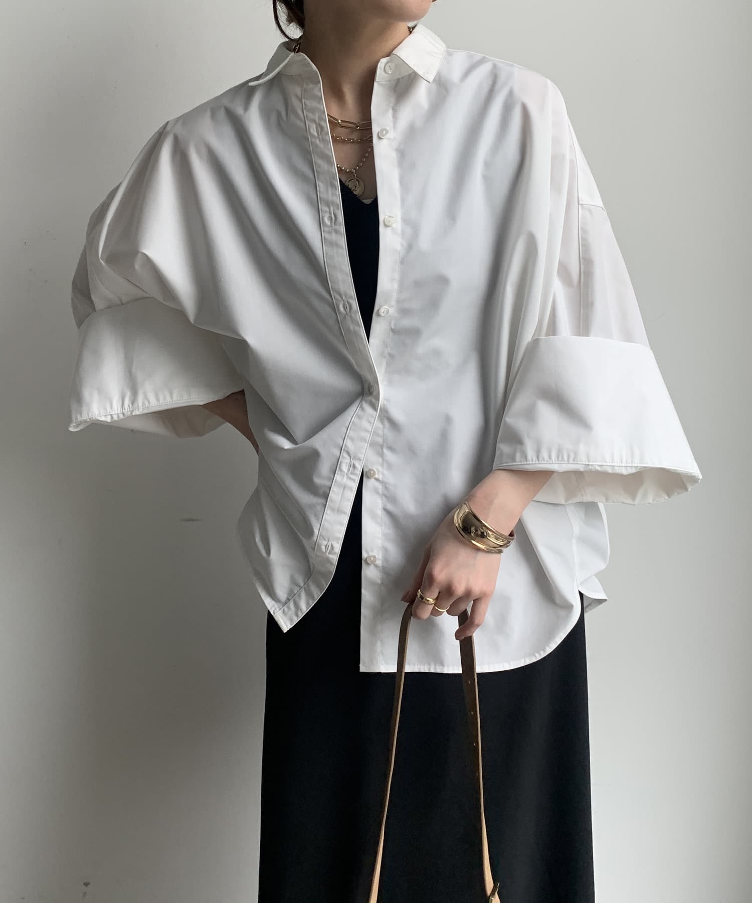 大きくとった袖口とカフスがポイントになり1枚で気映えするデザインシャツ!