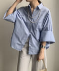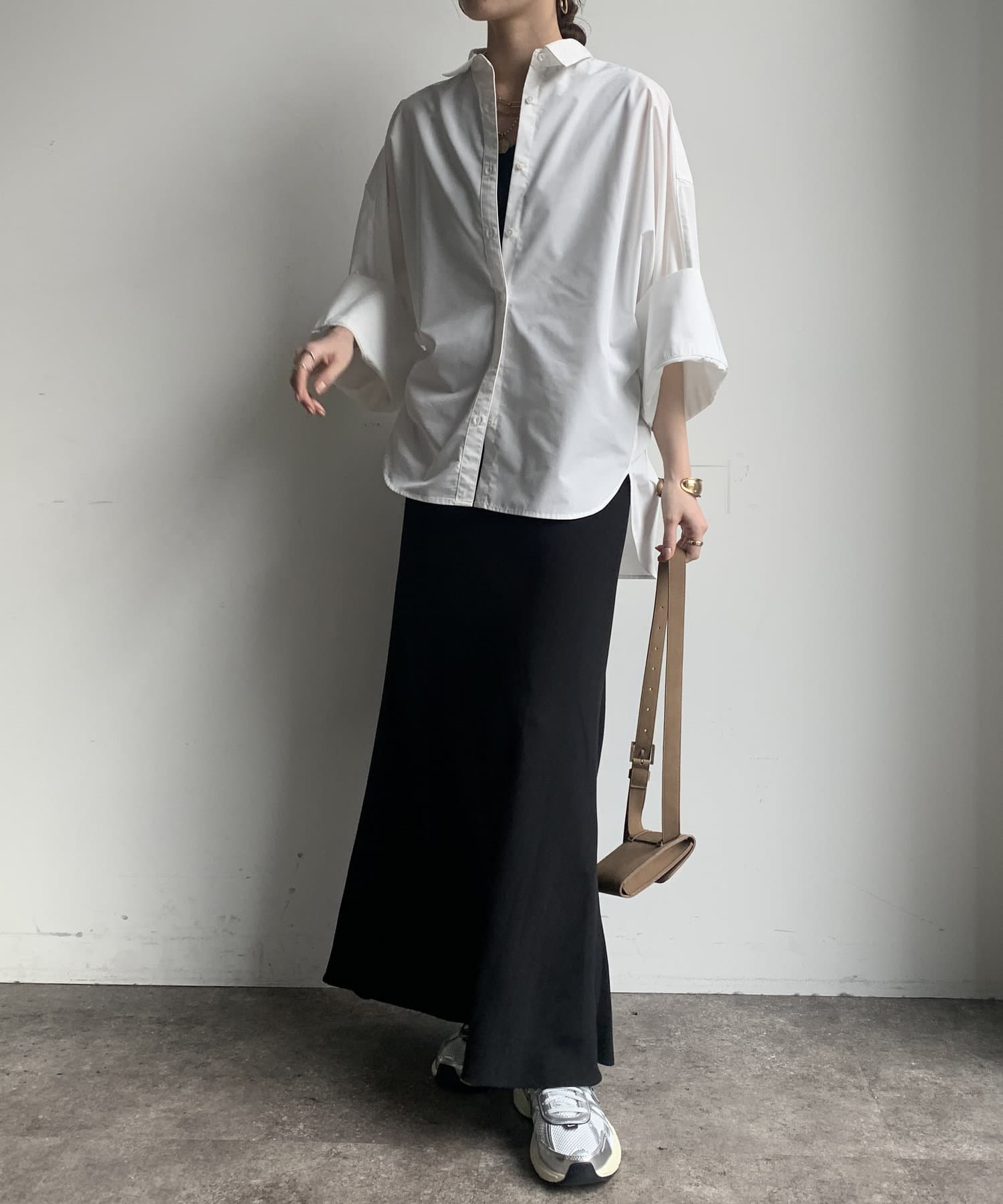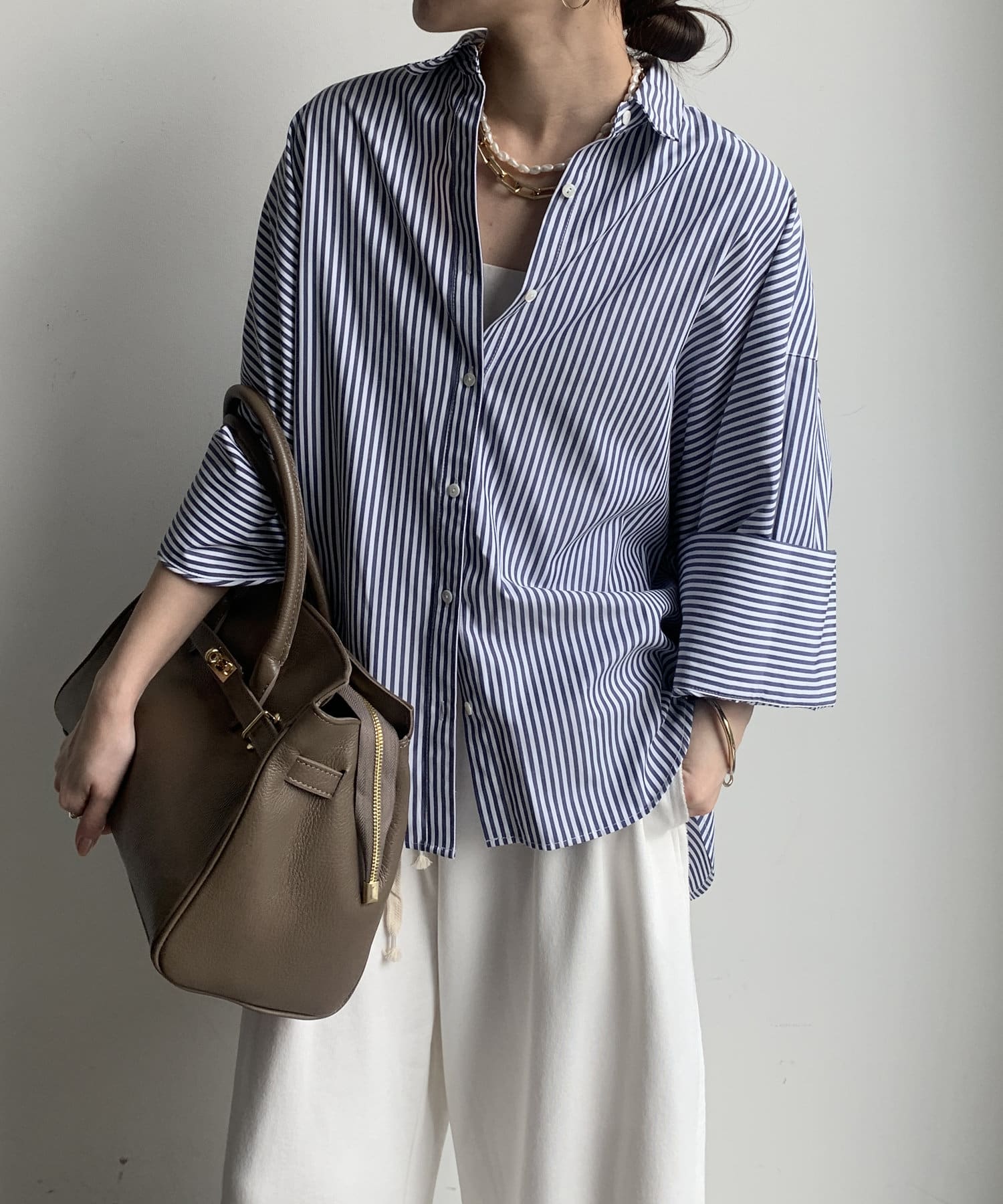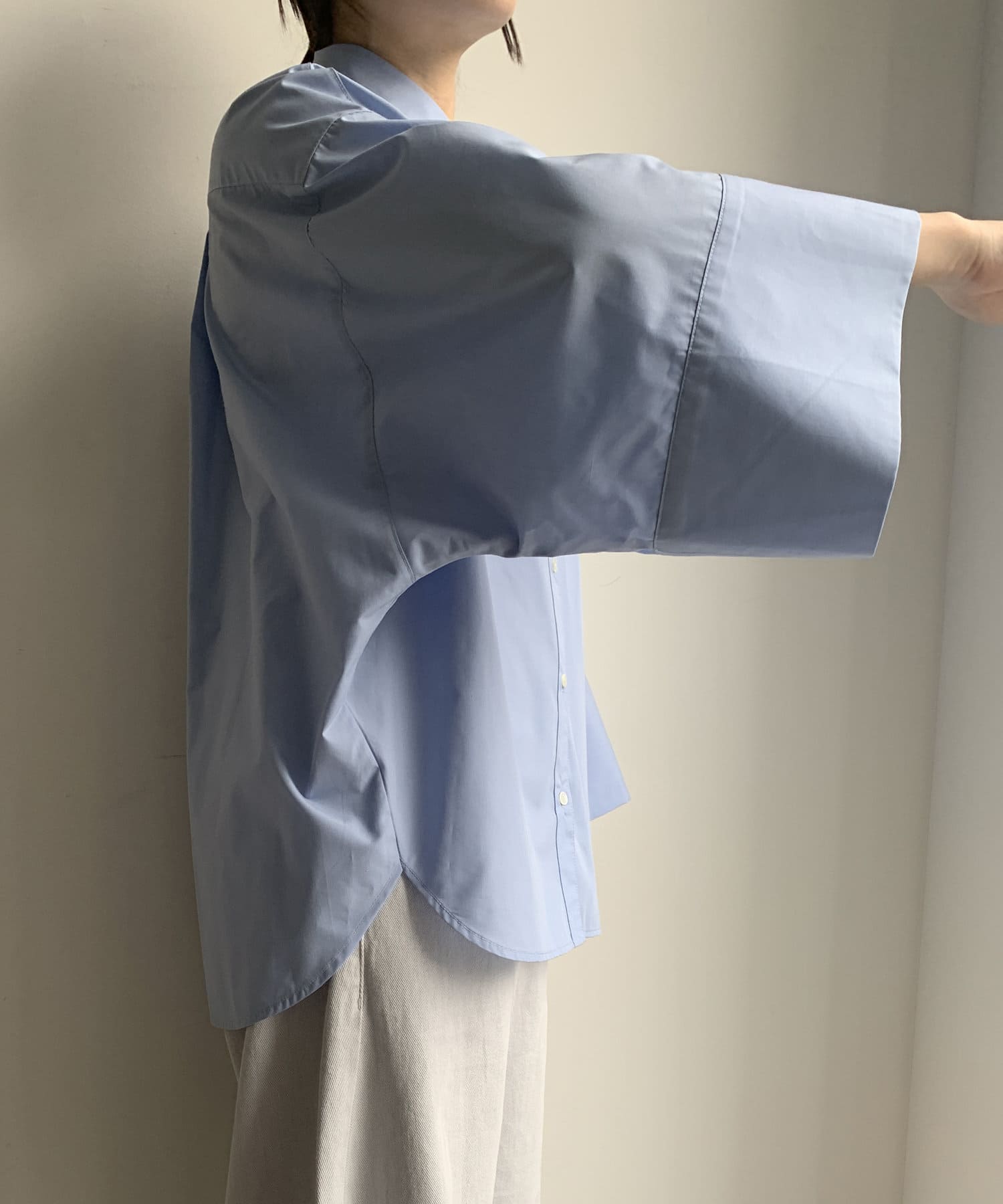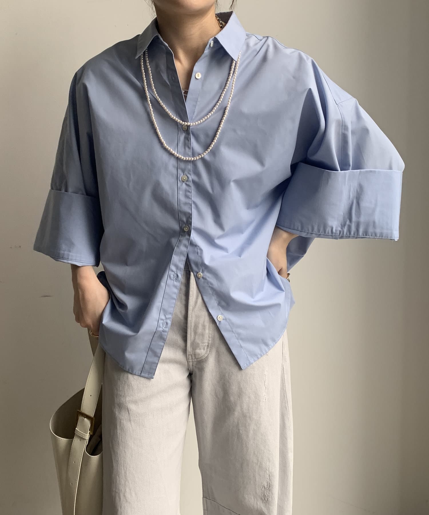 大きくとった袖口とカフスがポイントになり1枚で気映えするデザインシャツ!