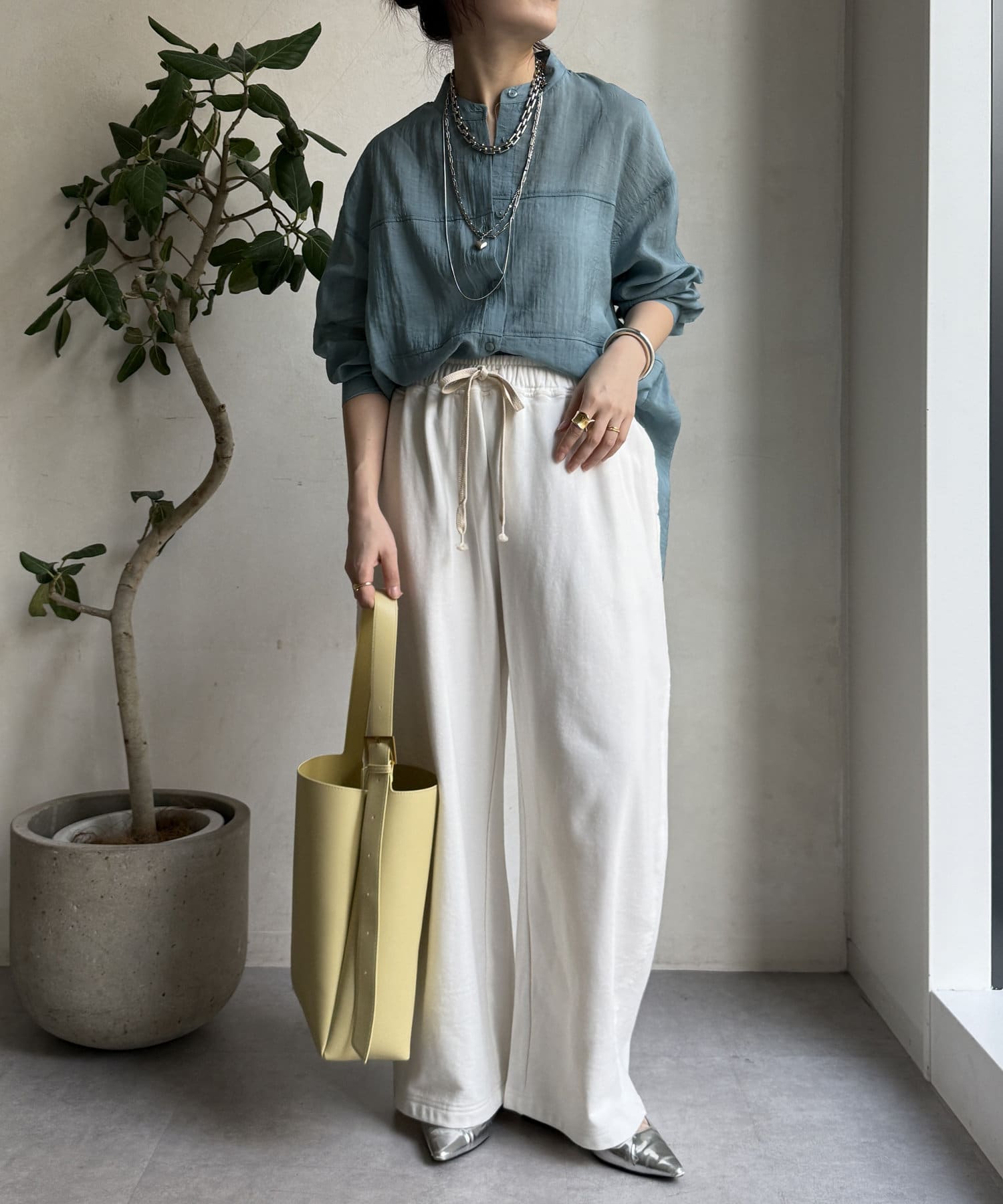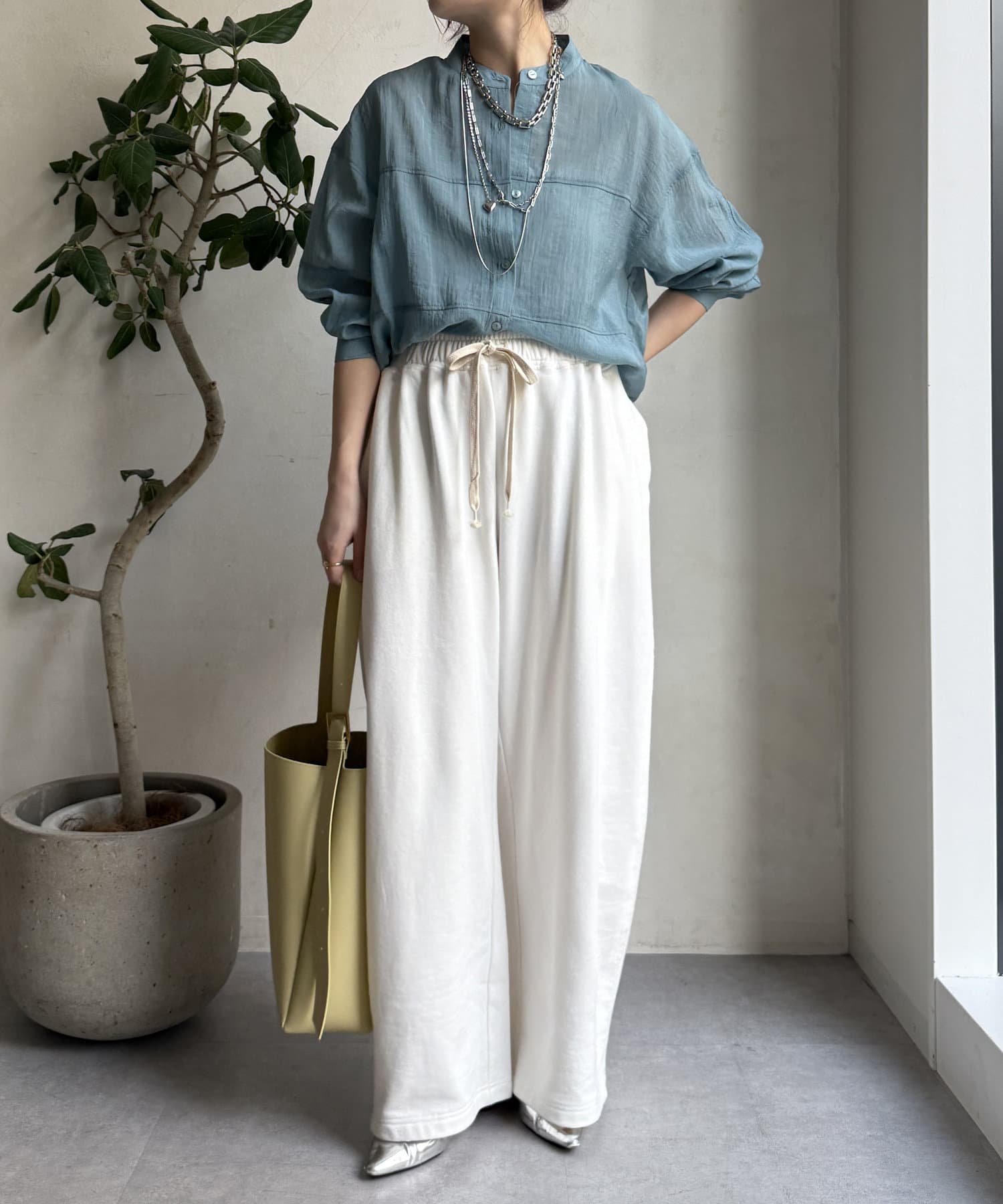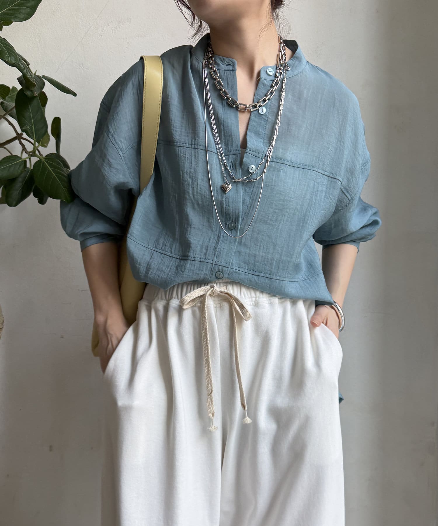 前を開けて羽織りとして着たり、腰に巻いてアクセントとして使うのもおすすめです。