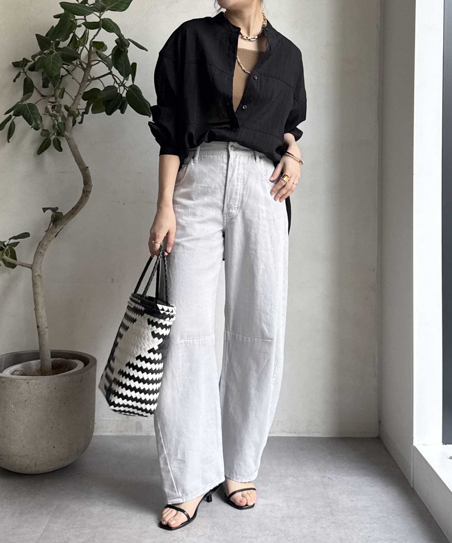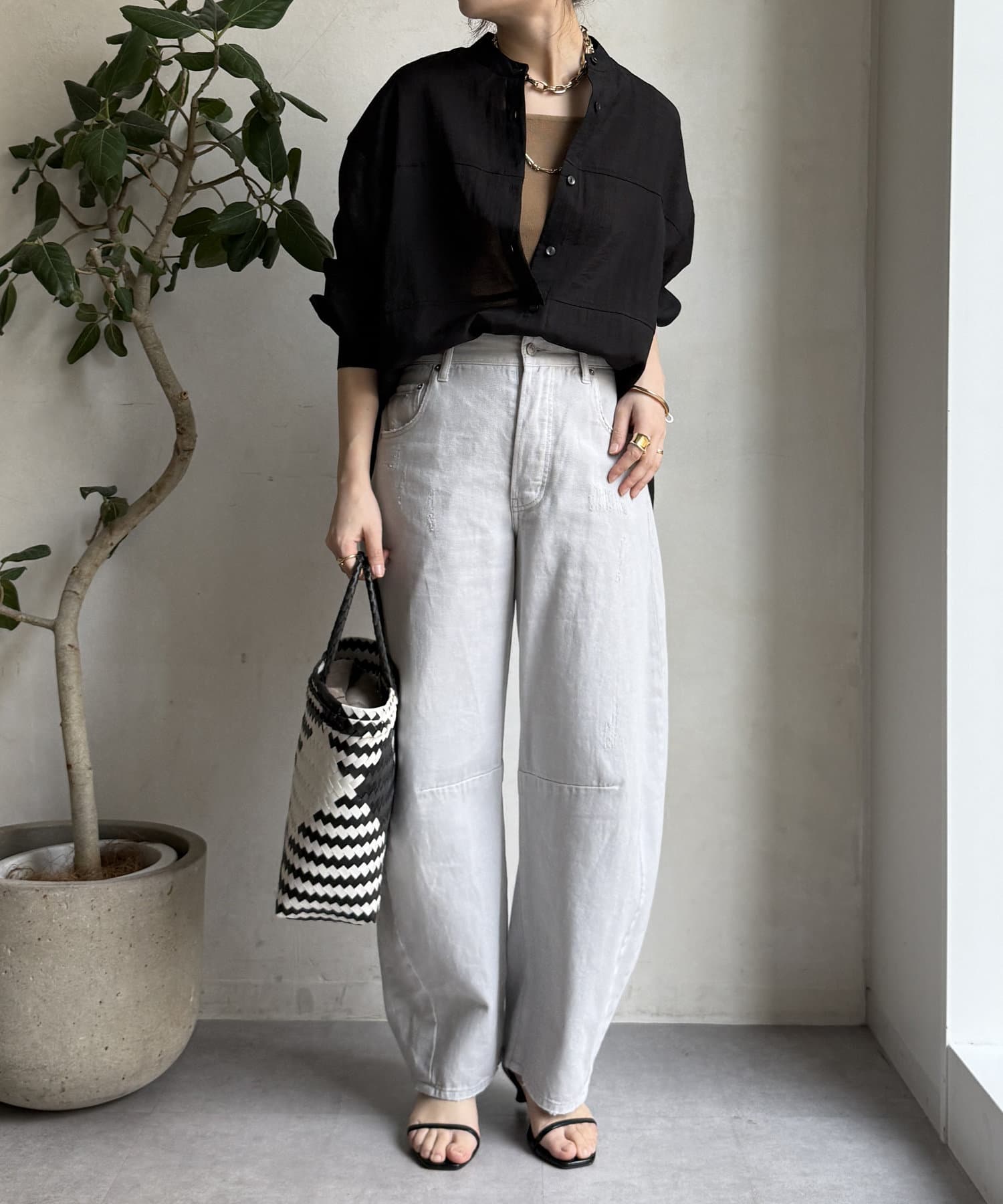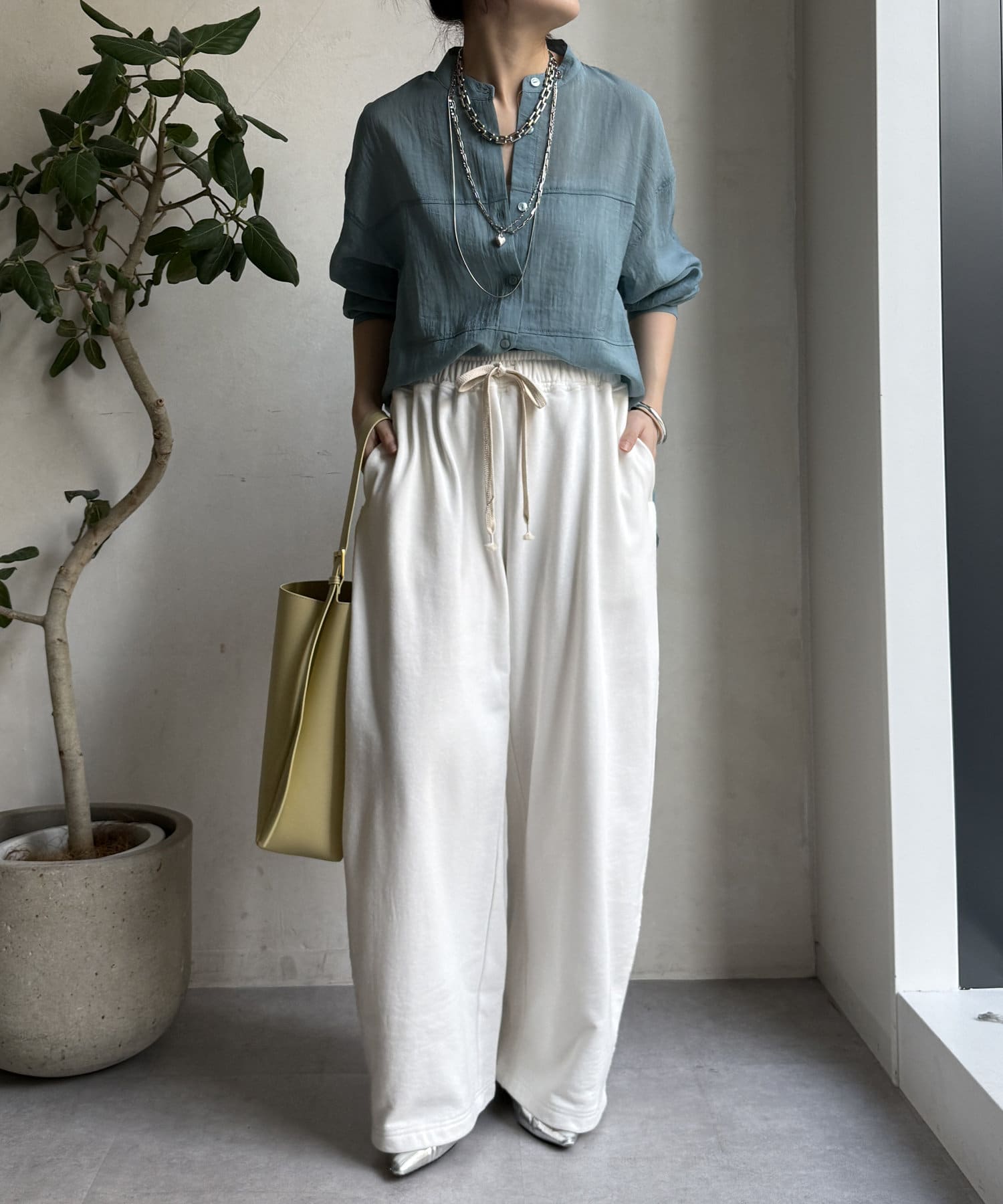 前を開けて羽織りとして着たり、腰に巻いてアクセントとして使うのもおすすめです。