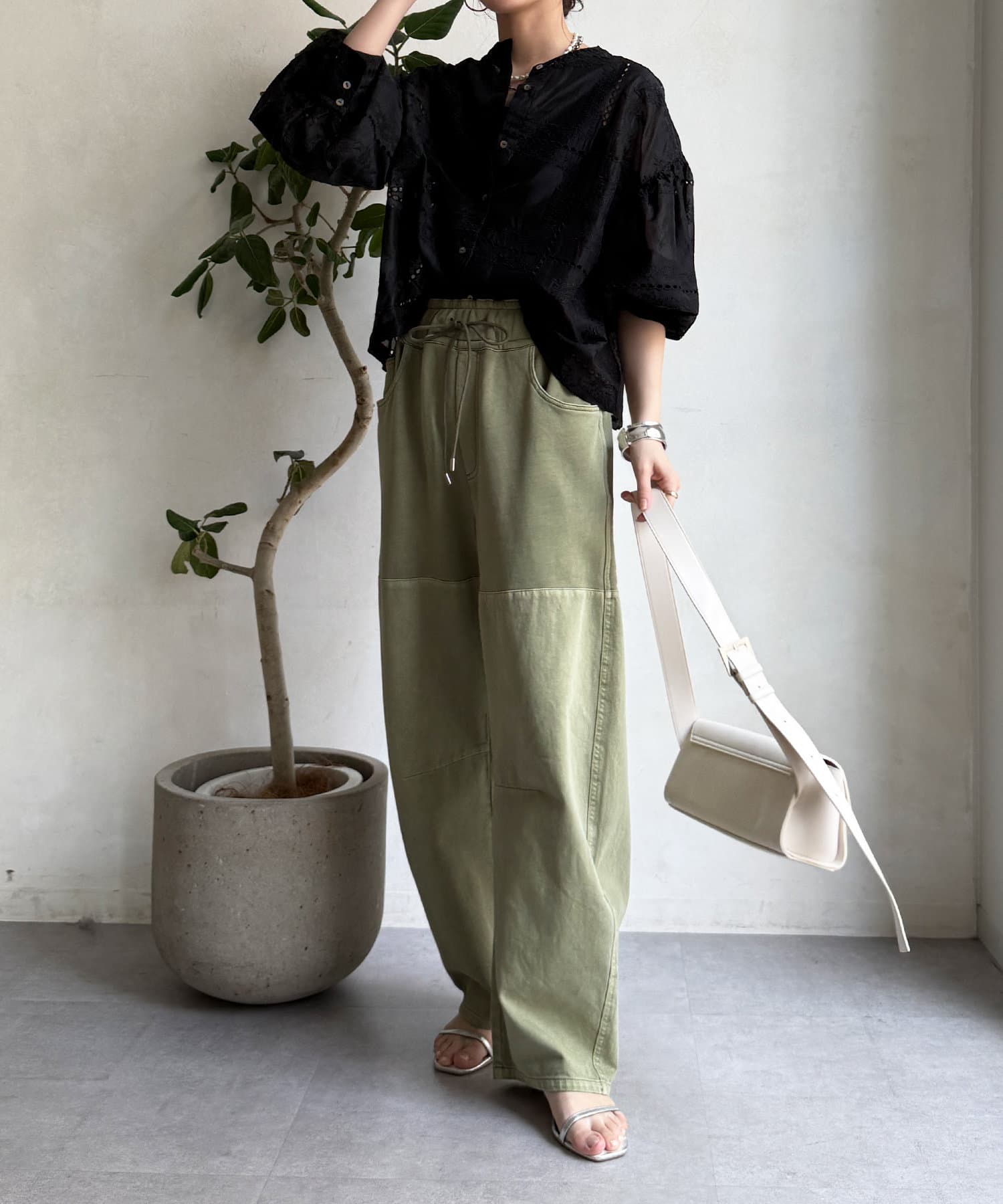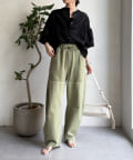 すっきりとした丈感に仕上げているので、フロントのみタックインをしてふわっと着るのがおすすめです。