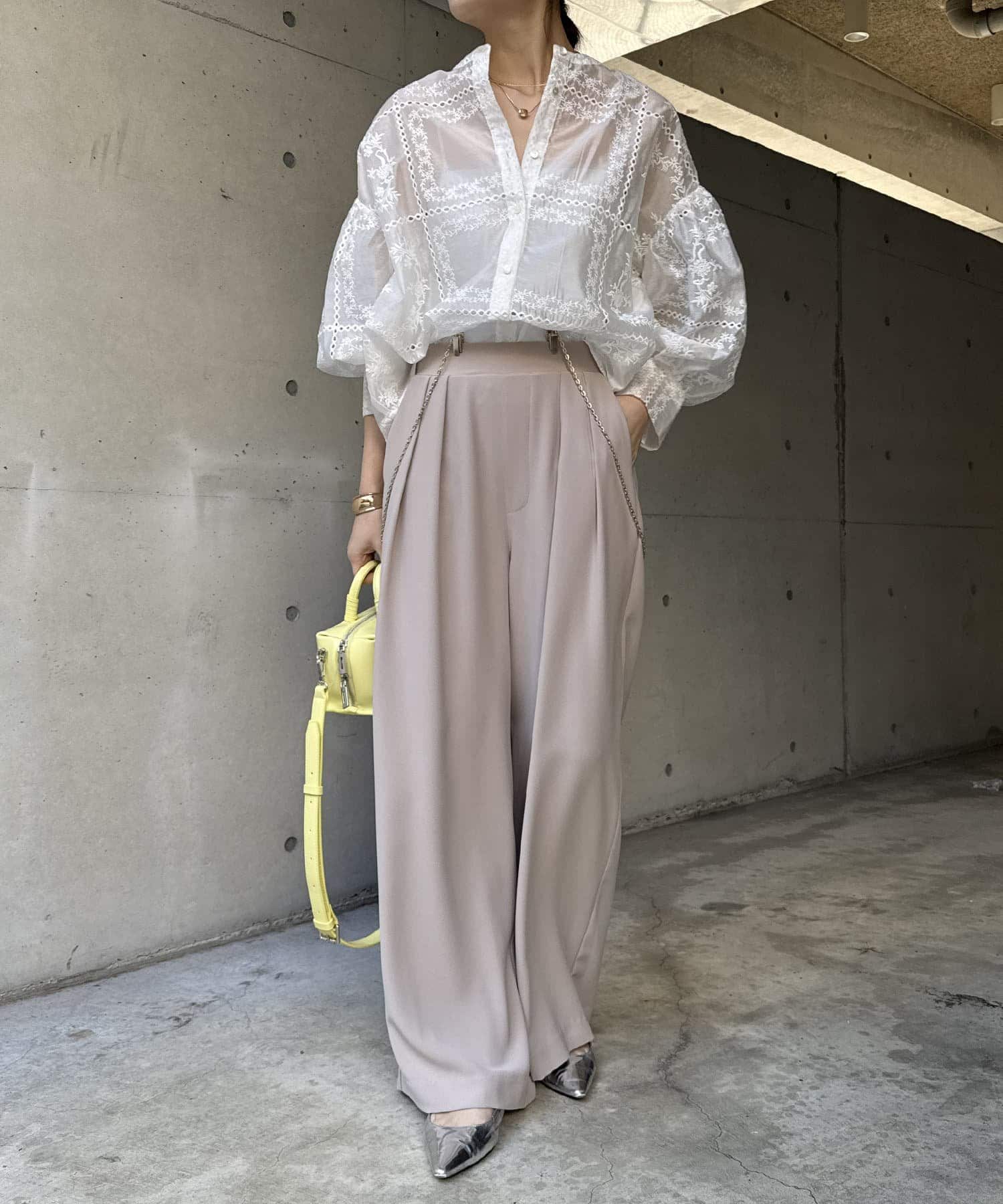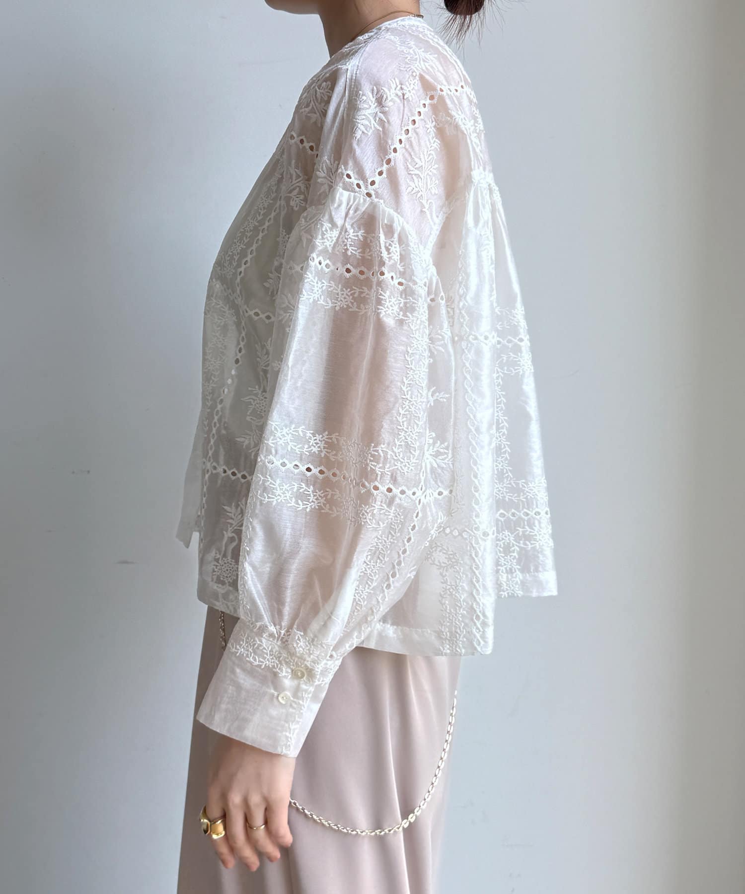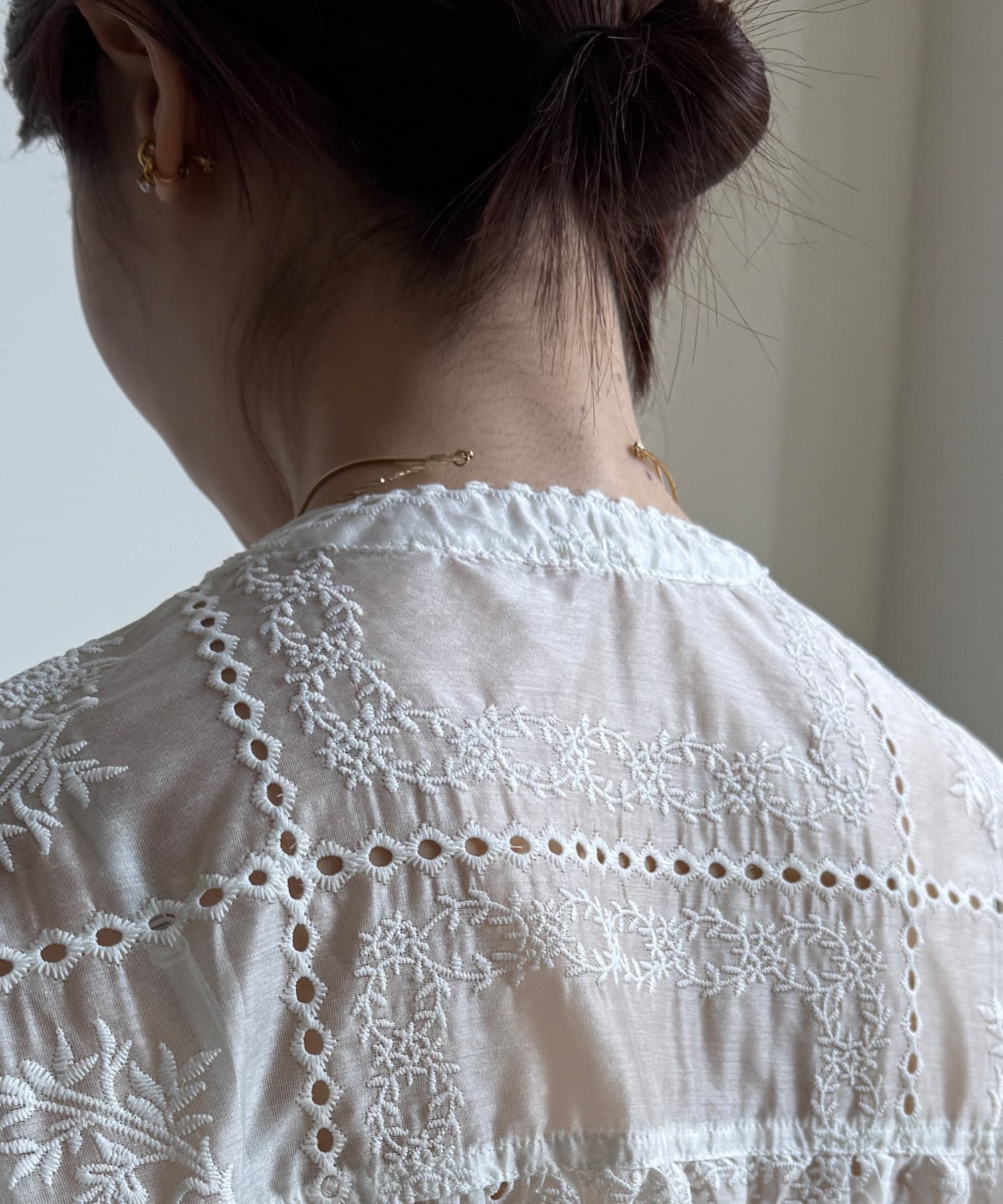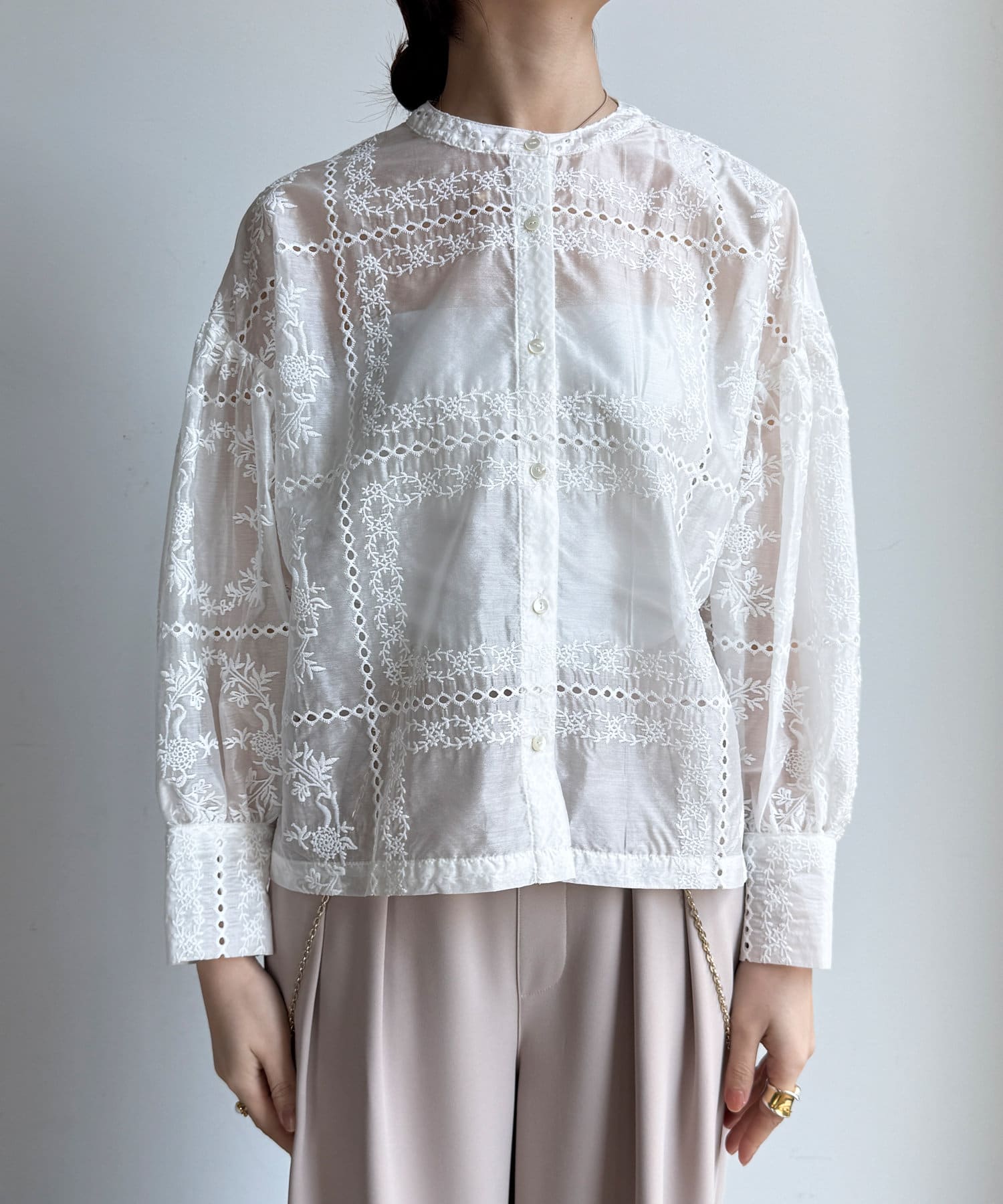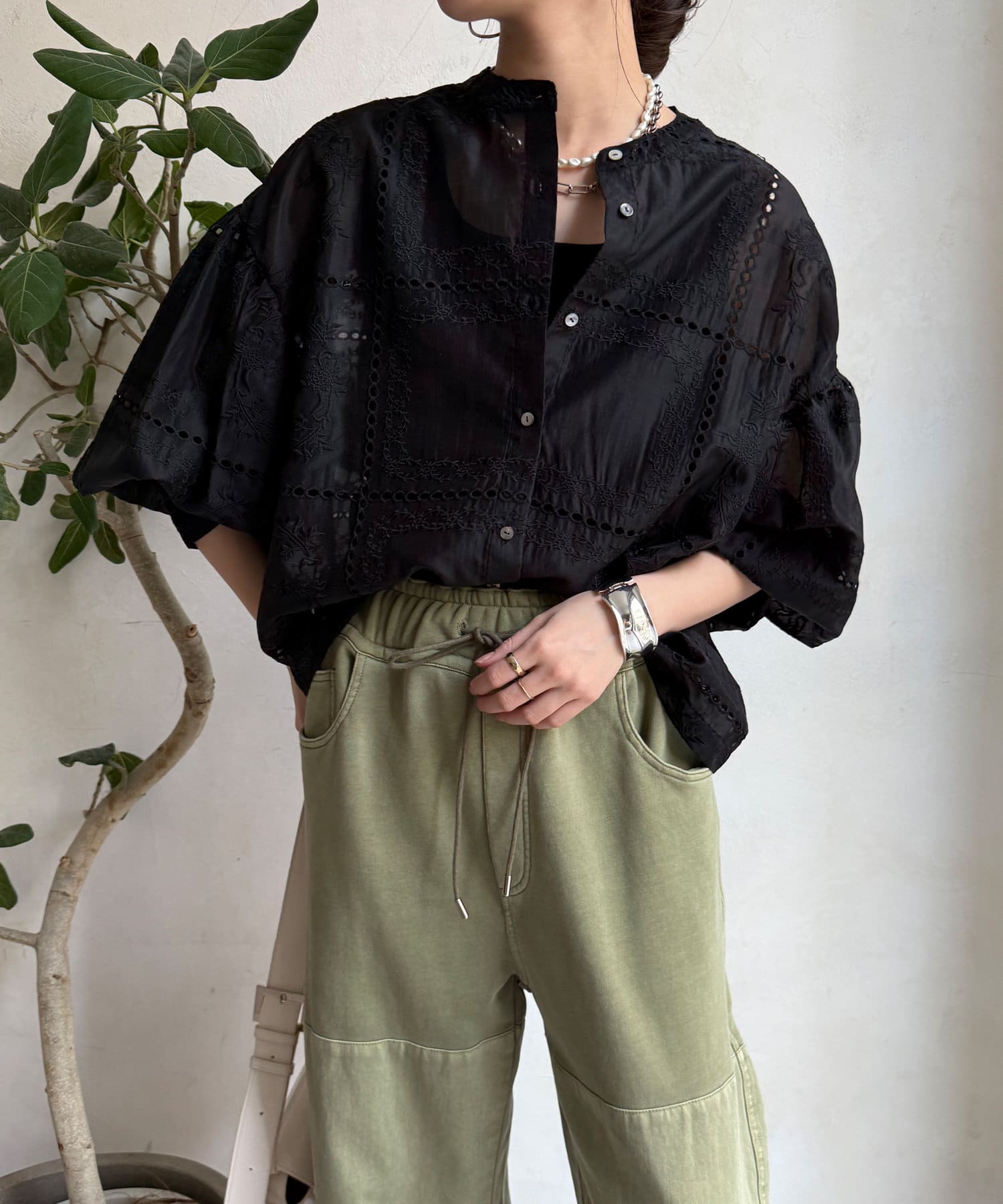 トレンドのシアーに存在感抜群の刺繍デザインが、いつものコーデに投入するだけで一気に華やかさアップ。