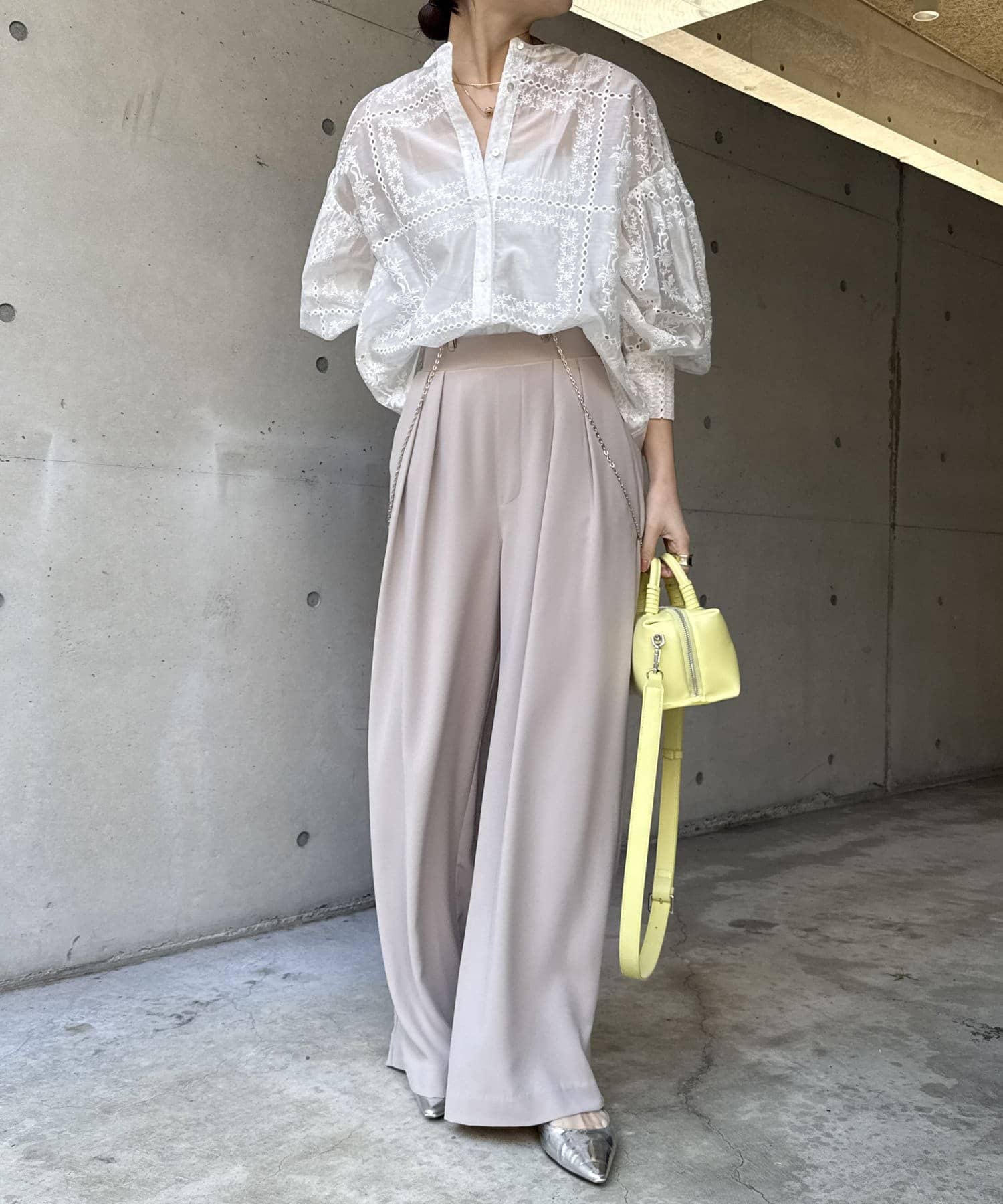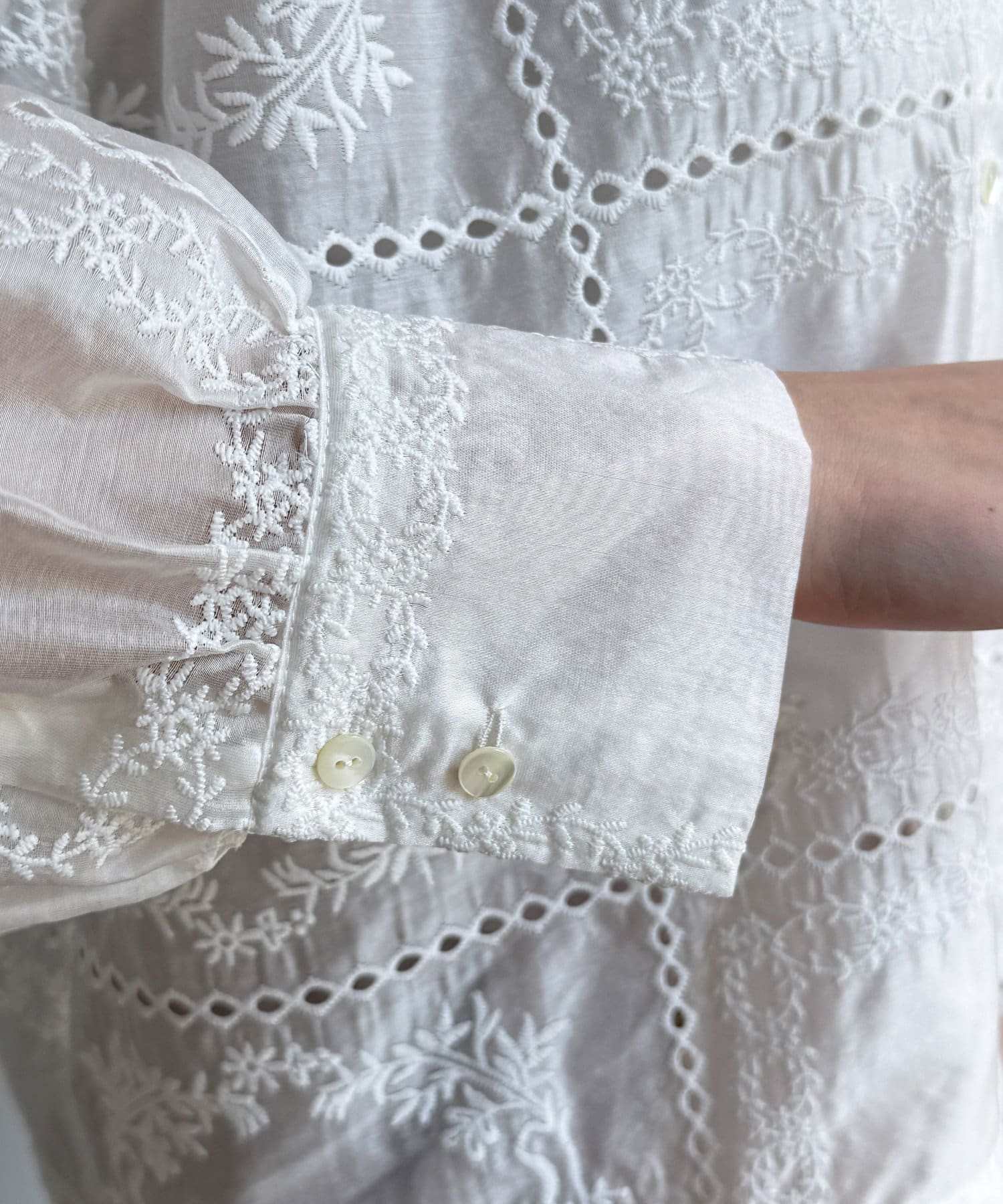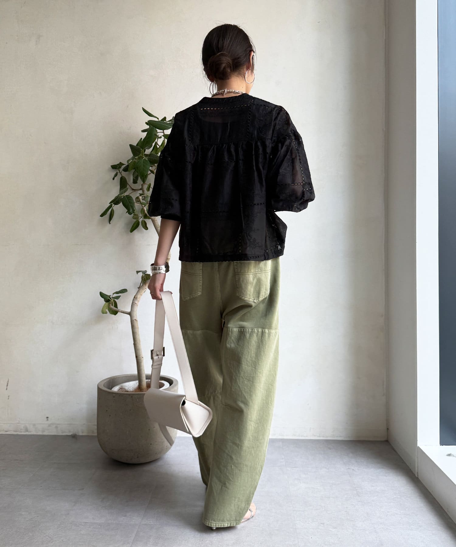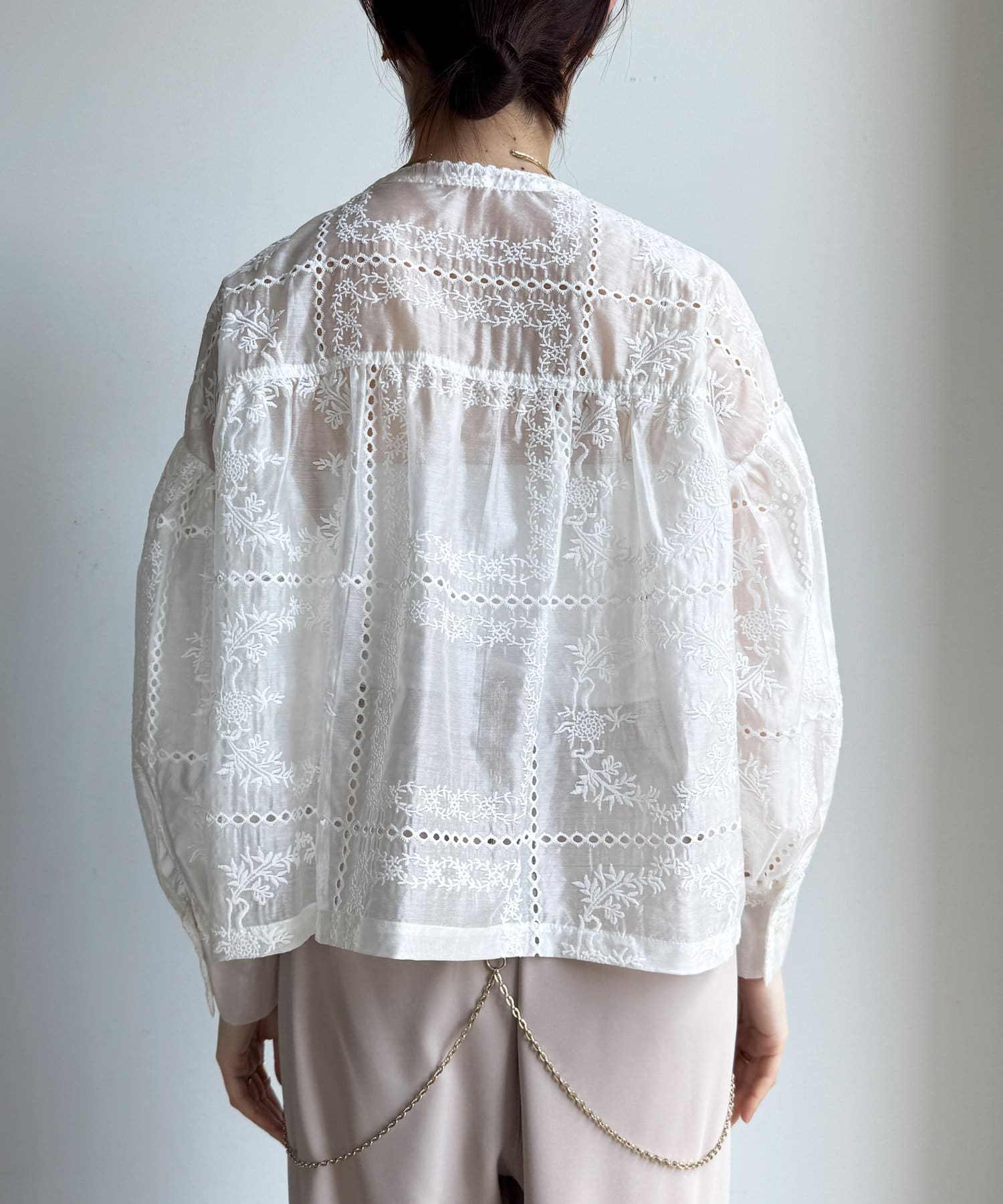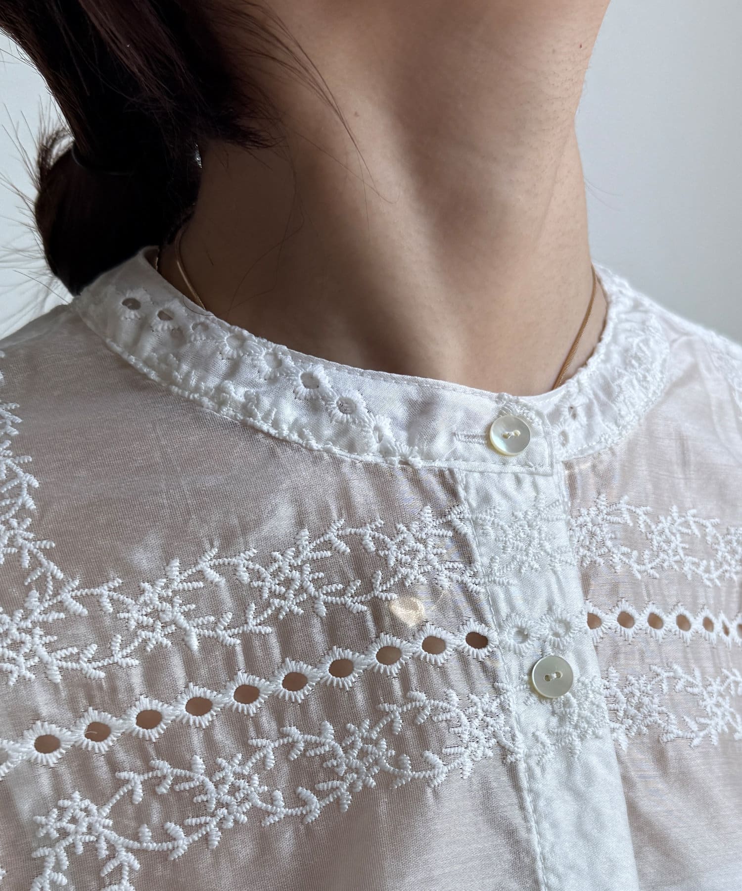 トレンドのシアーに存在感抜群の刺繍デザインが、いつものコーデに投入するだけで一気に華やかさアップ。