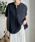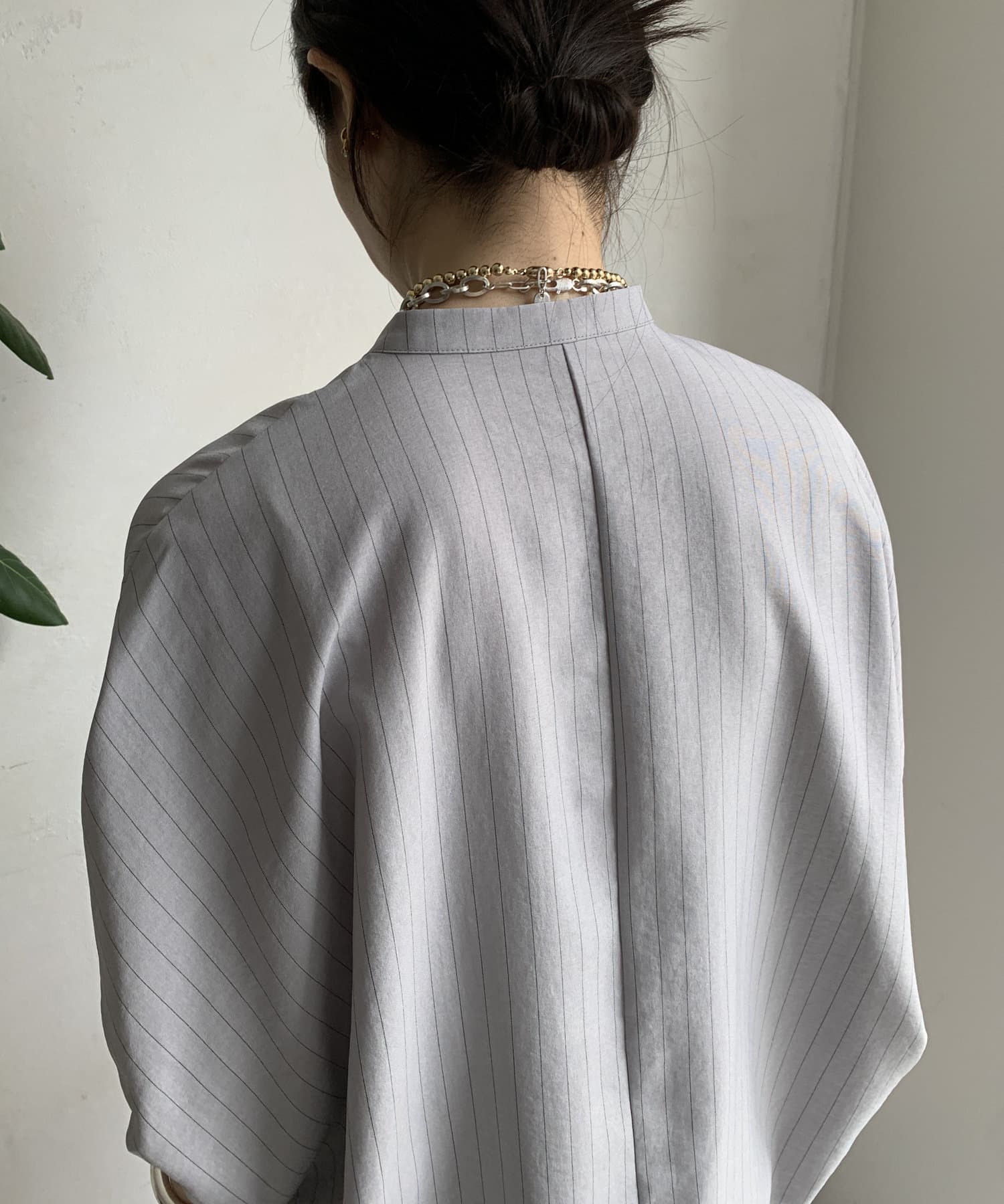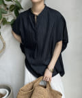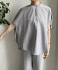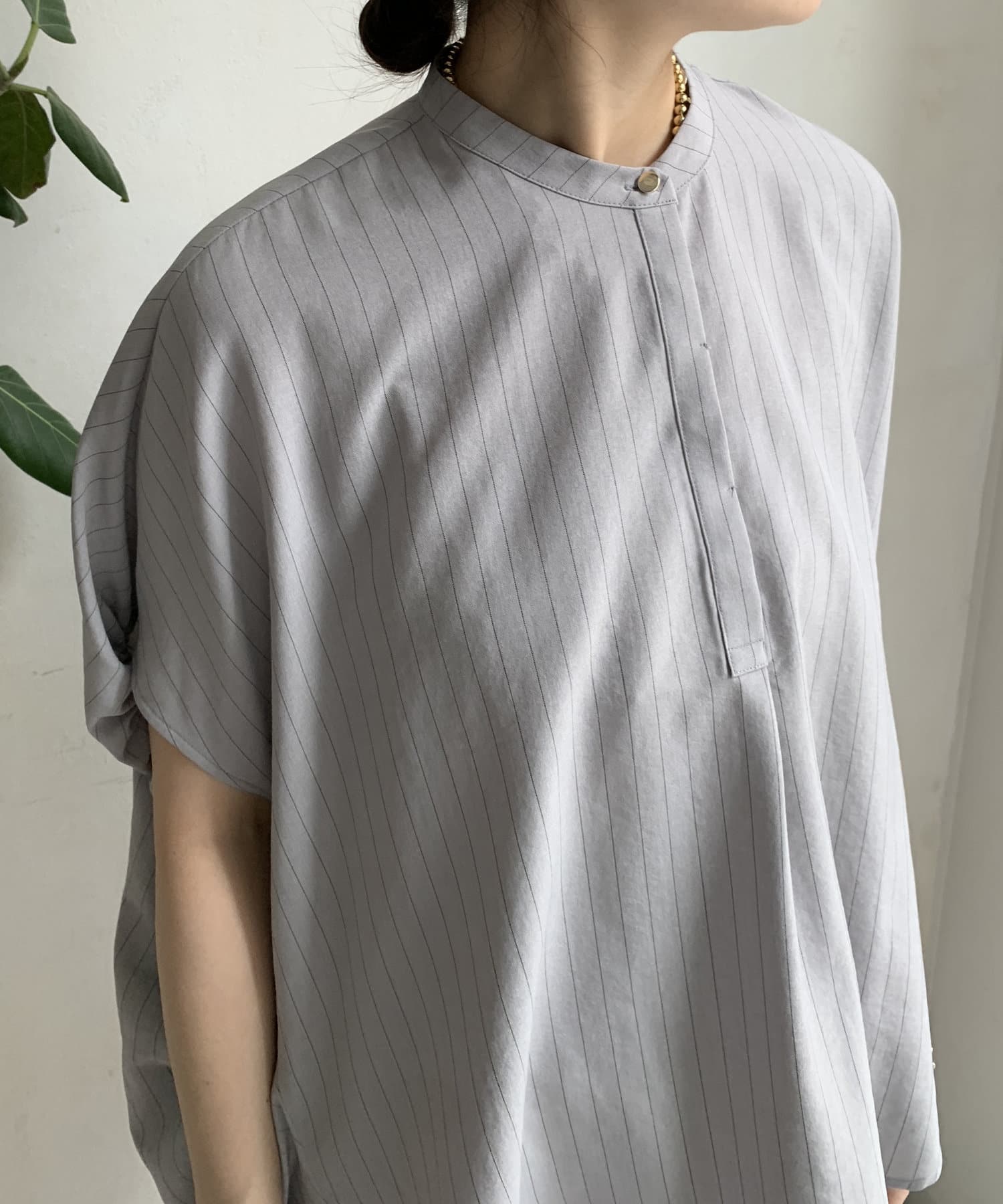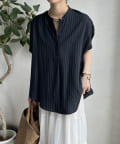 【WEB限定】タンブラーブッチャーストライプ袖ギャザーシャツ