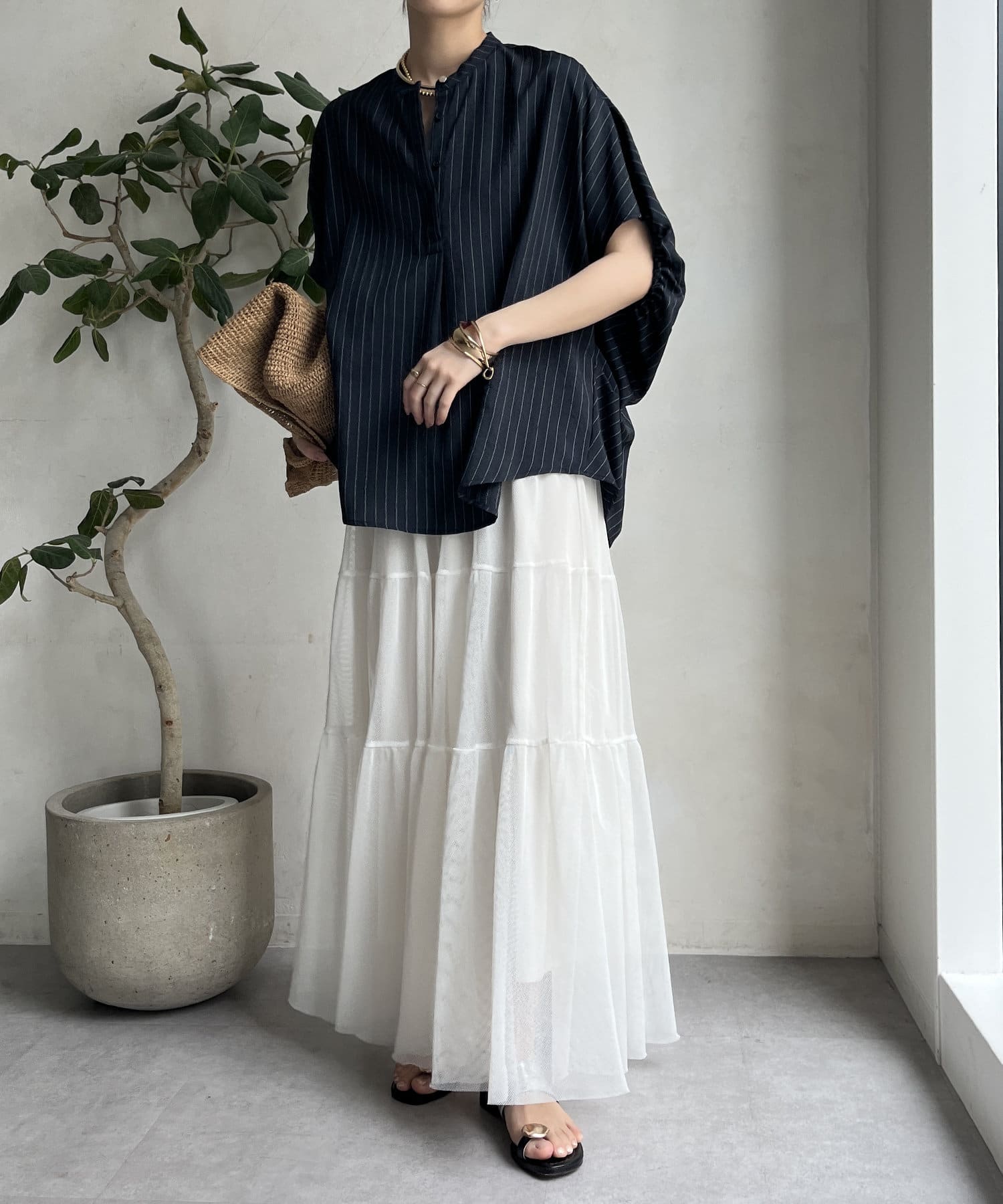 同素材のパンツ(DDZ1051302A0001/タンブラーブッチャーストライプイージーパンツ)とセットアップ対応可能です!
