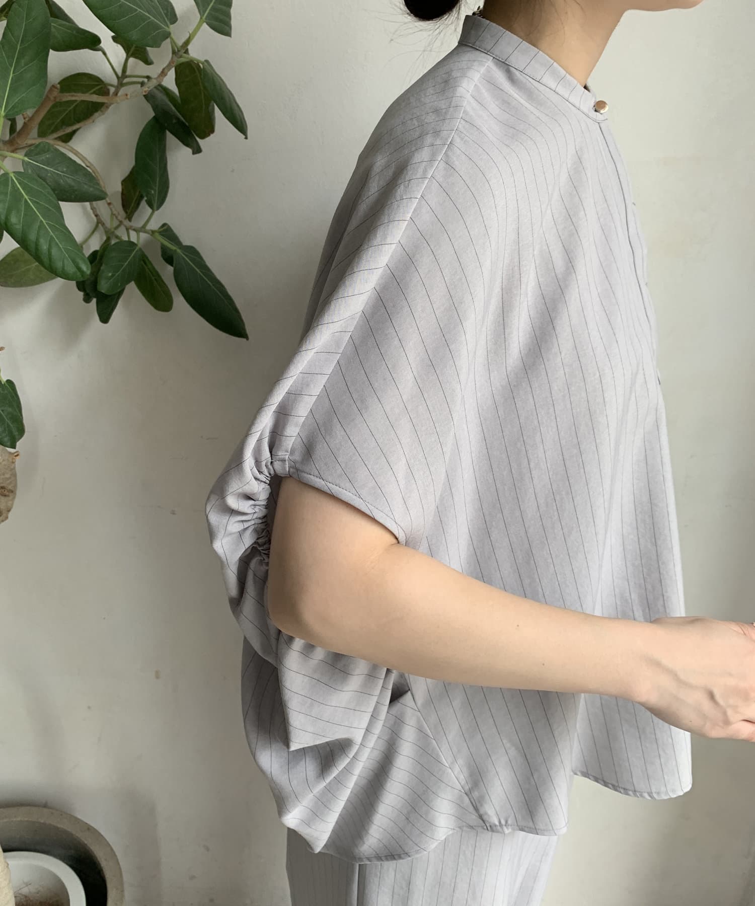 ギャザーを寄せた袖は、二の腕をさりげなくカバーしながら、女性らしい可愛らしさを演出。