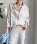 襟付きのデザインが今らしく、カジュアルなアイテムとのスタイリングでバランスよく決まるデザインに仕上げました。