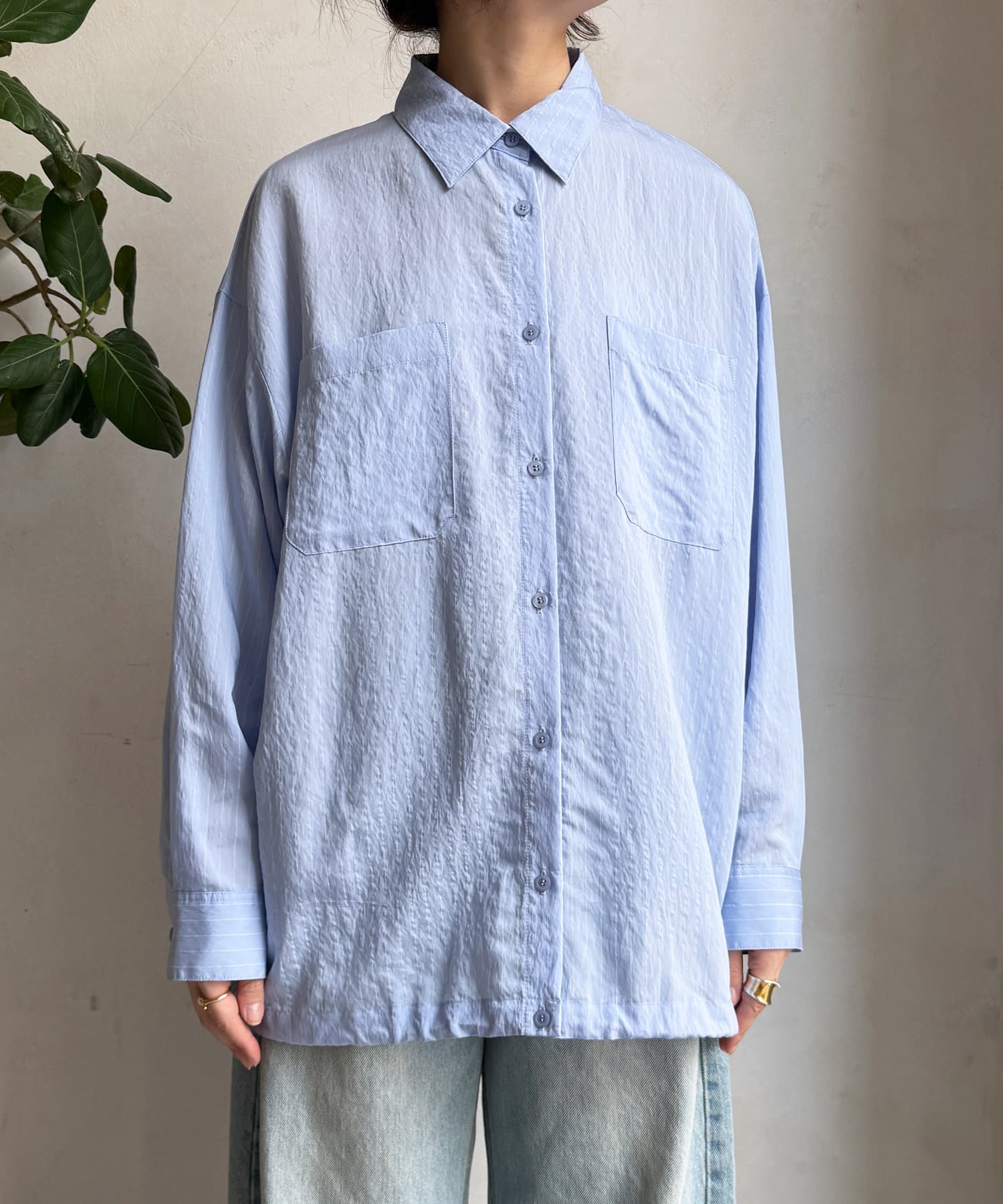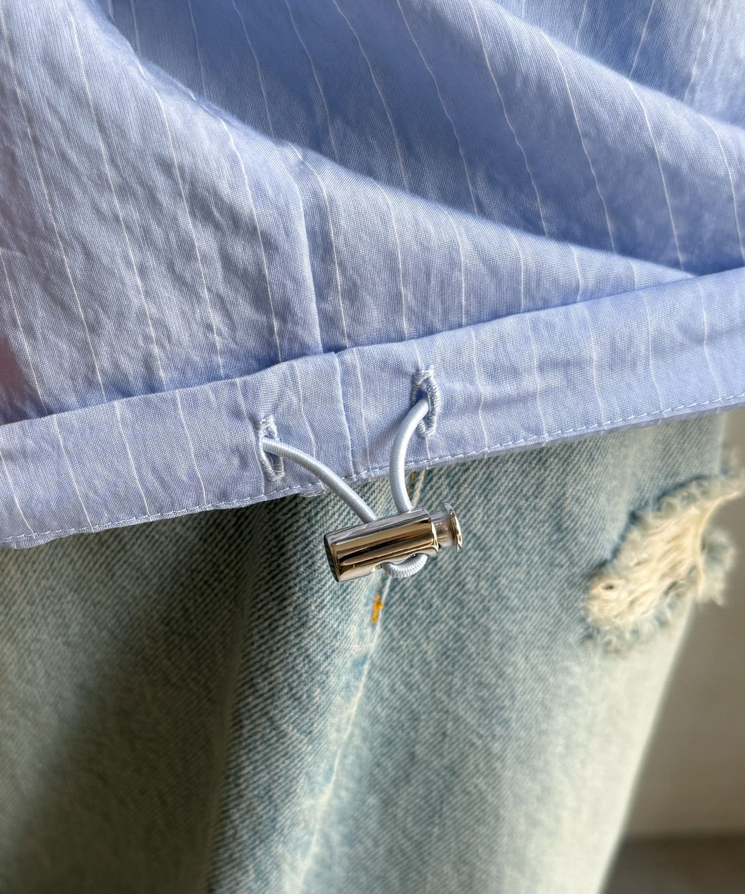 裾にはドロストコードをプラス。絞ることでシルエットを簡単にアレンジが可能。