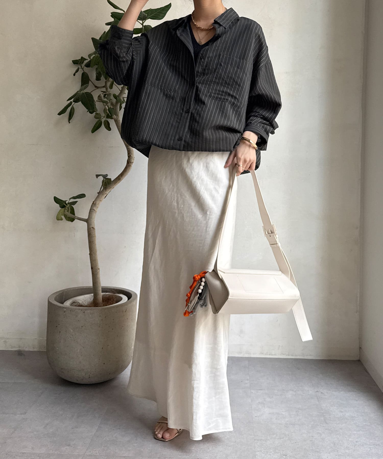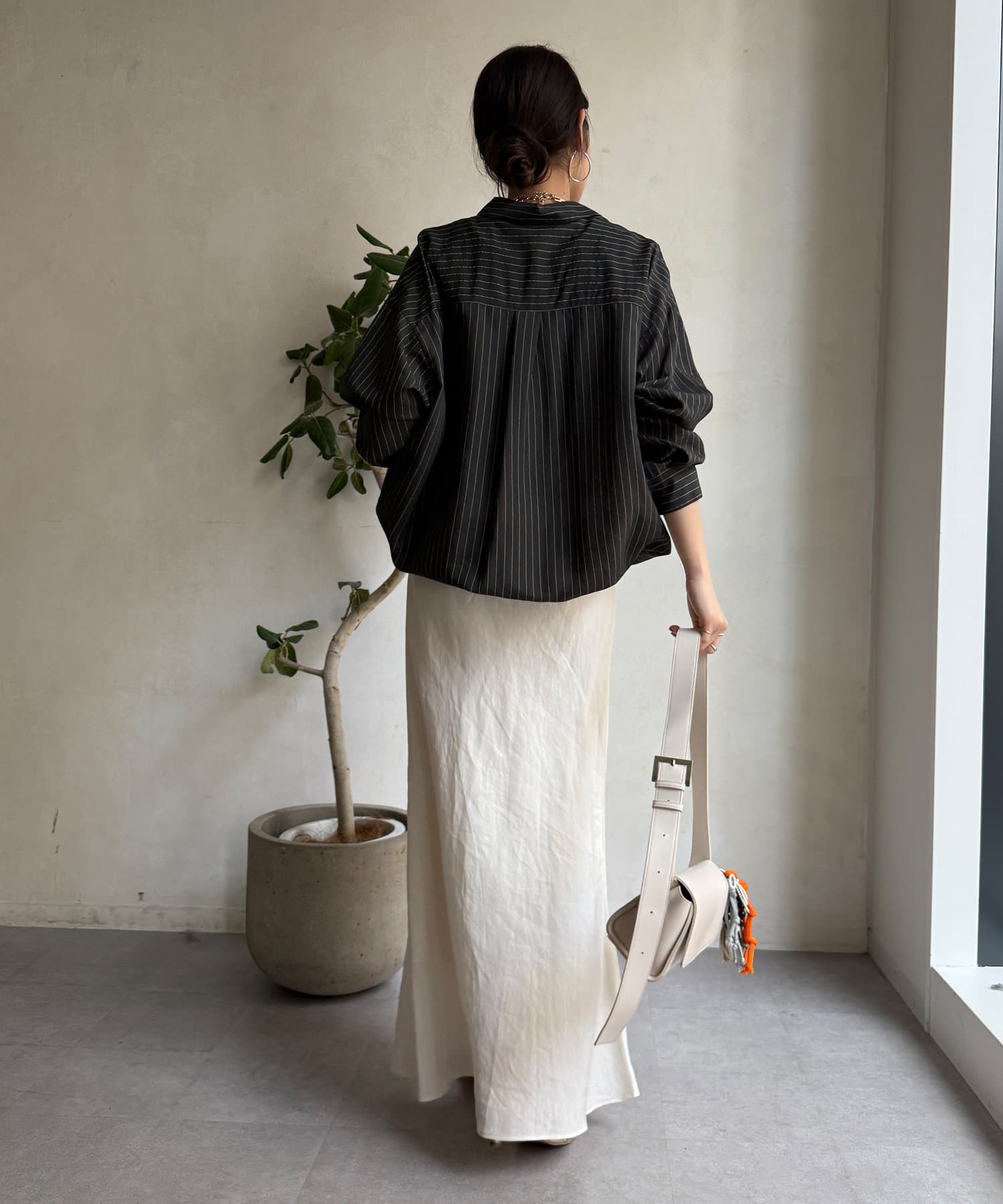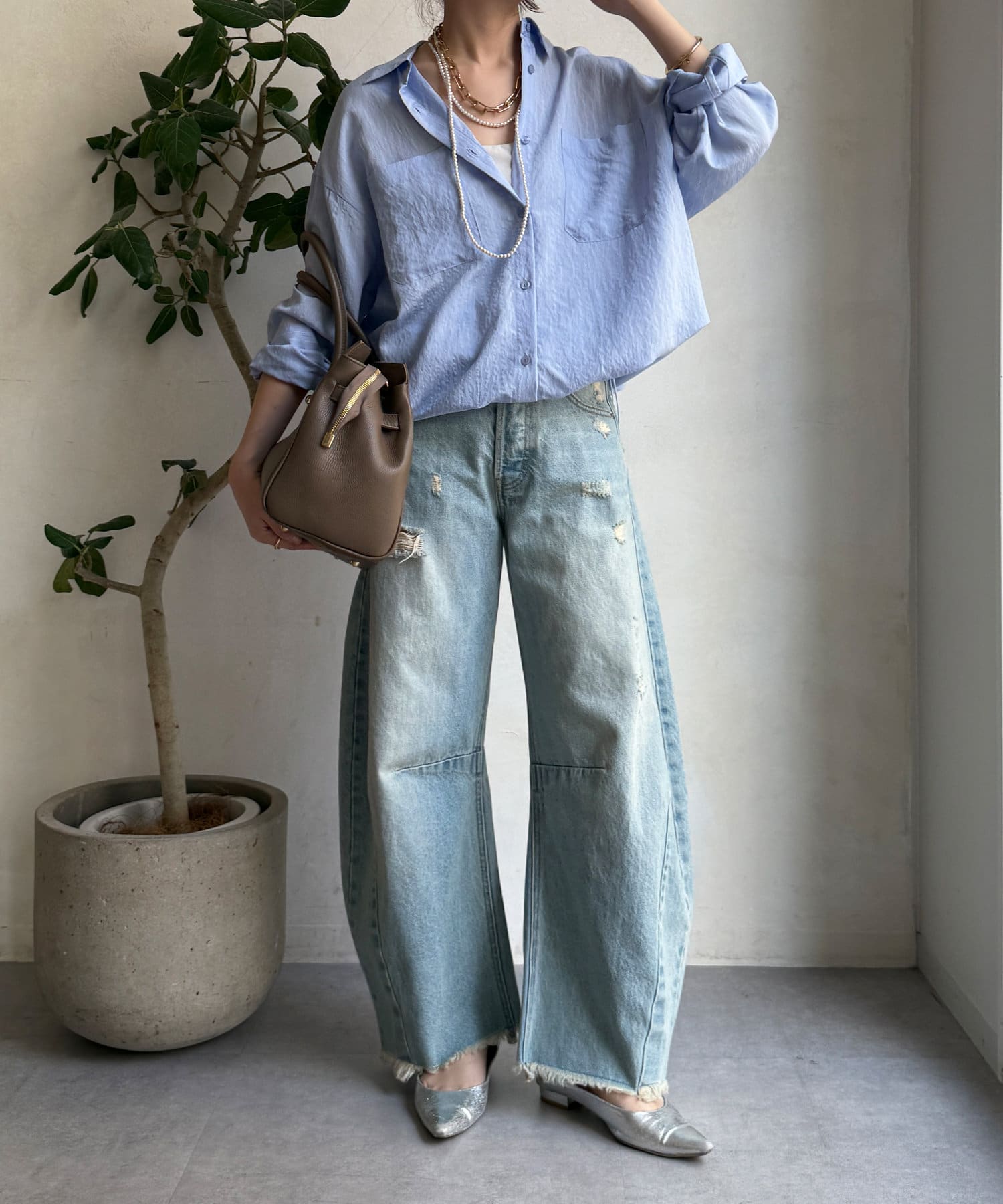 ボトムインしなくても、ふんわりと内側に入るシルエットが完成します。