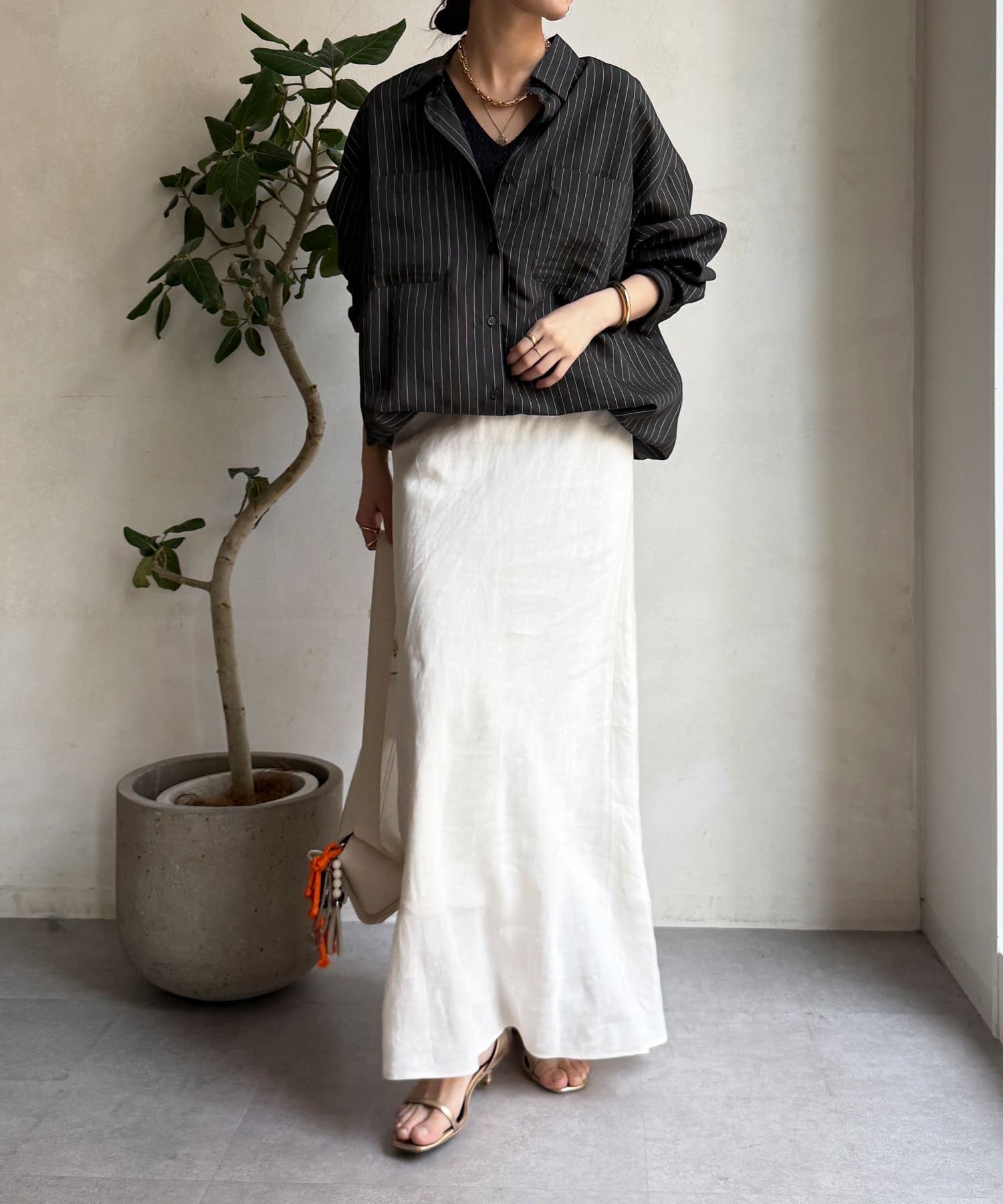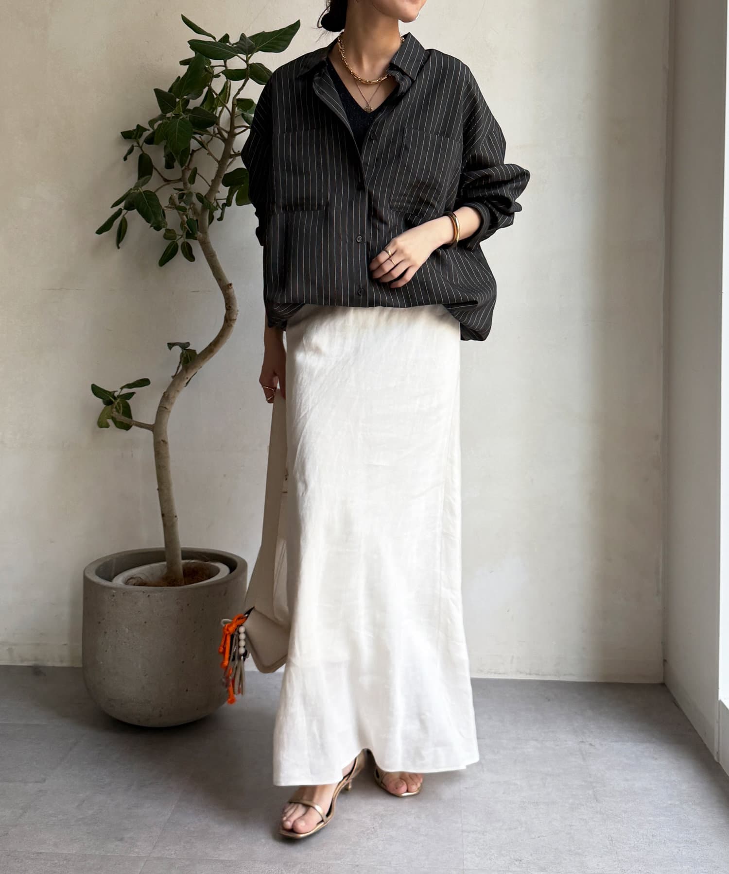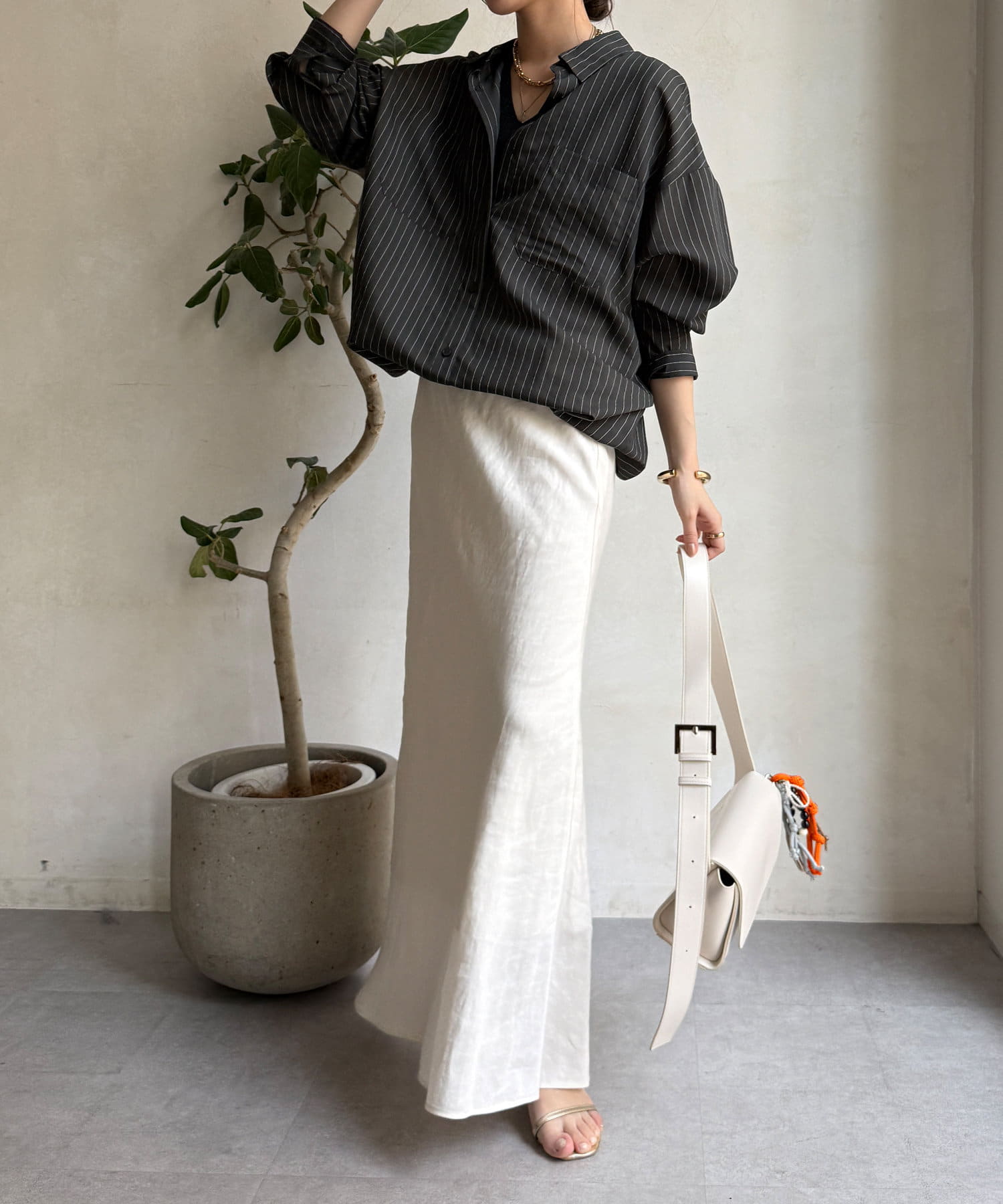 ボトムインしなくても、ふんわりと内側に入るシルエットが完成します。
