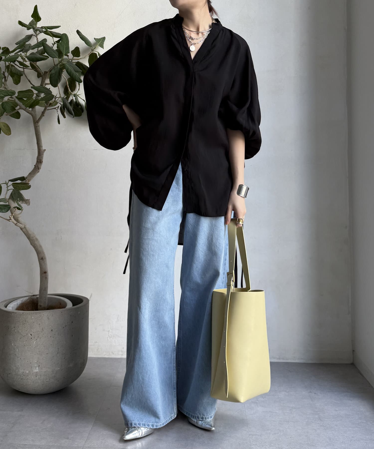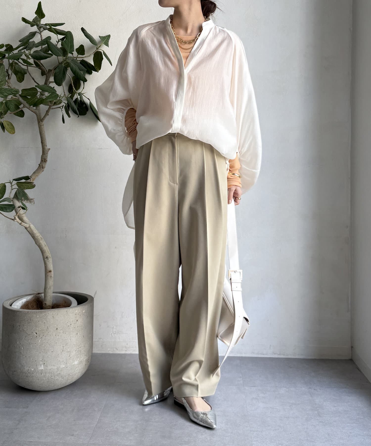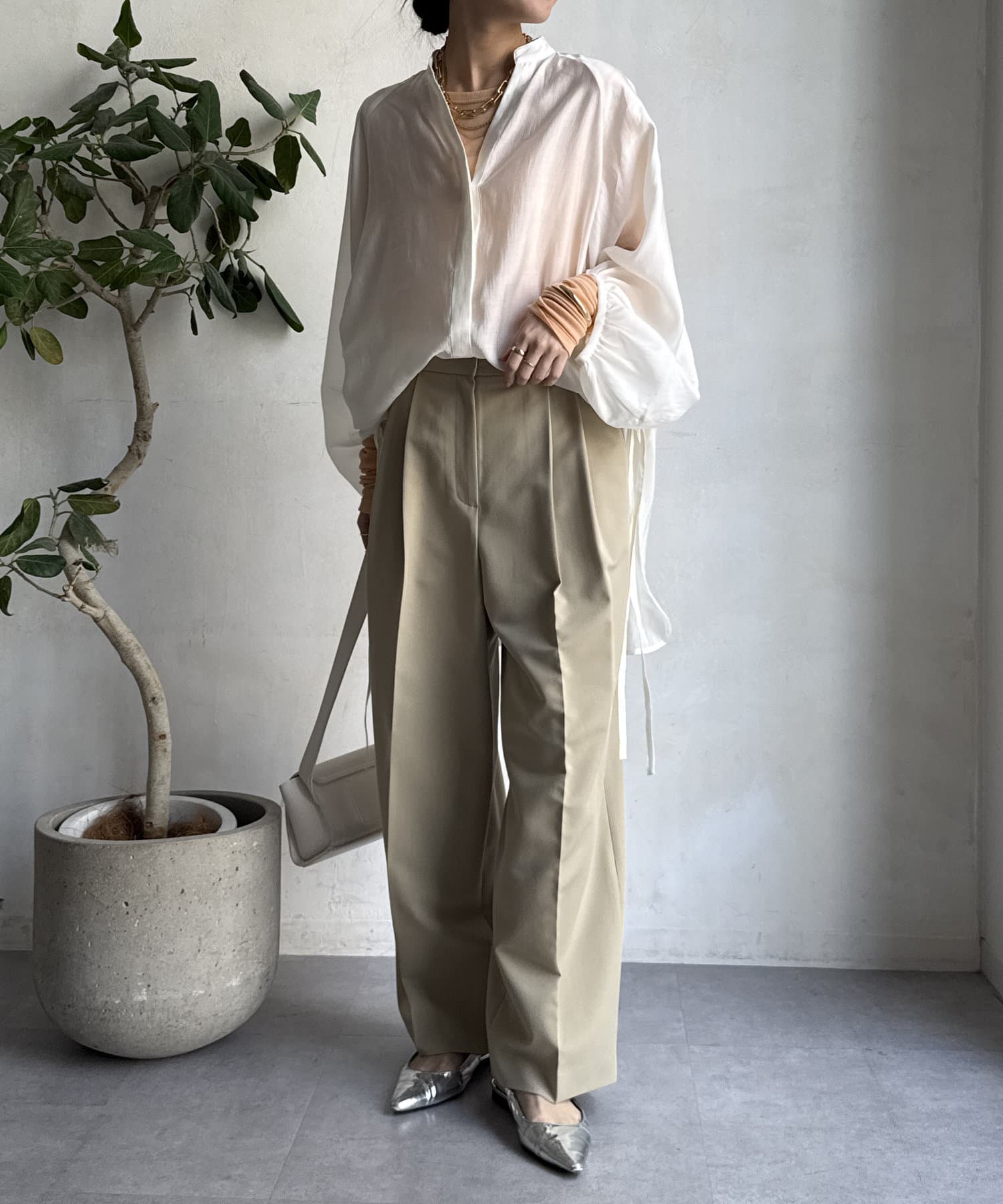 絞ると、抜け感のでるスリットが生まれるブラウスです!