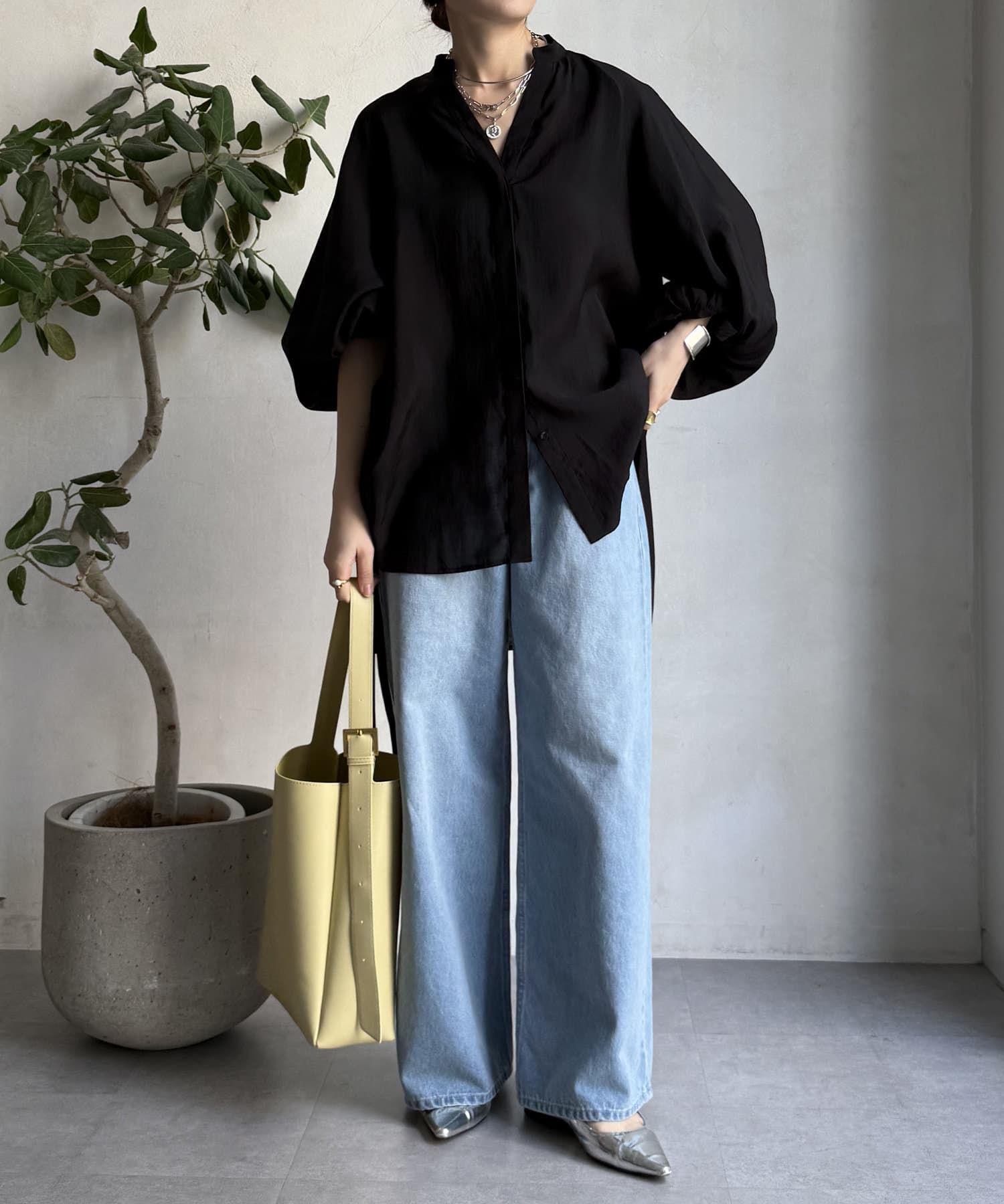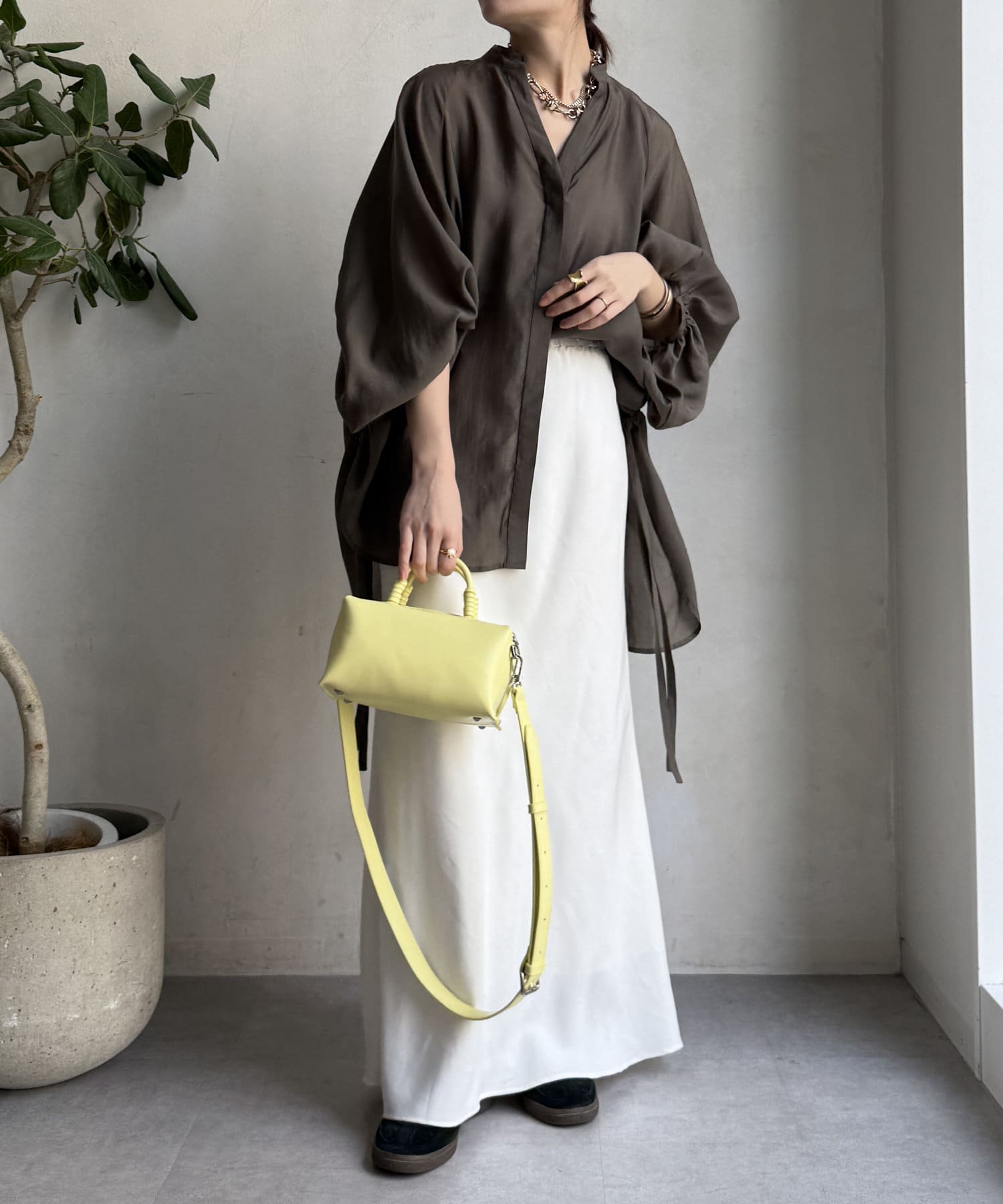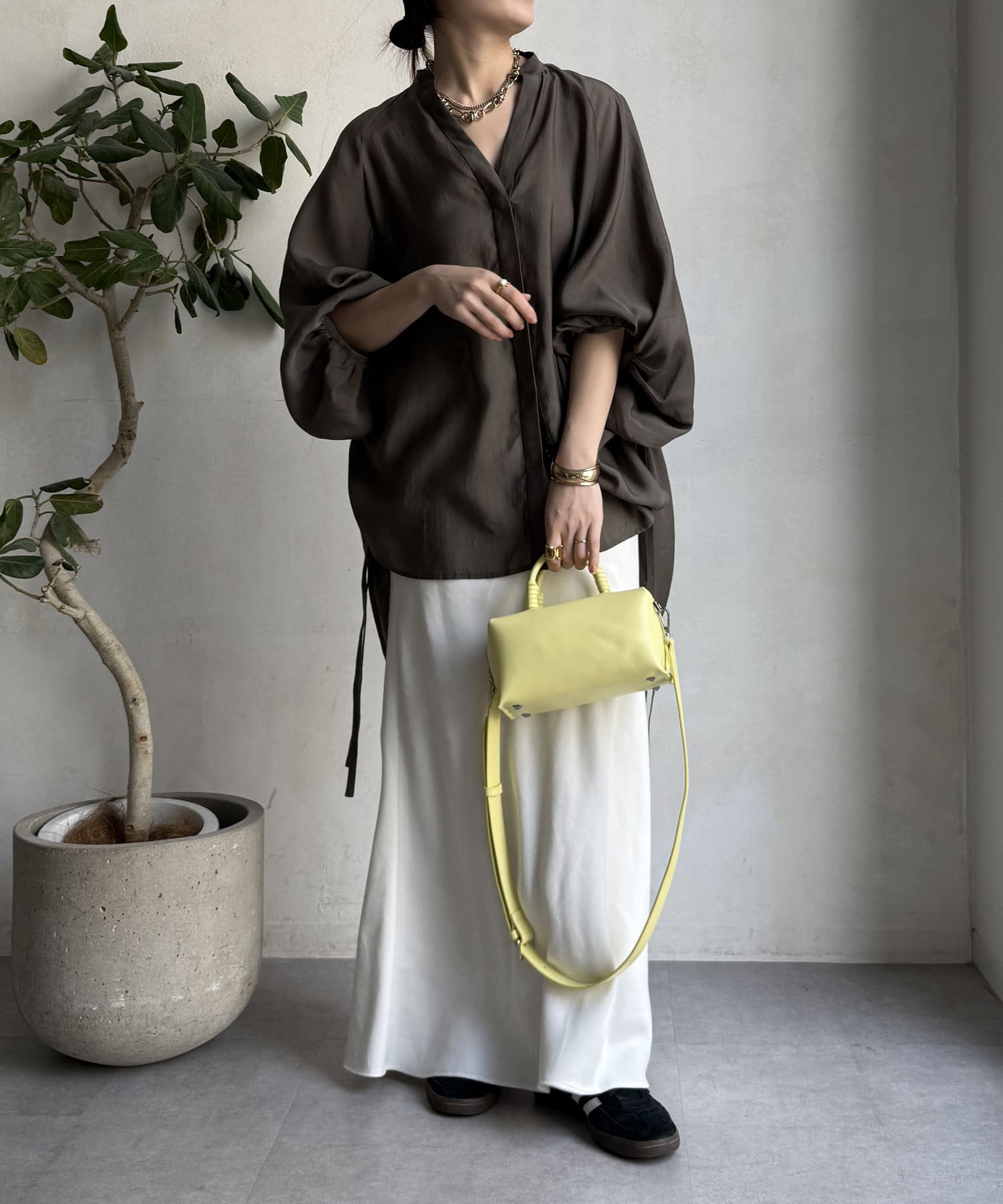 絞ると、抜け感のでるスリットが生まれるブラウスです!