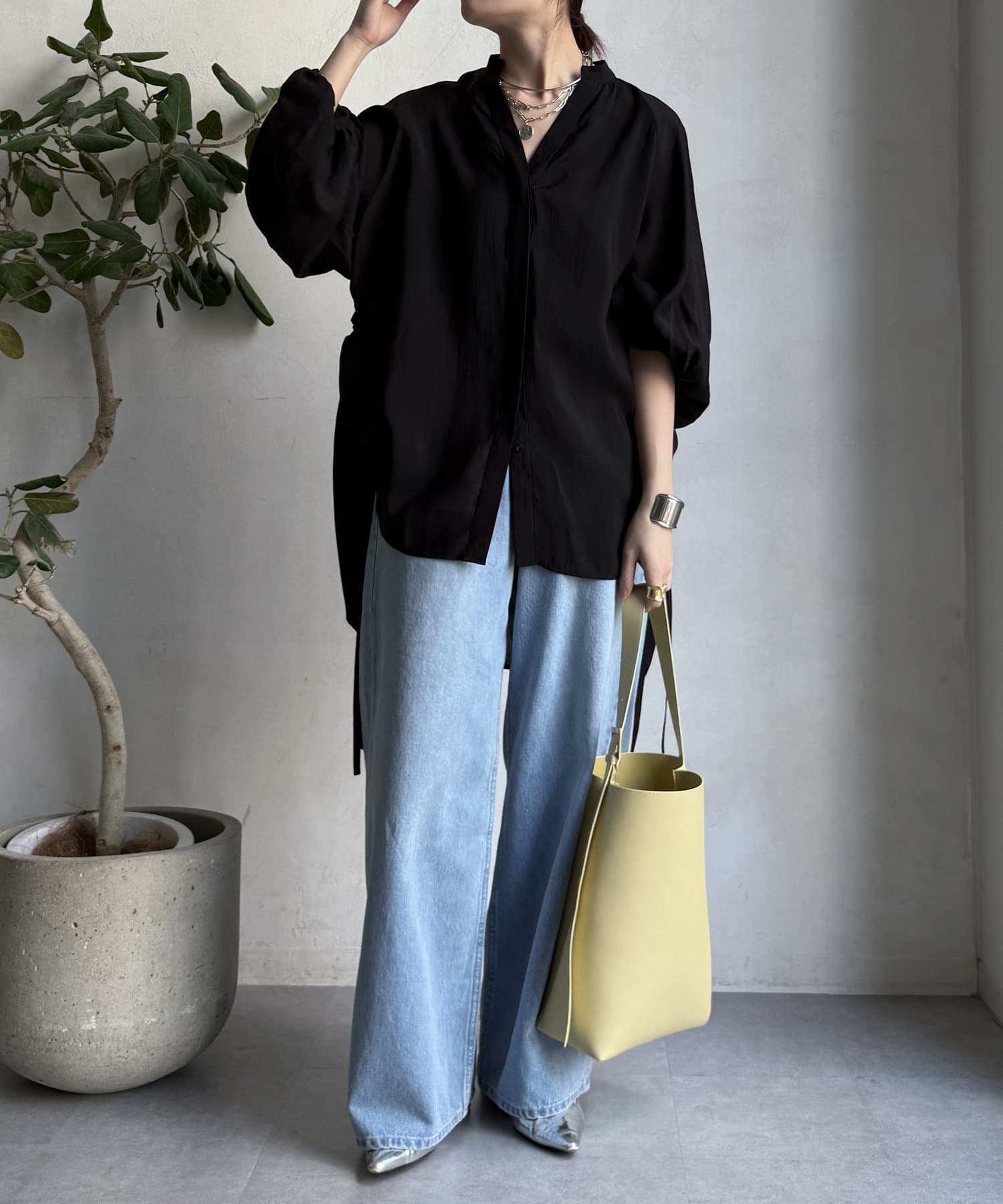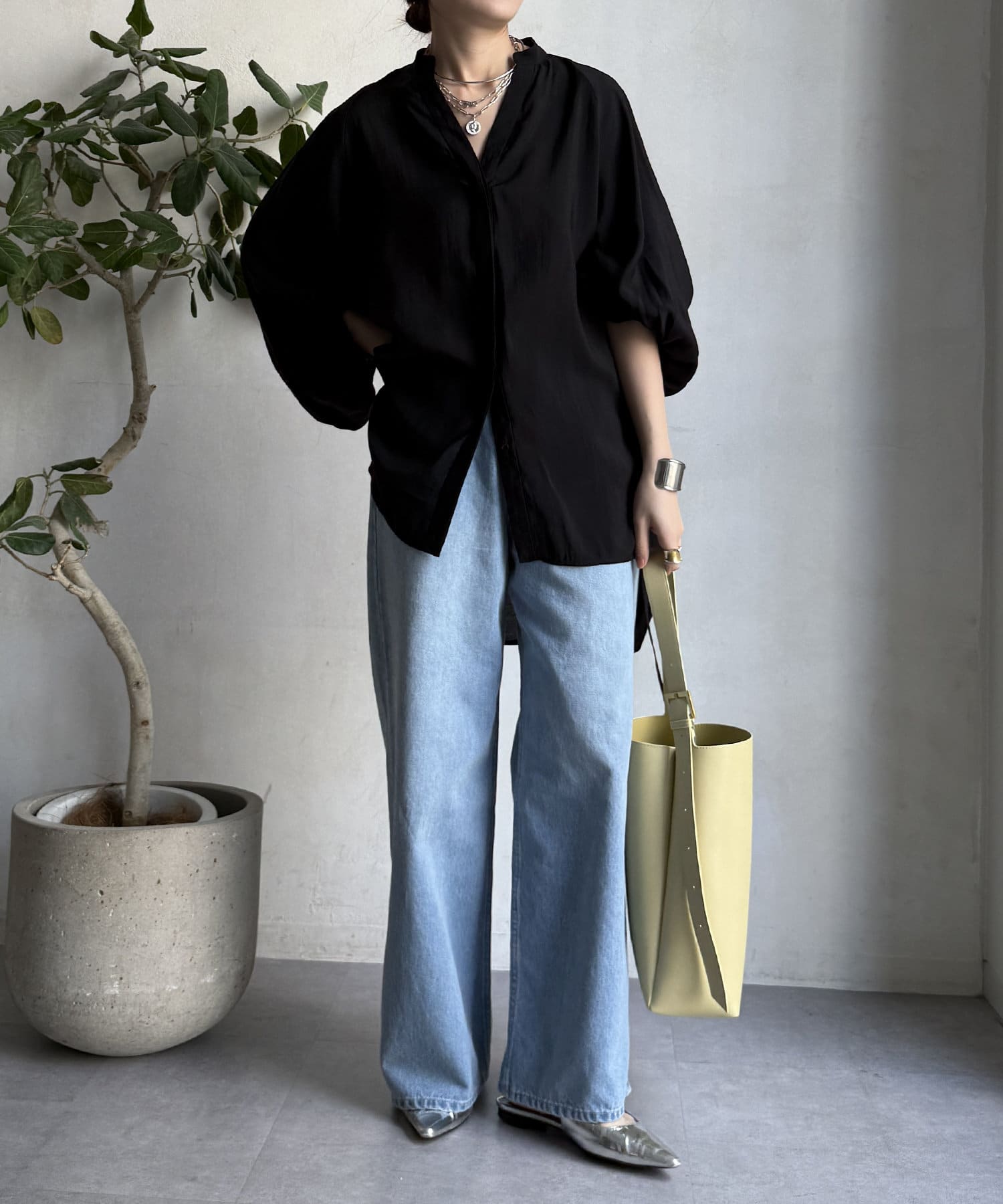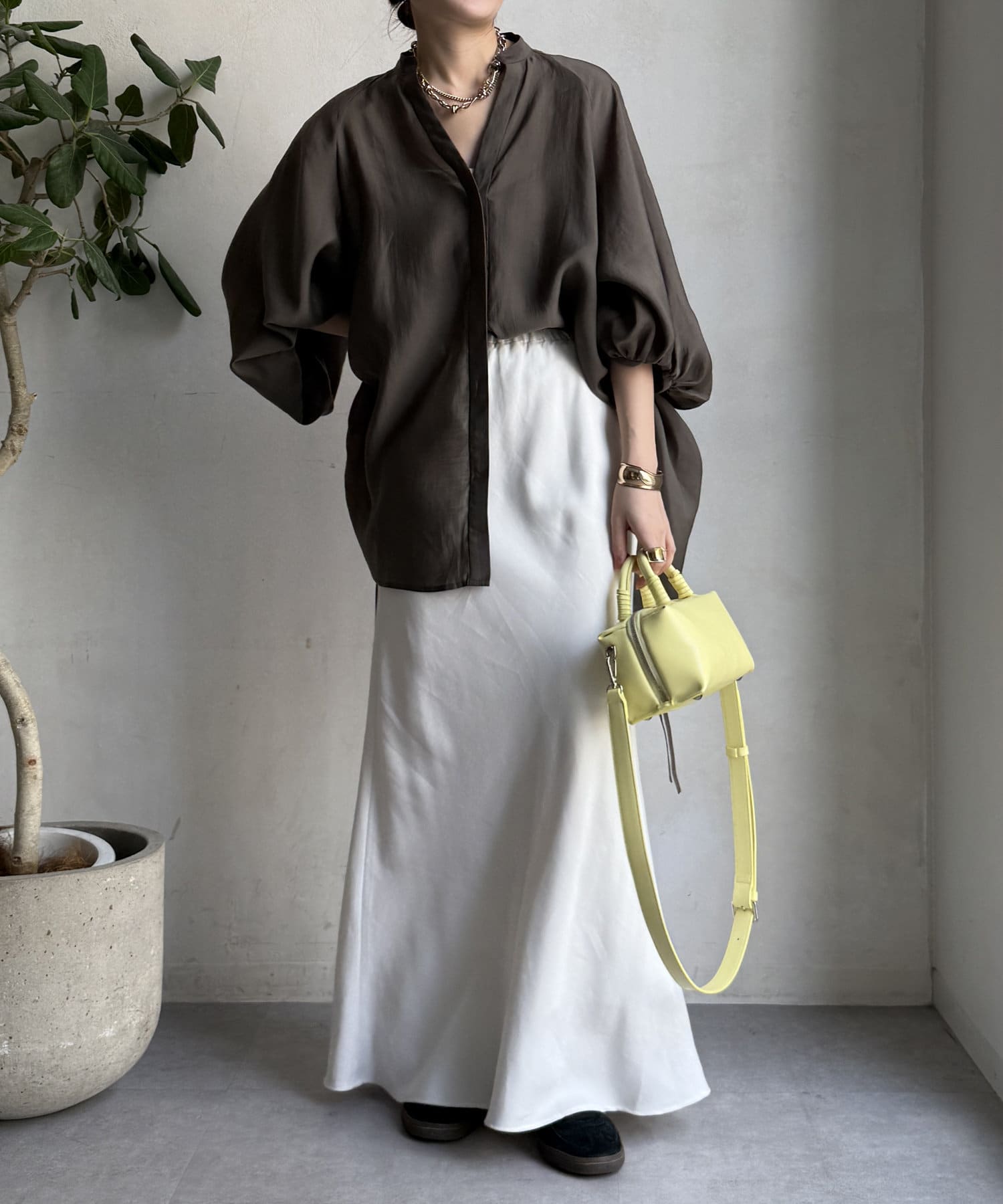 シンプルなノーカラーデザインなので、上品なスタイリングに仕上げてくれますよ!