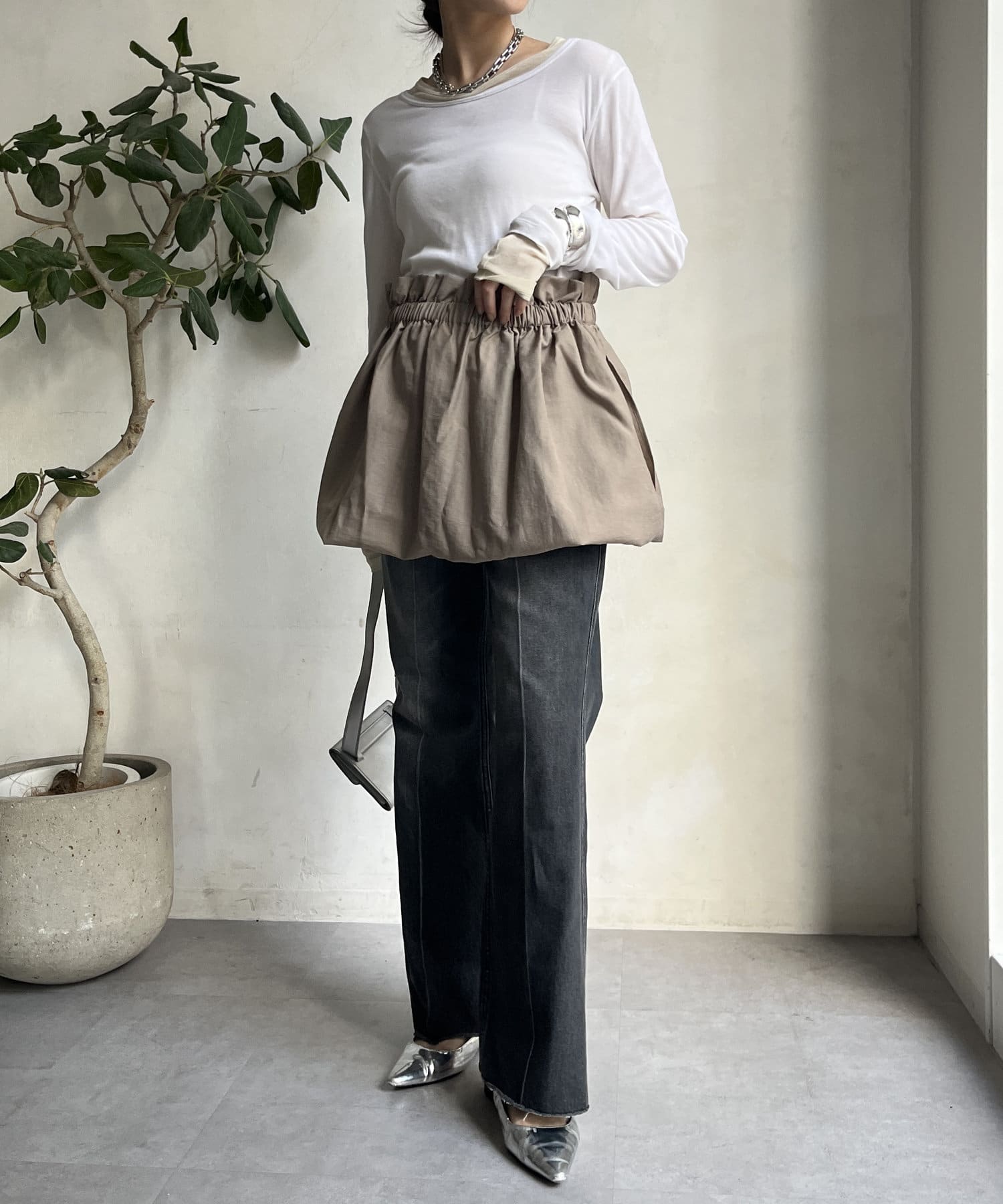 ふんわりとしたバルーンシルエットが、女性らしい柔らかな印象を。