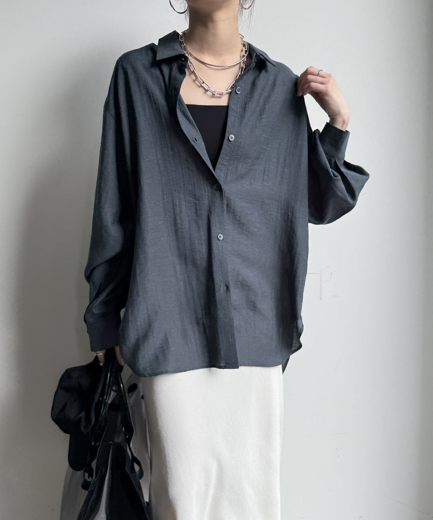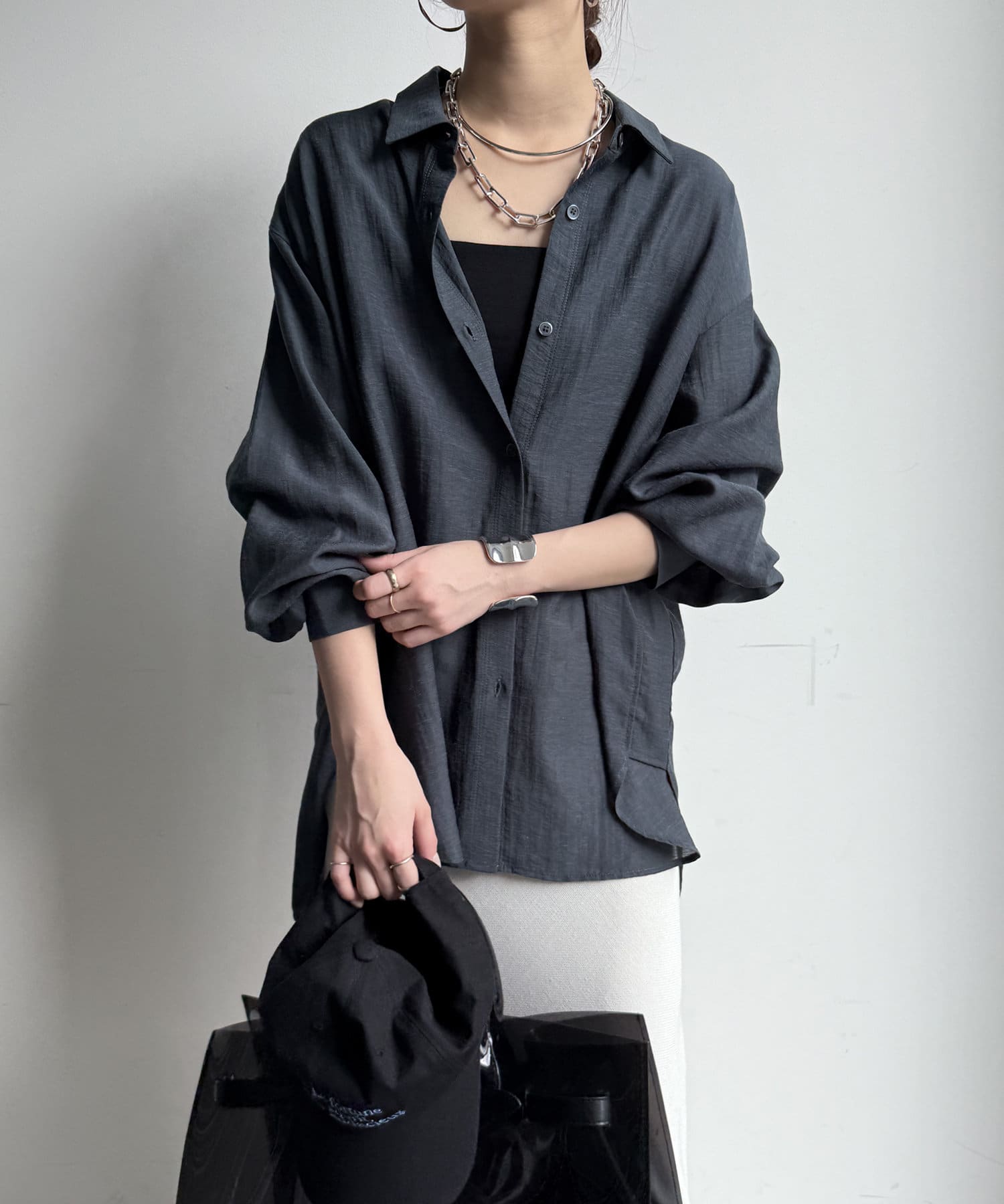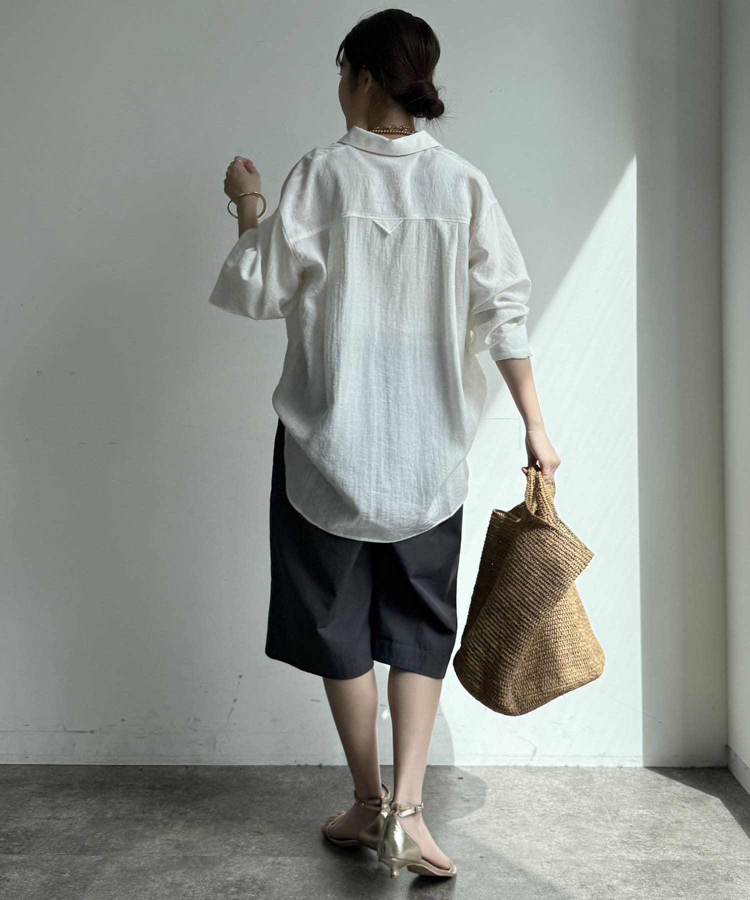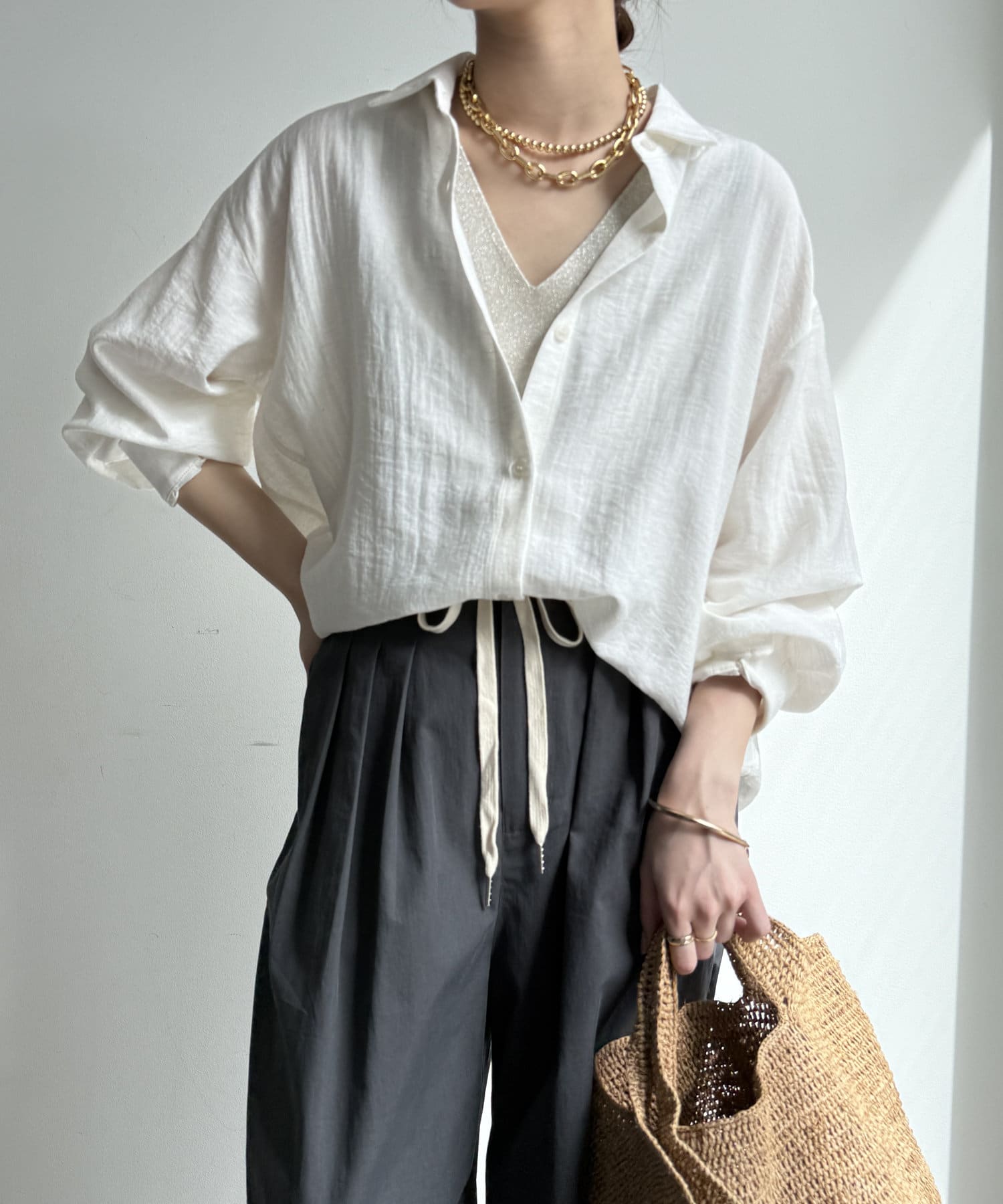 ボタンを閉じて、ゆるっと着こなすのも、ざっくりと羽織るスタイルもおすすめ◎