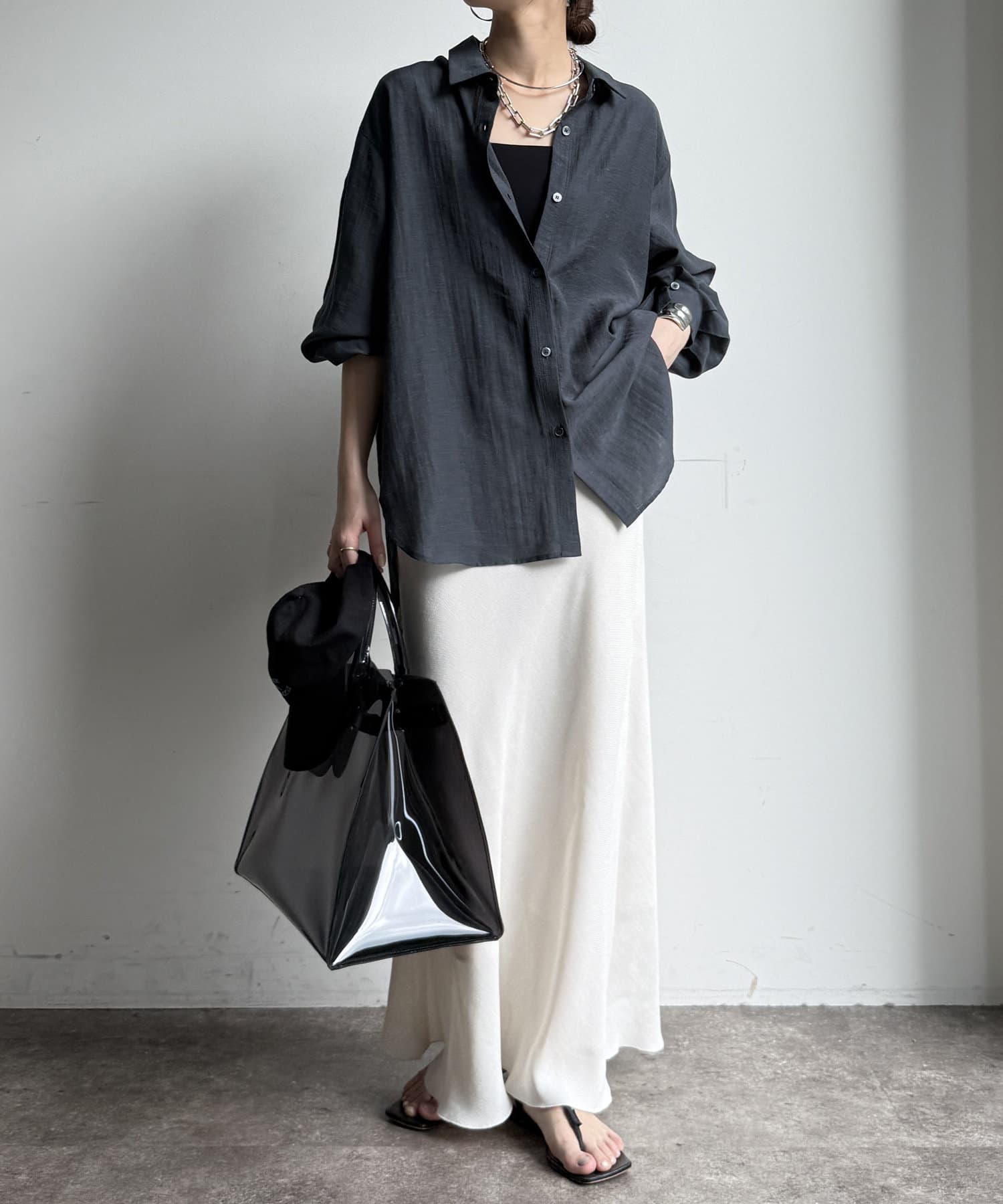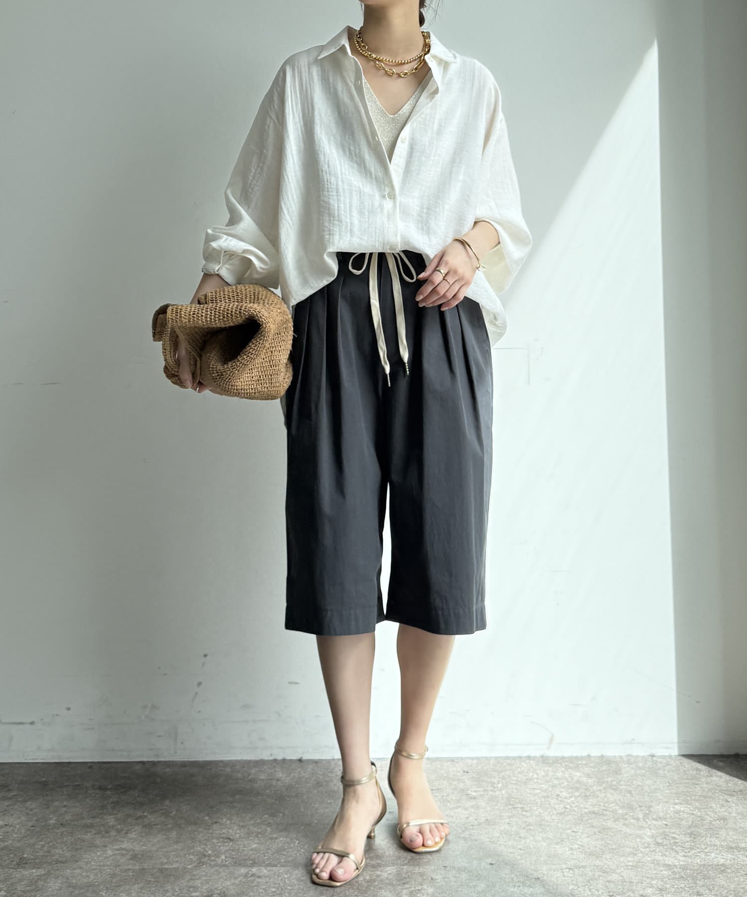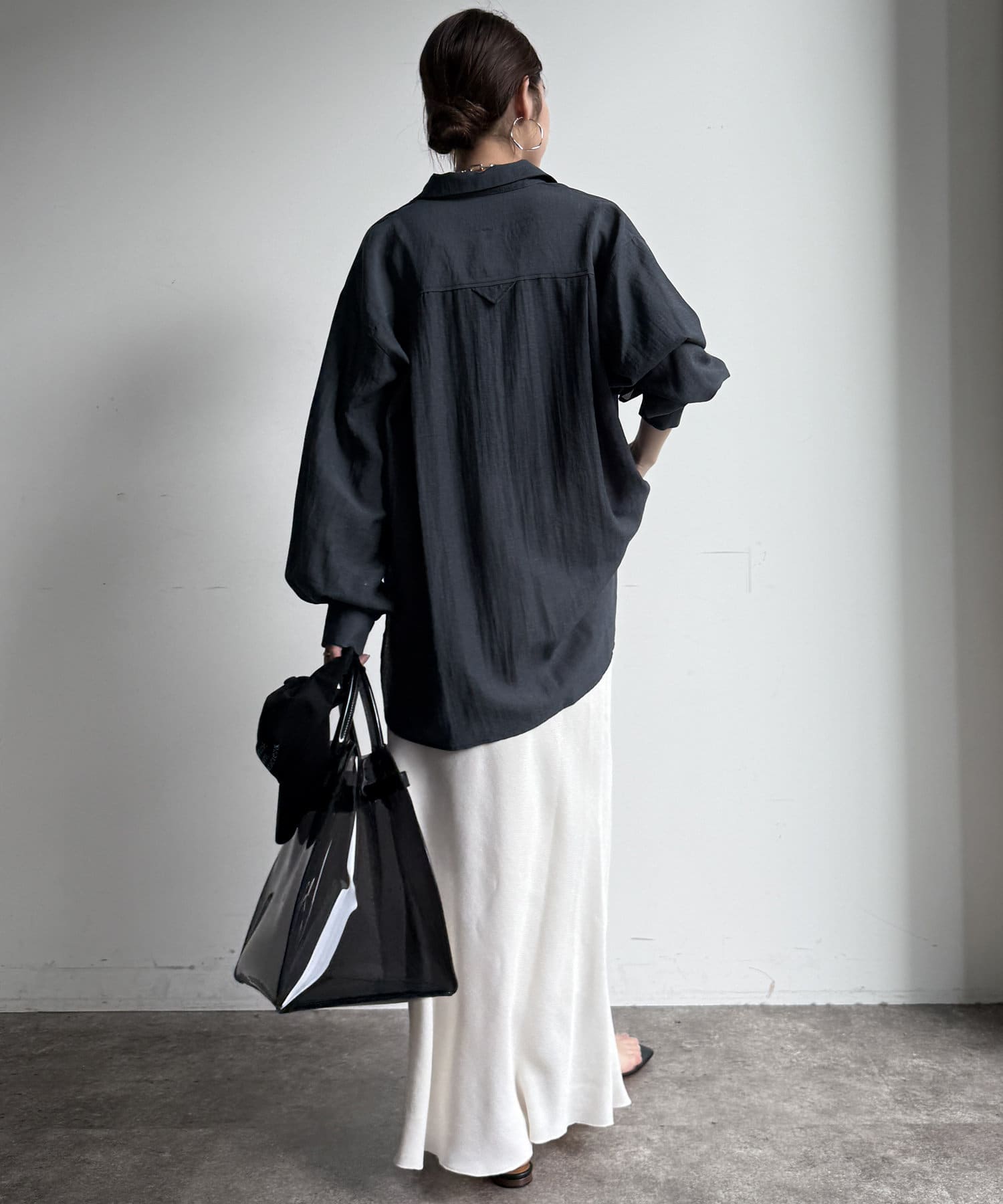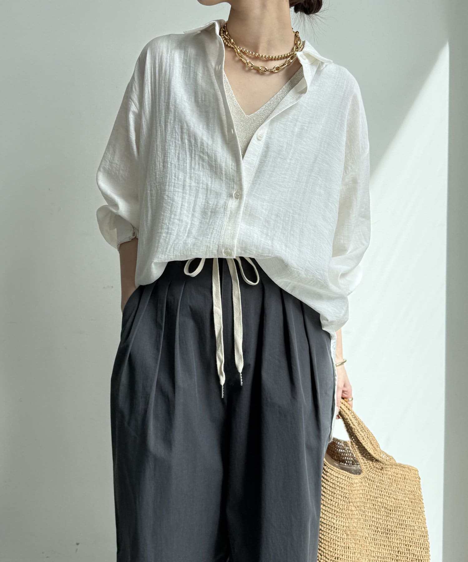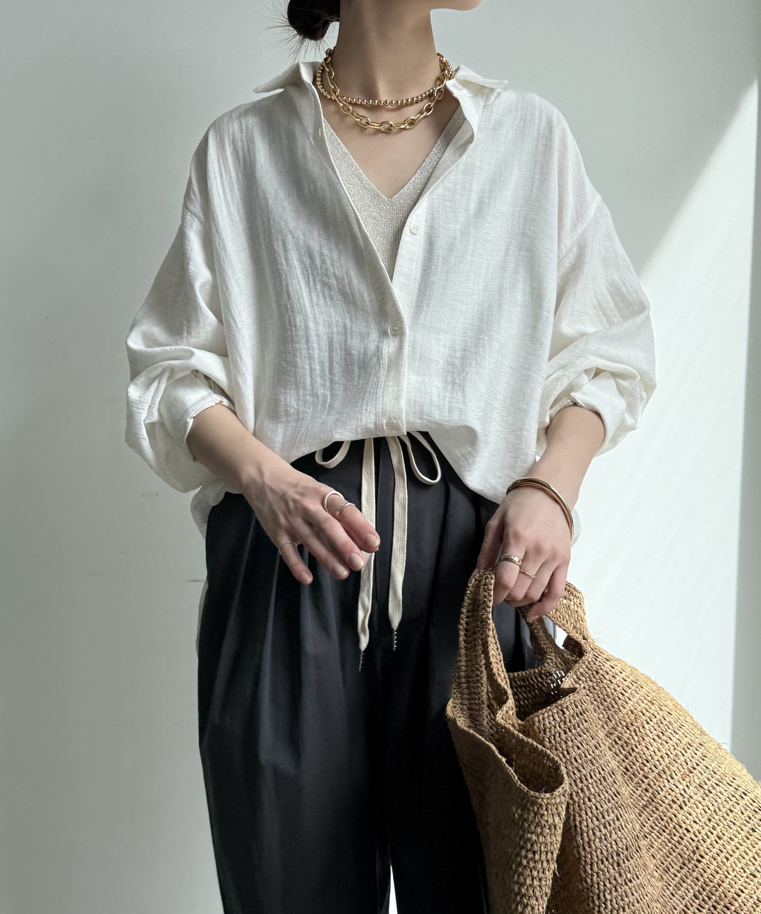 ボタンを閉じて、ゆるっと着こなすのも、ざっくりと羽織るスタイルもおすすめ◎