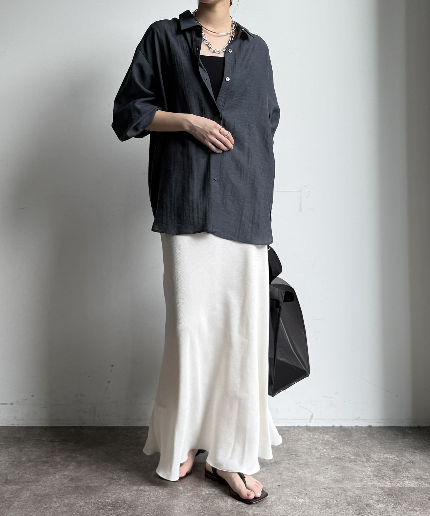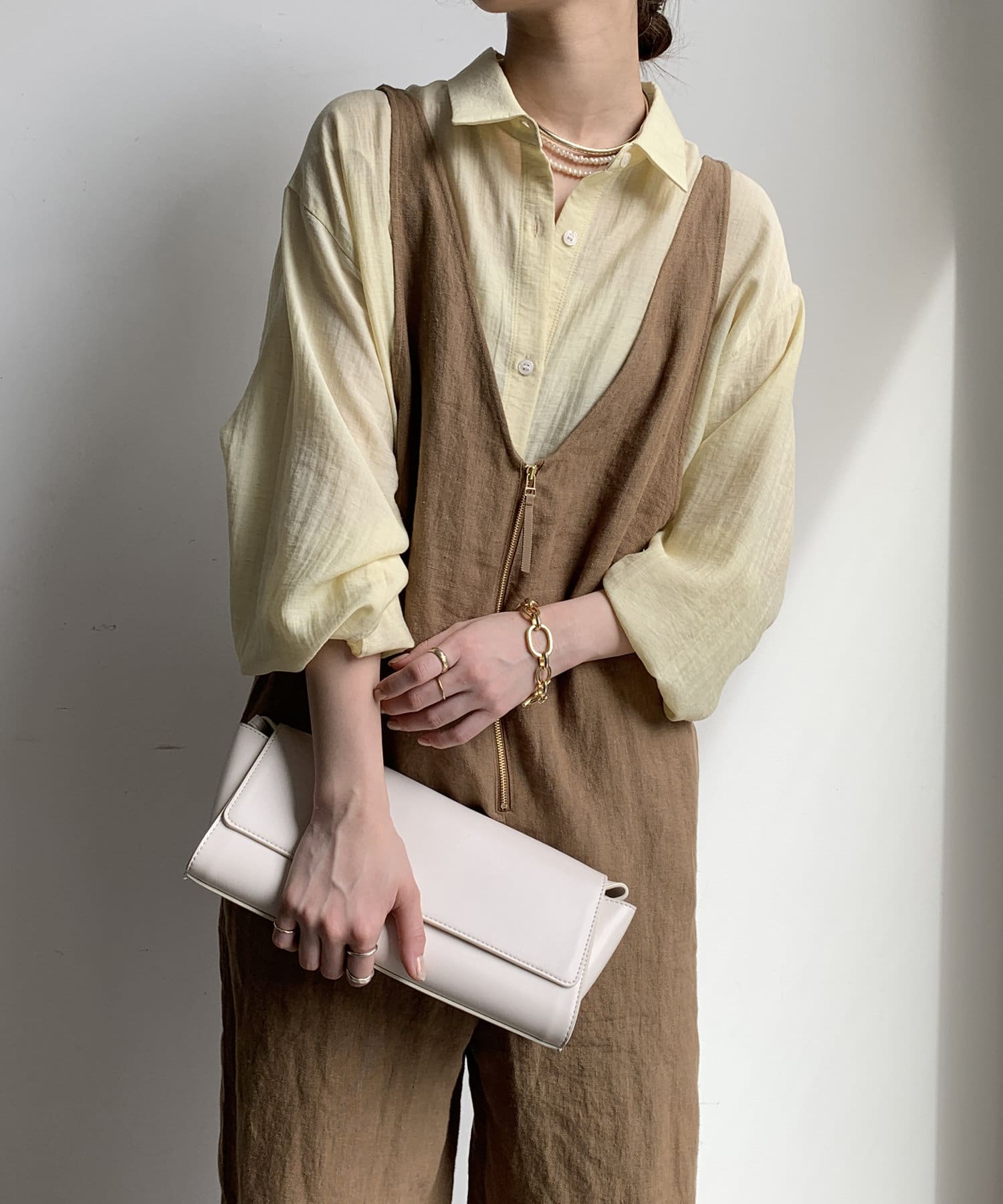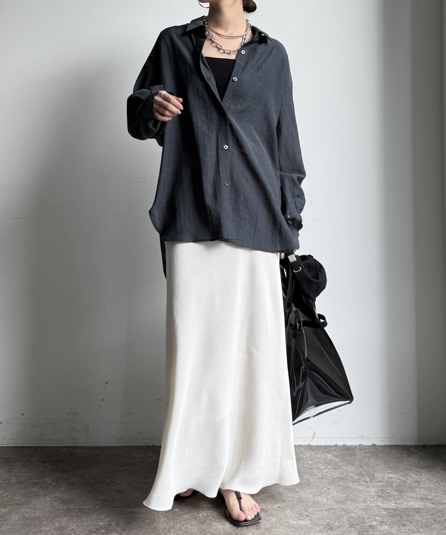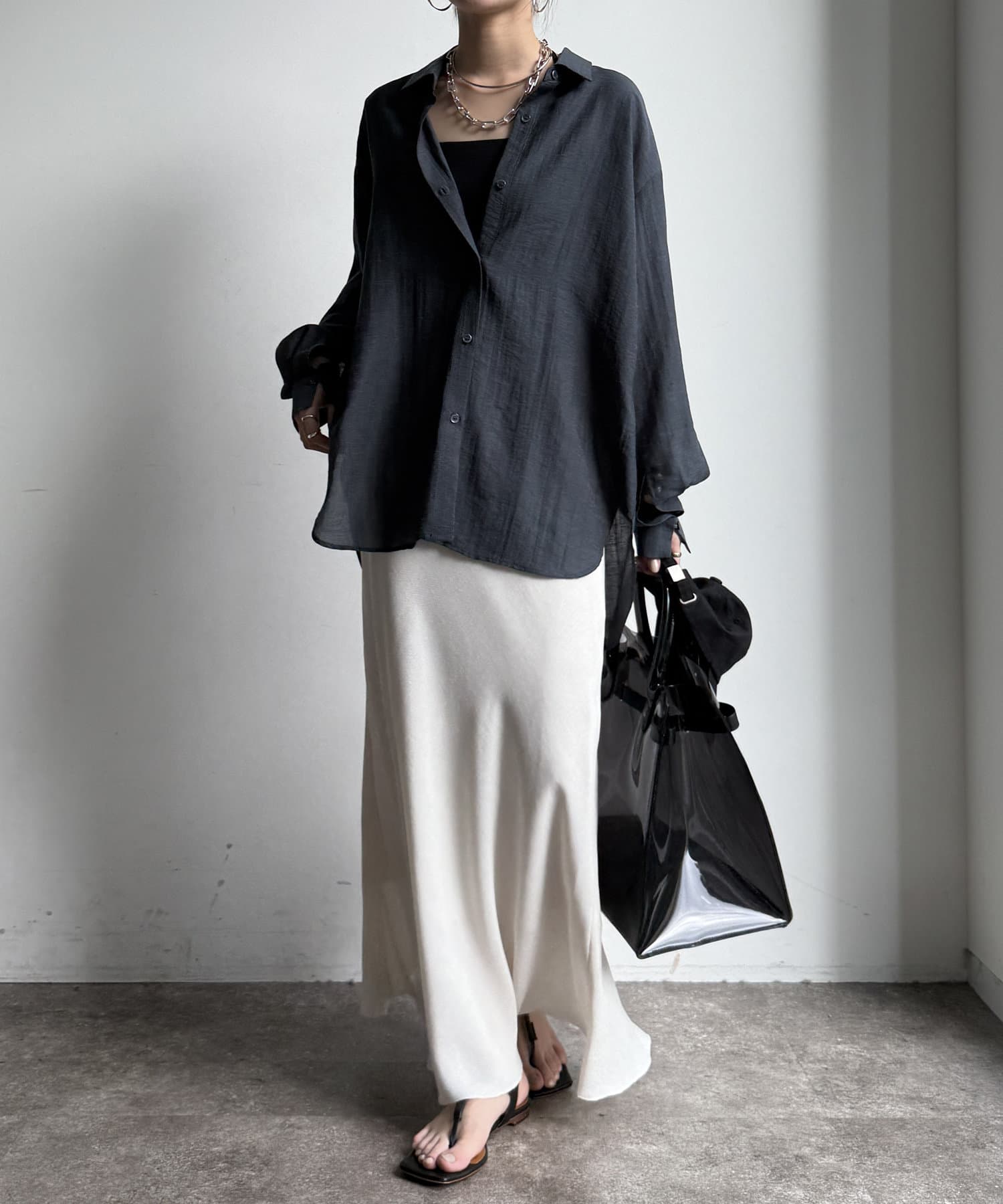 ボタンを閉じて、ゆるっと着こなすのも、ざっくりと羽織るスタイルもおすすめ◎