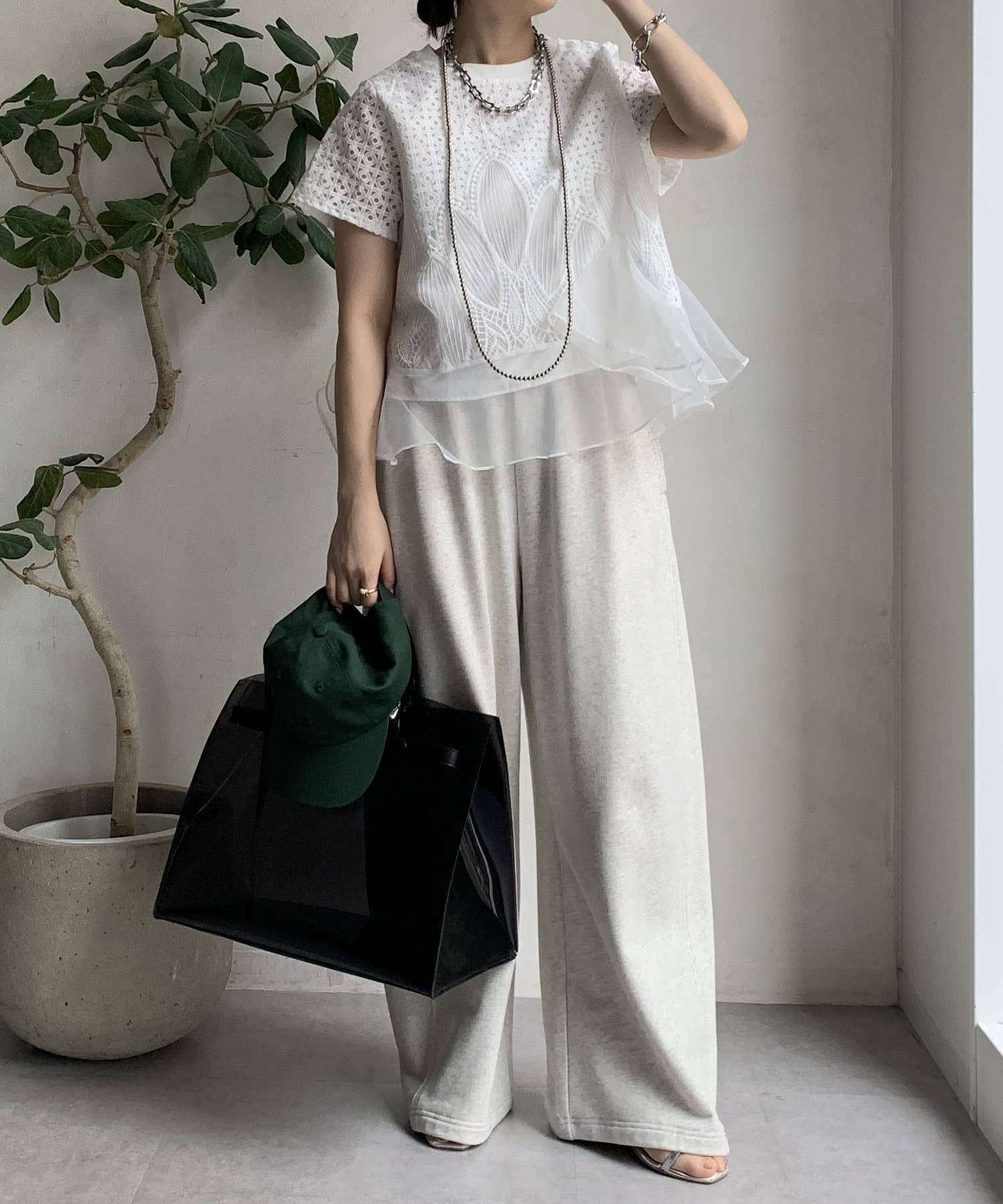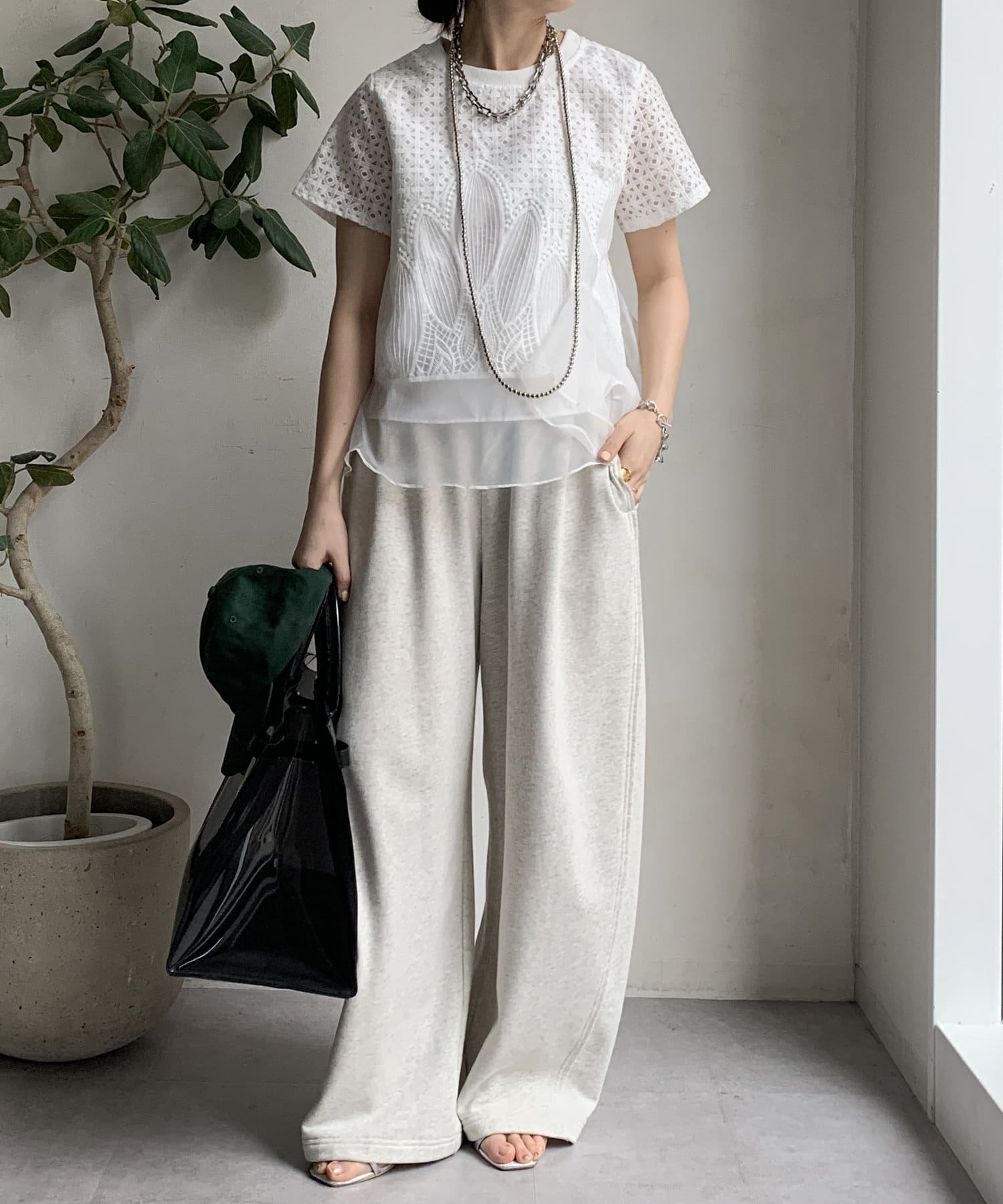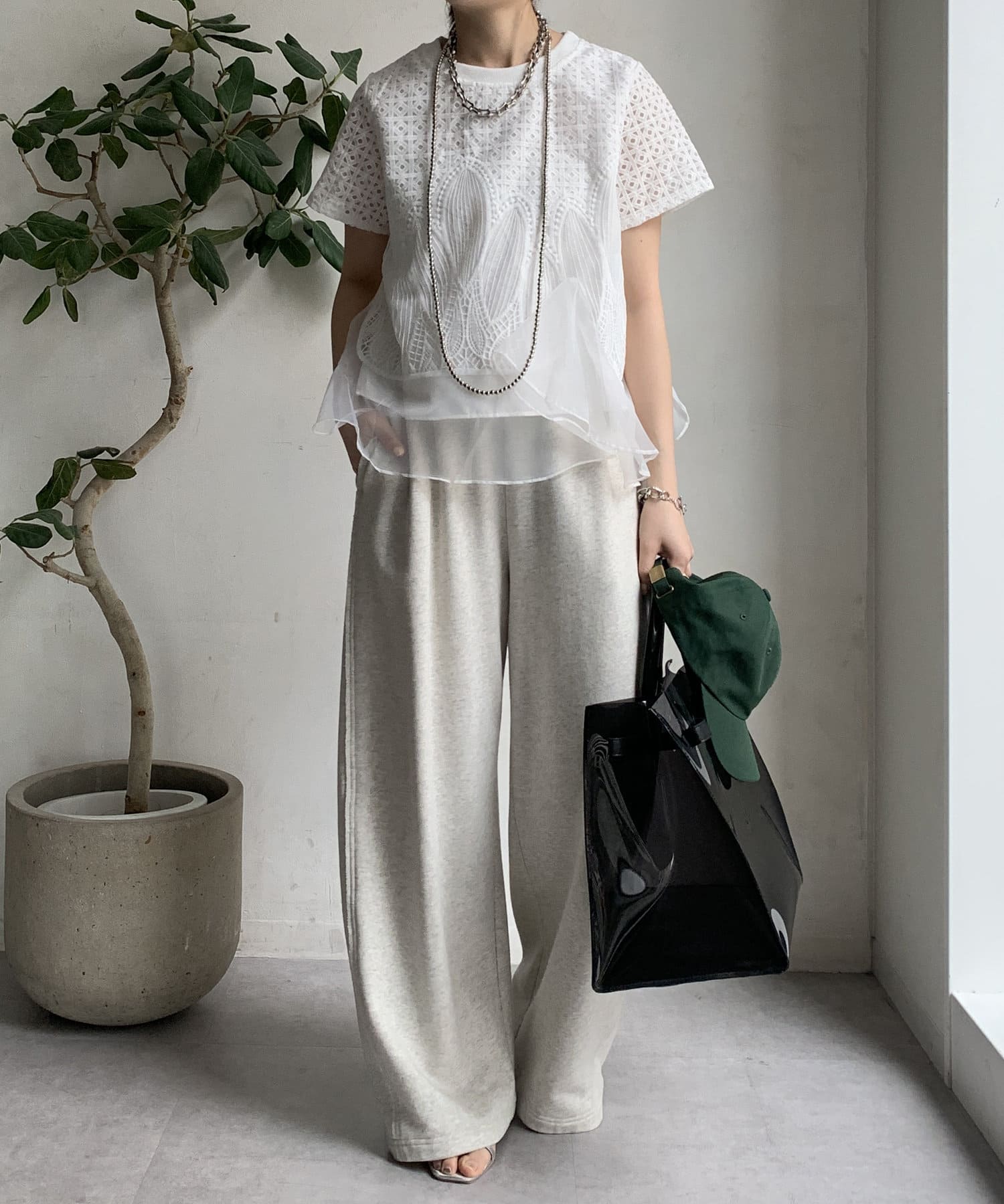 ワイドパンツやスウェット合わせも甘くなりすぎずおすすめです◎