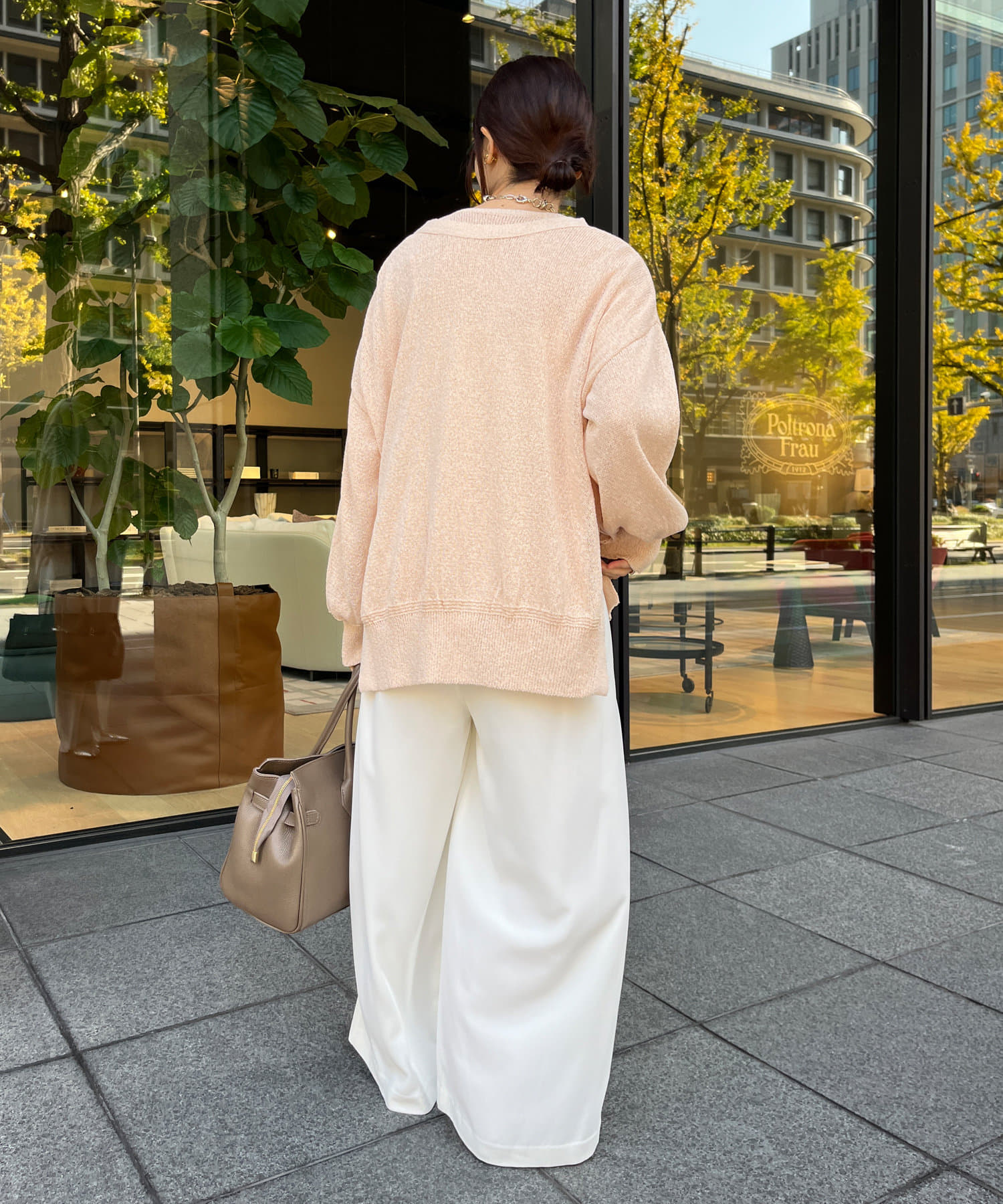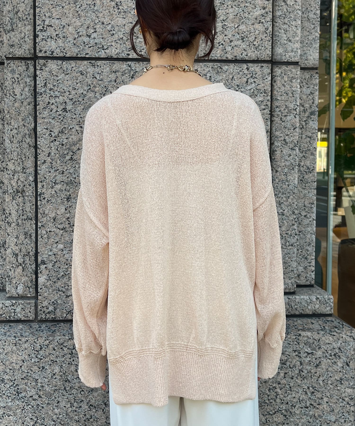 最大のポイントは、ボタンをフロントにしてカーデとして、ボタンをバックにしてプルオーバーとして着ていただける2way仕様。