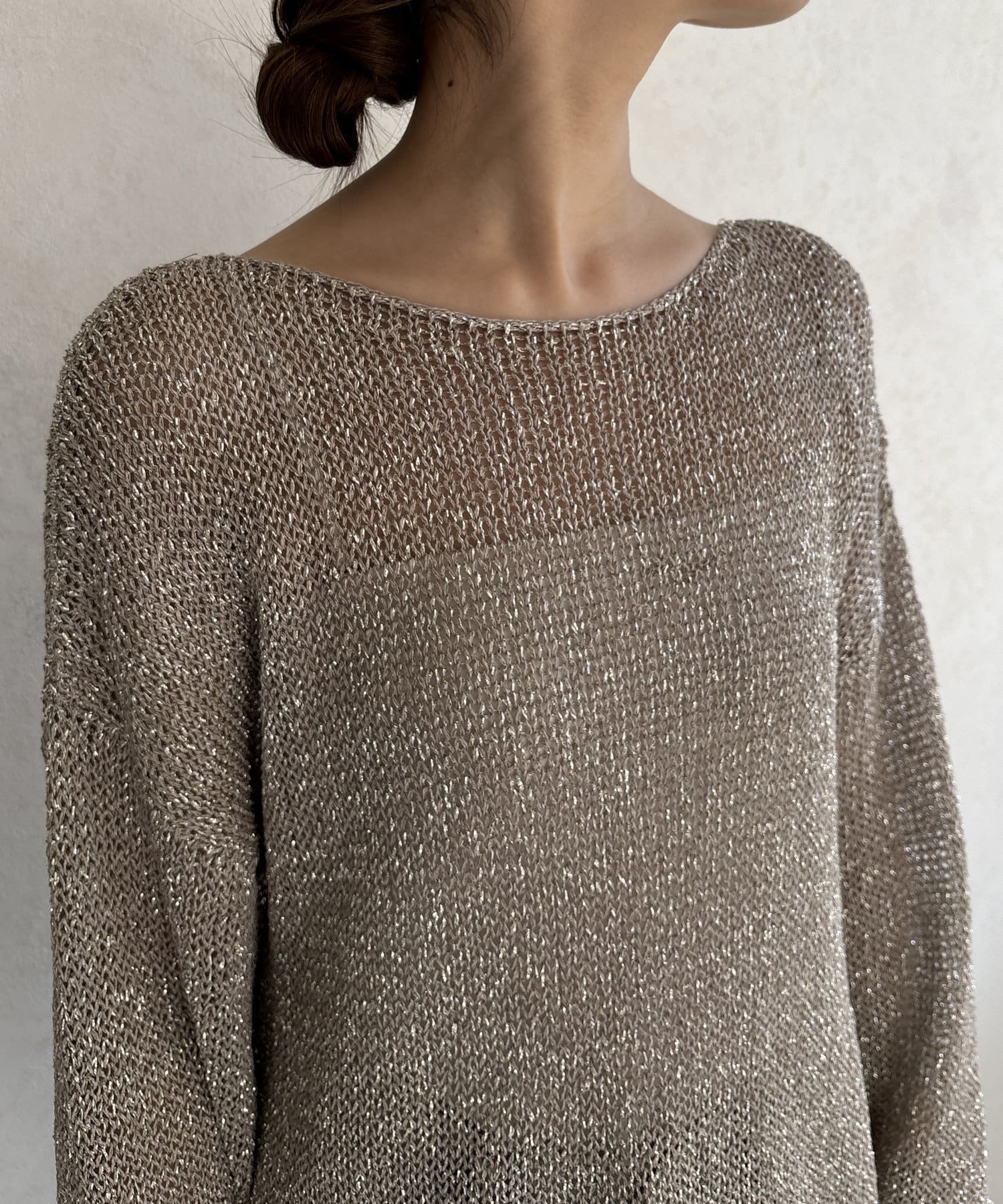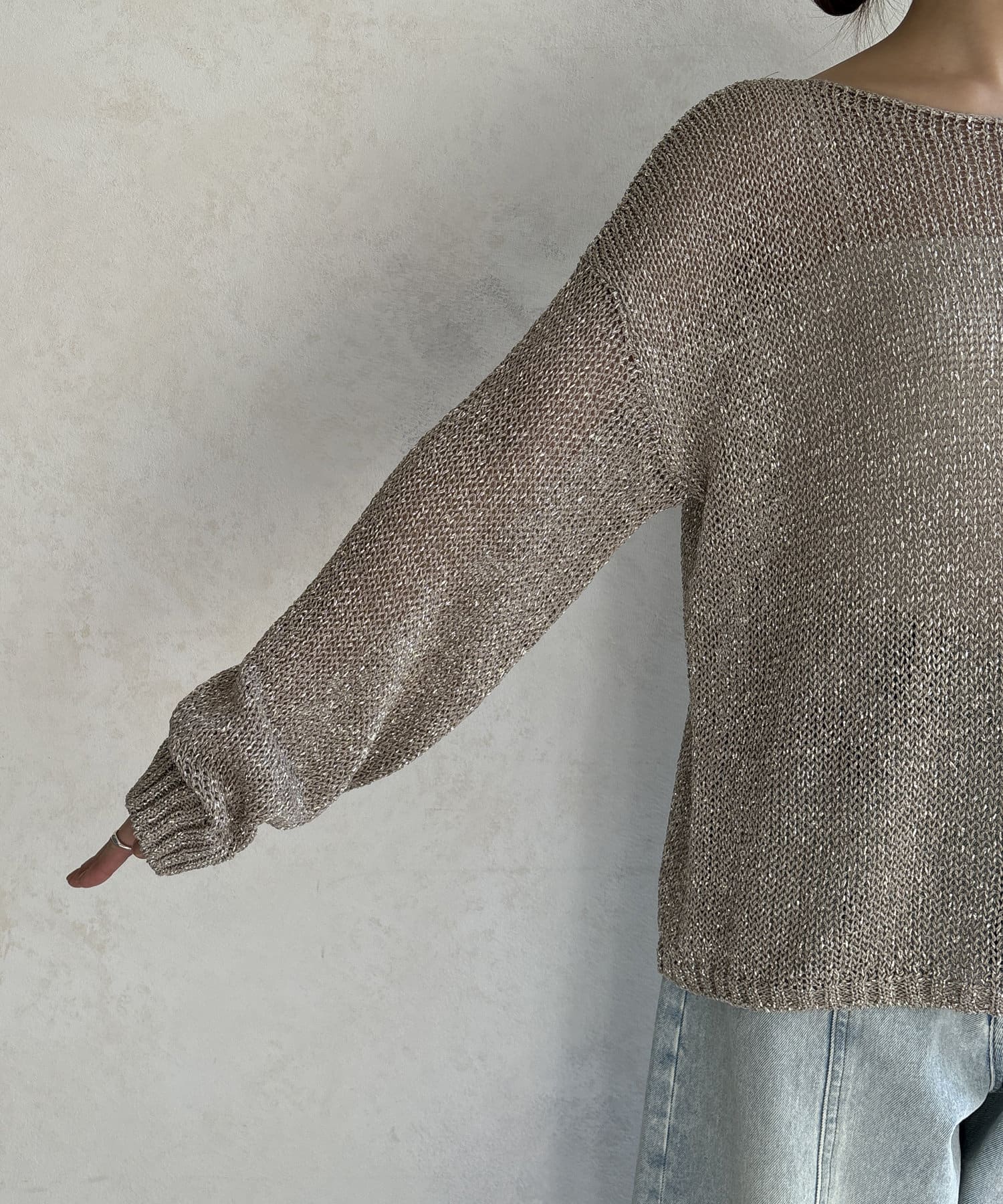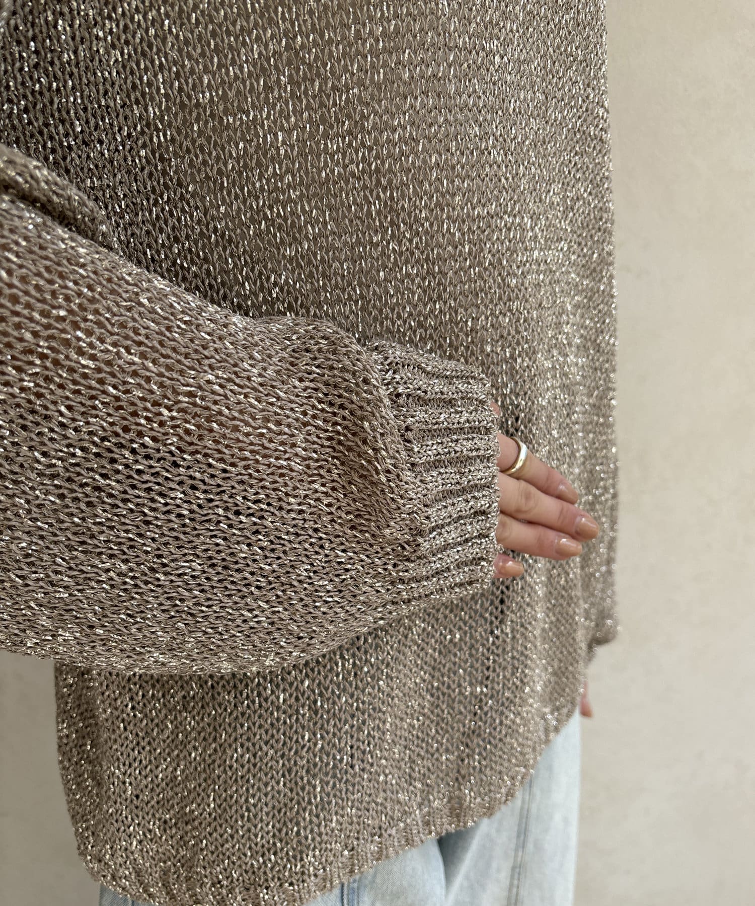 ラメ糸がアクセントになってくれるメッシュニット