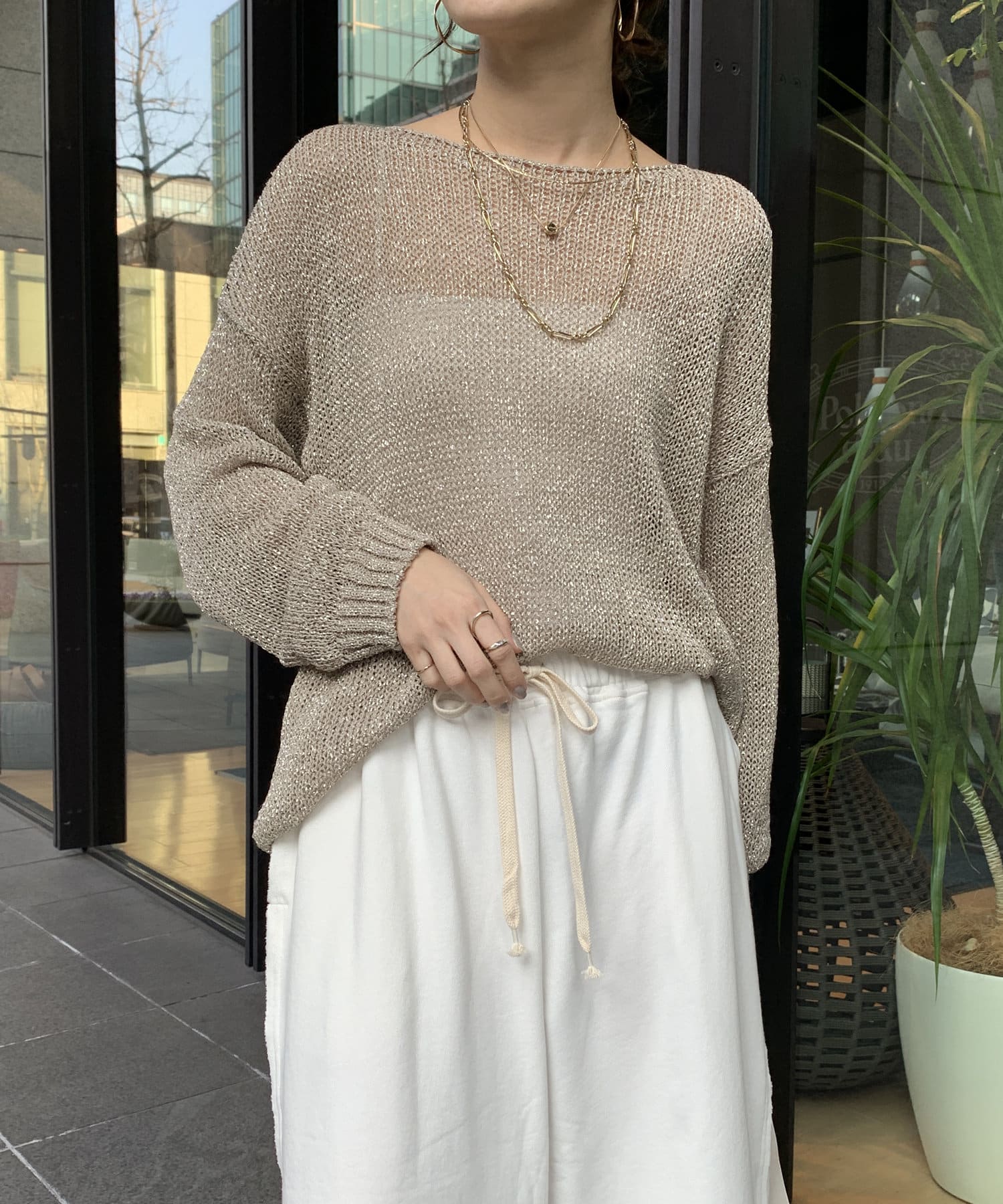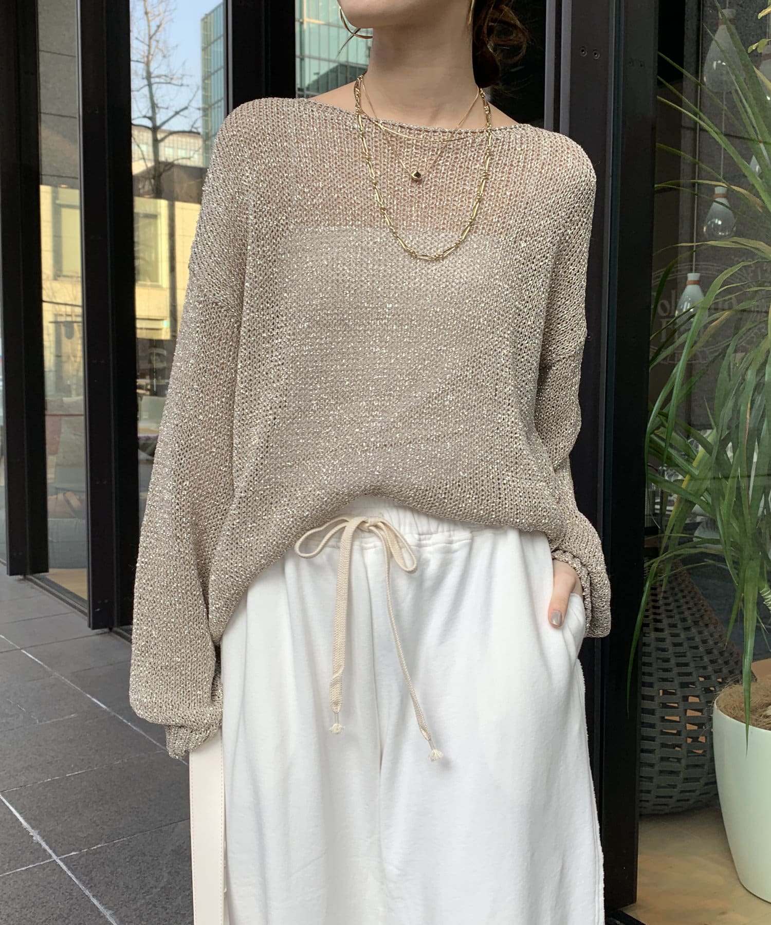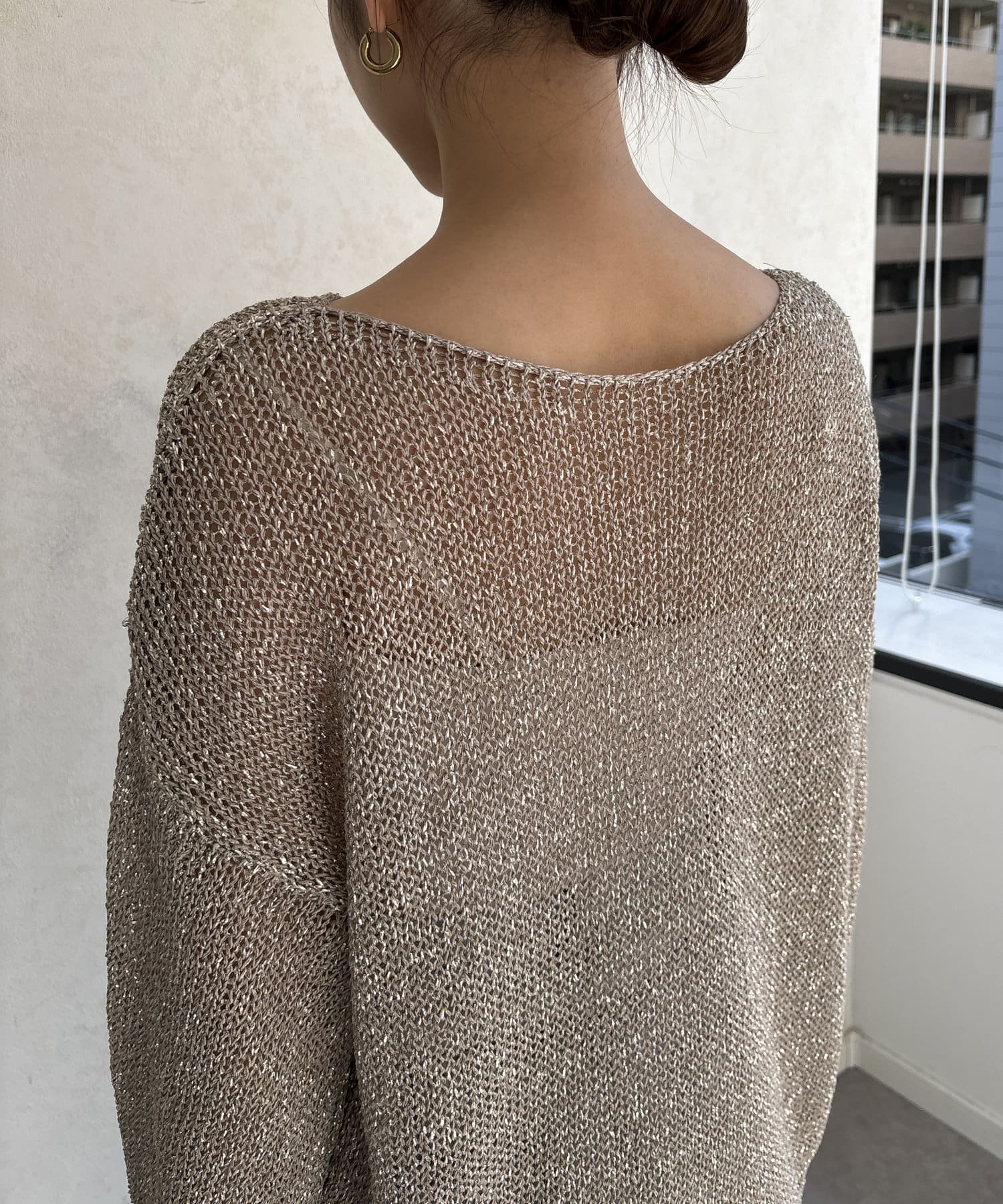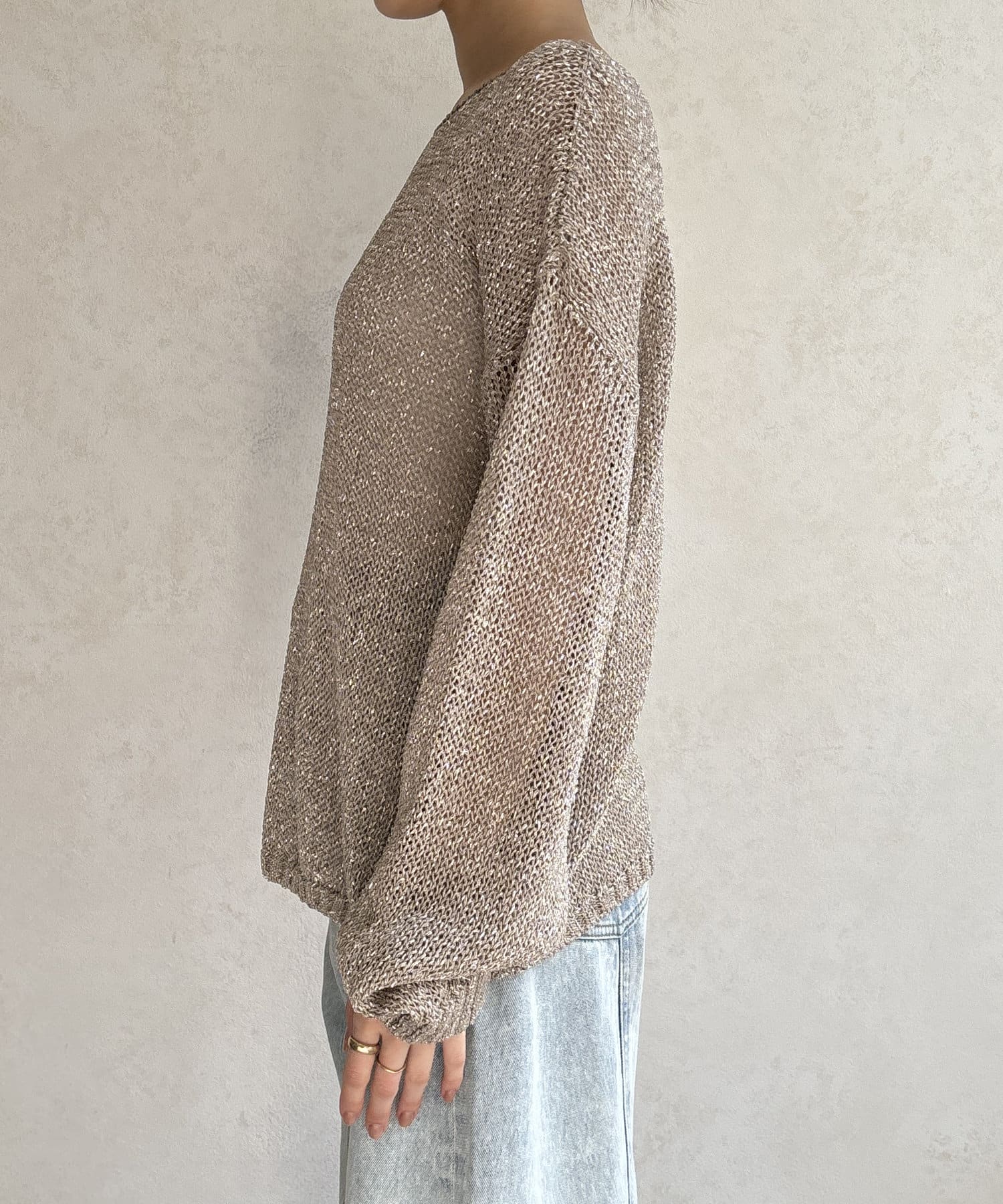 ラメ糸がアクセントになってくれるメッシュニット