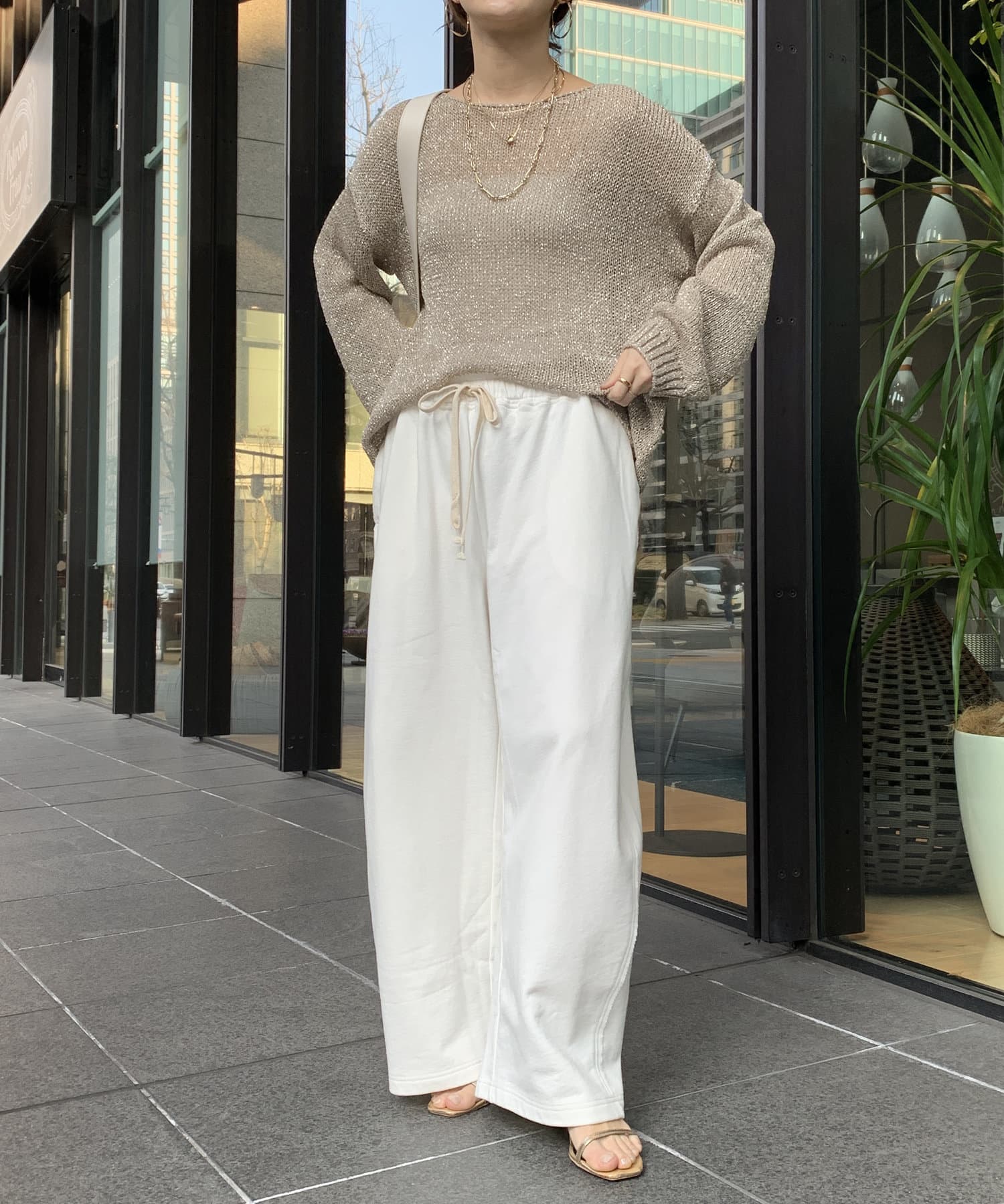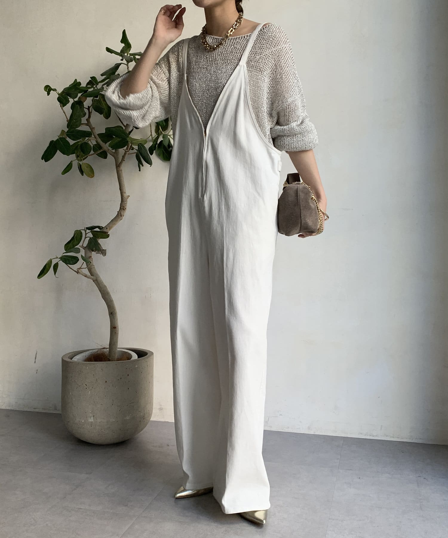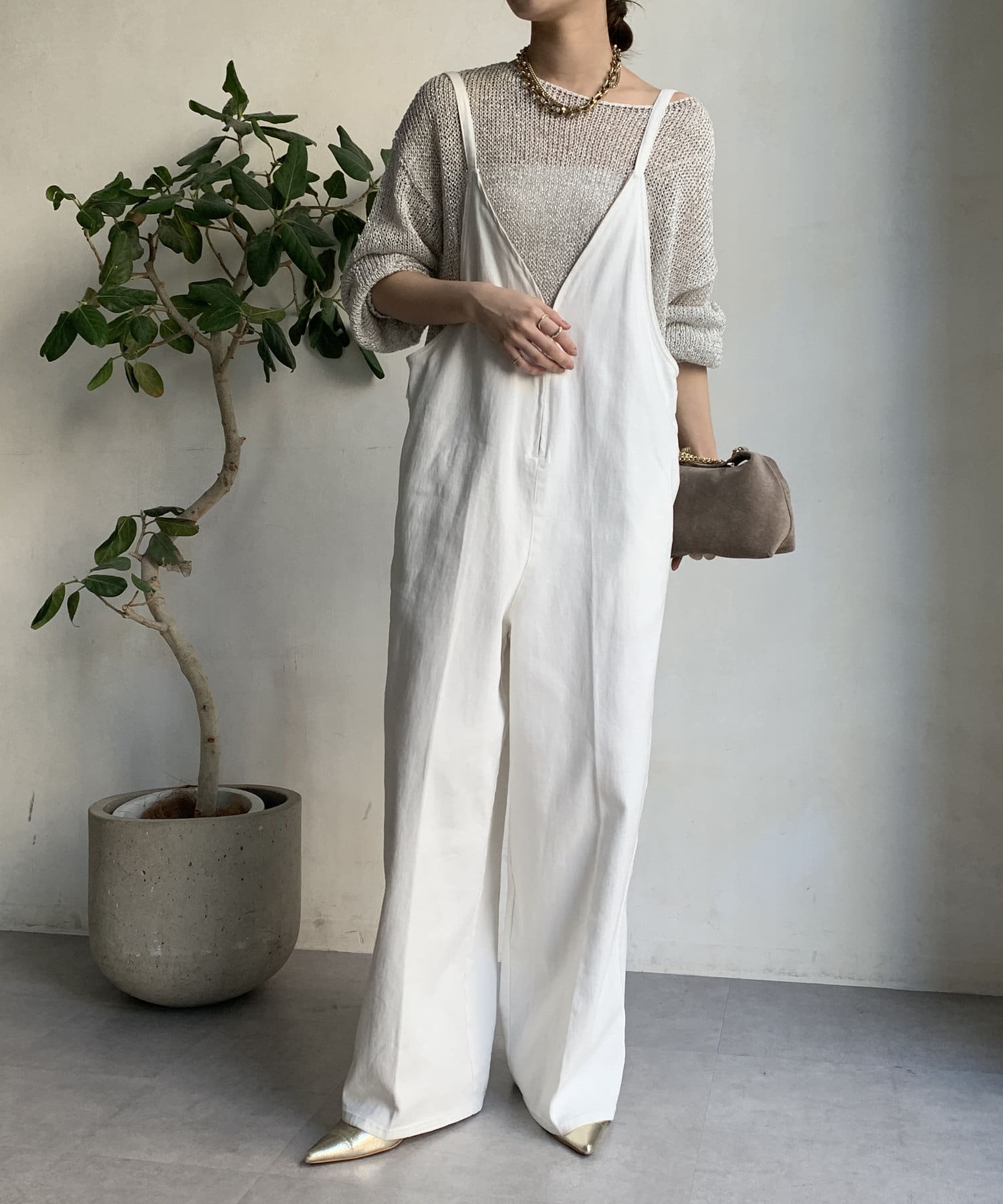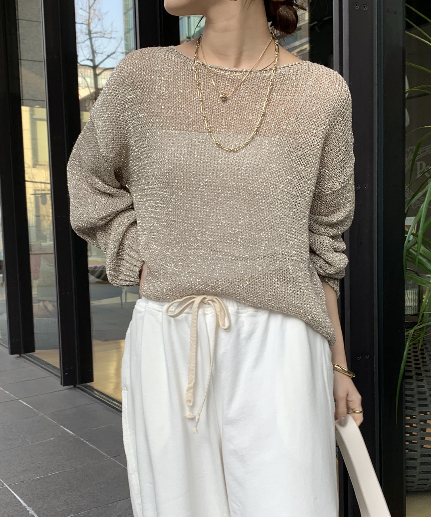 ネックラインはゆるっと余裕感のあるデザインに。