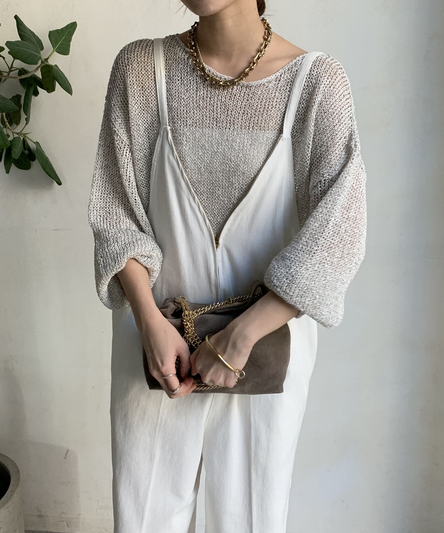 透け感があるため、お手持ちの様々なキャミやタンクとレイヤードして、着回しを楽しんでいただけますよ。