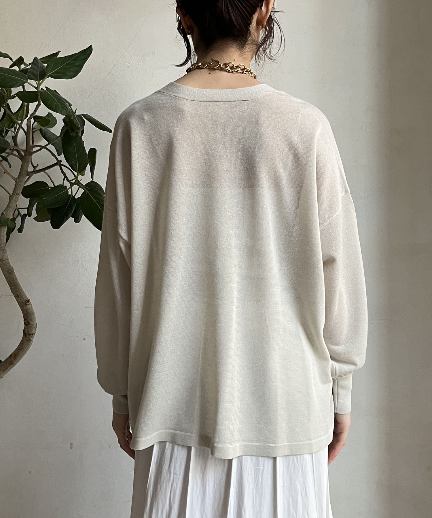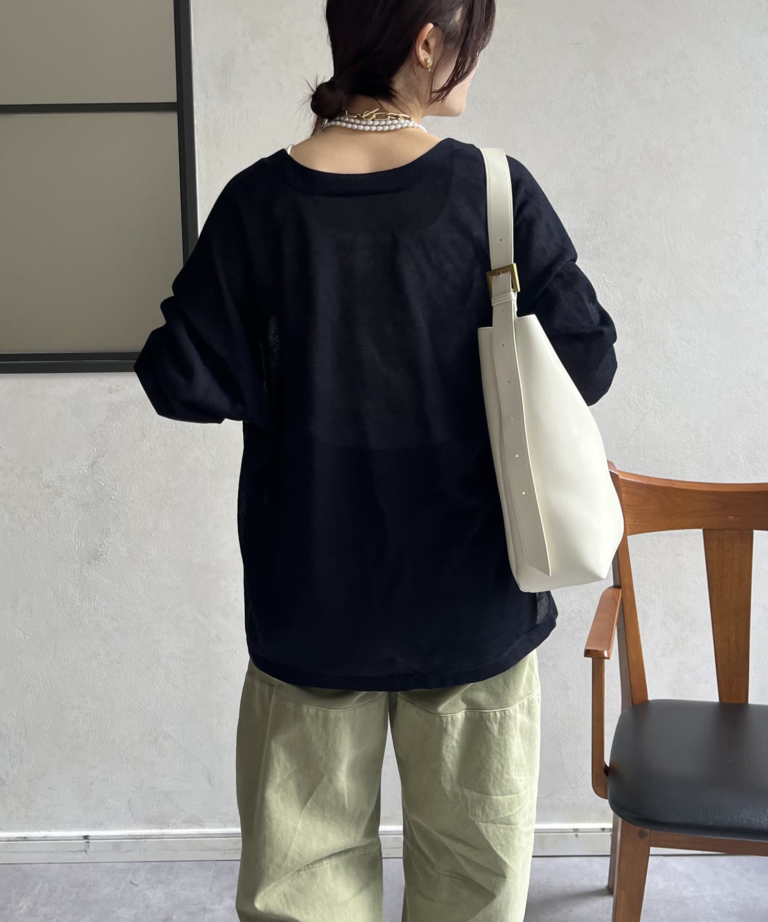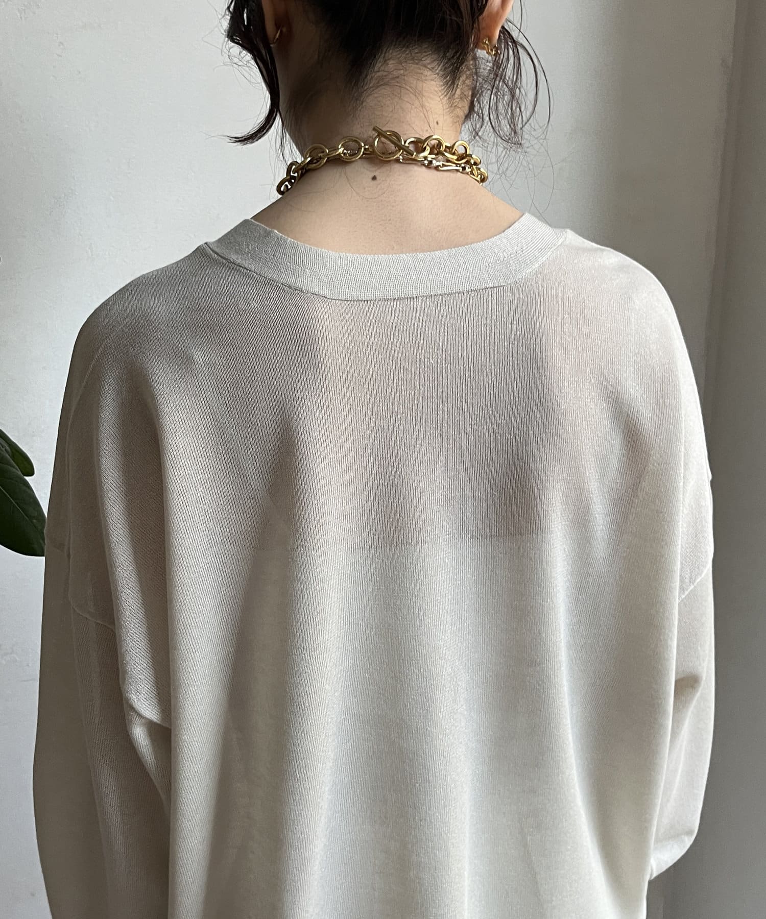Vネックデザインが顔周りをすっきりと見せてくれます。