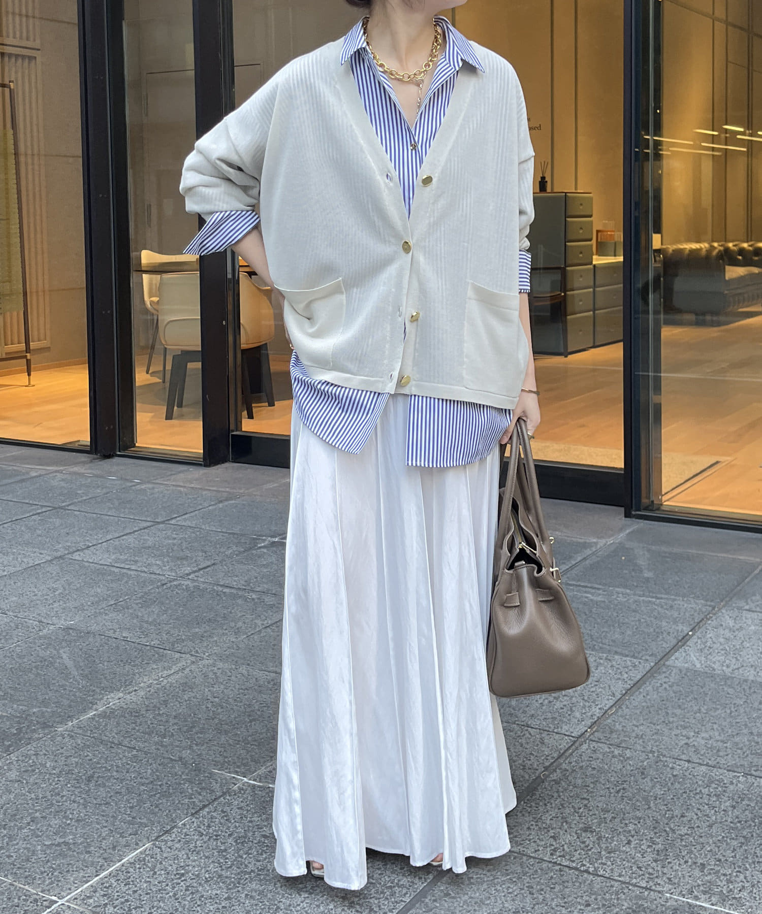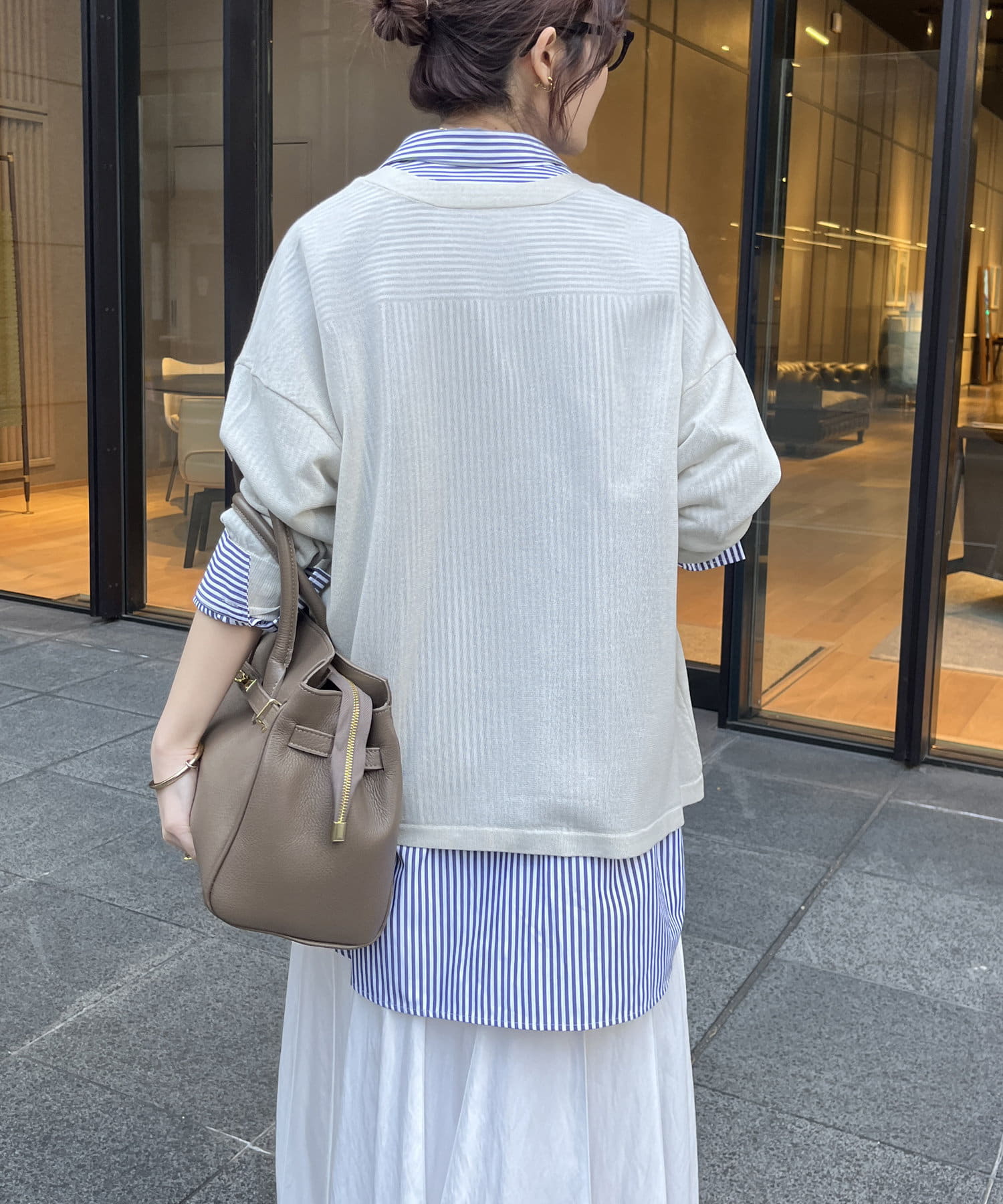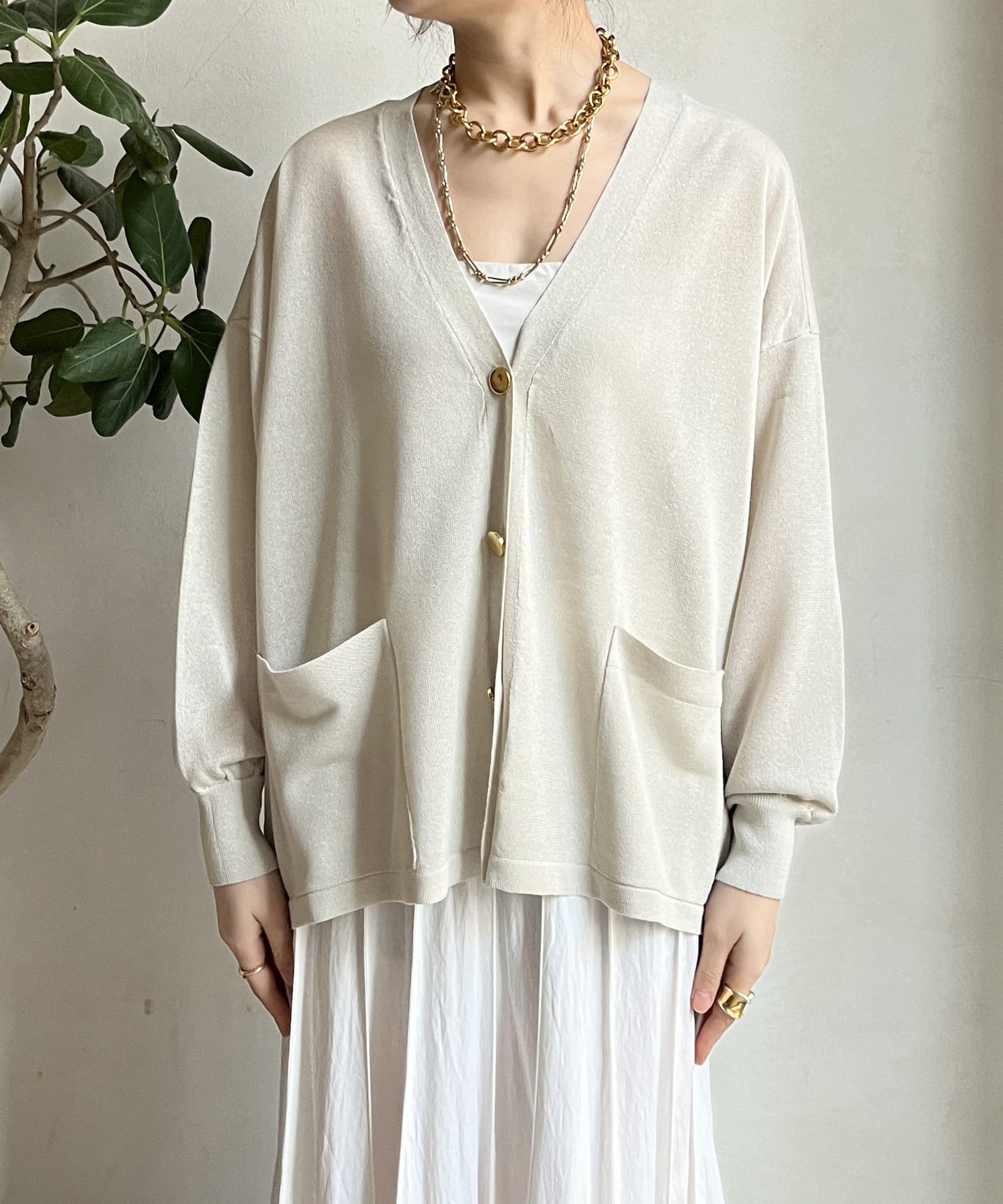 すっきりと見せてくれるVネックカーディガンの定番シルエットは、様々なスタイルに馴染みます。