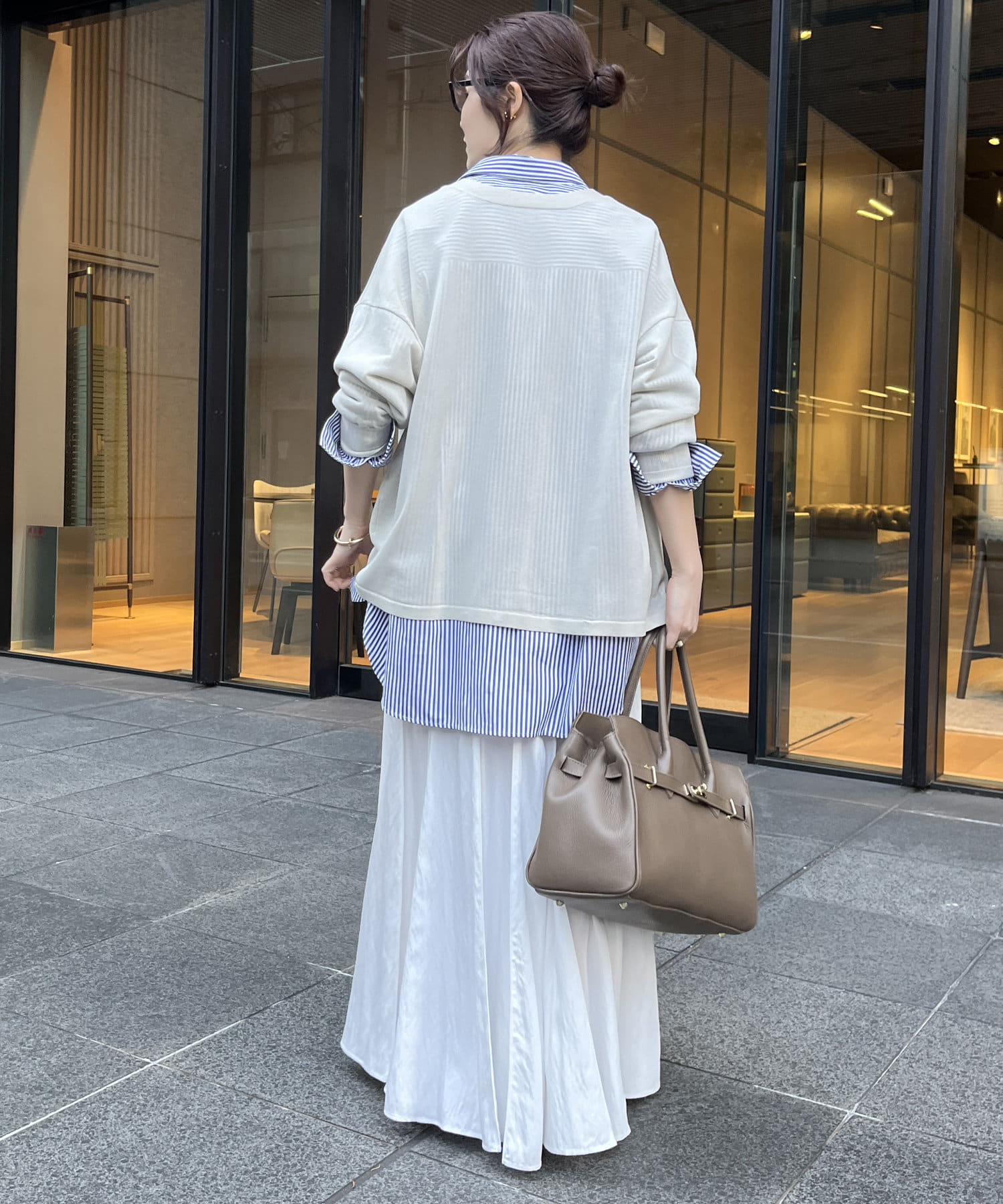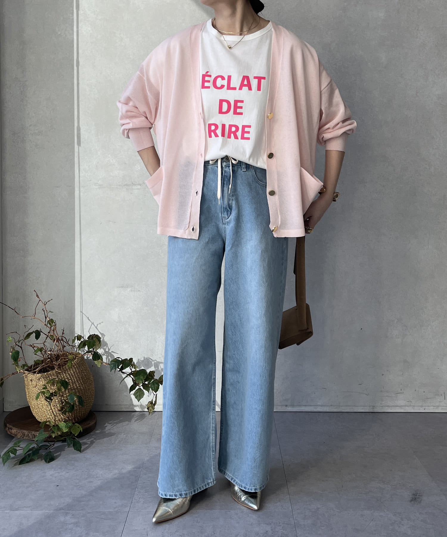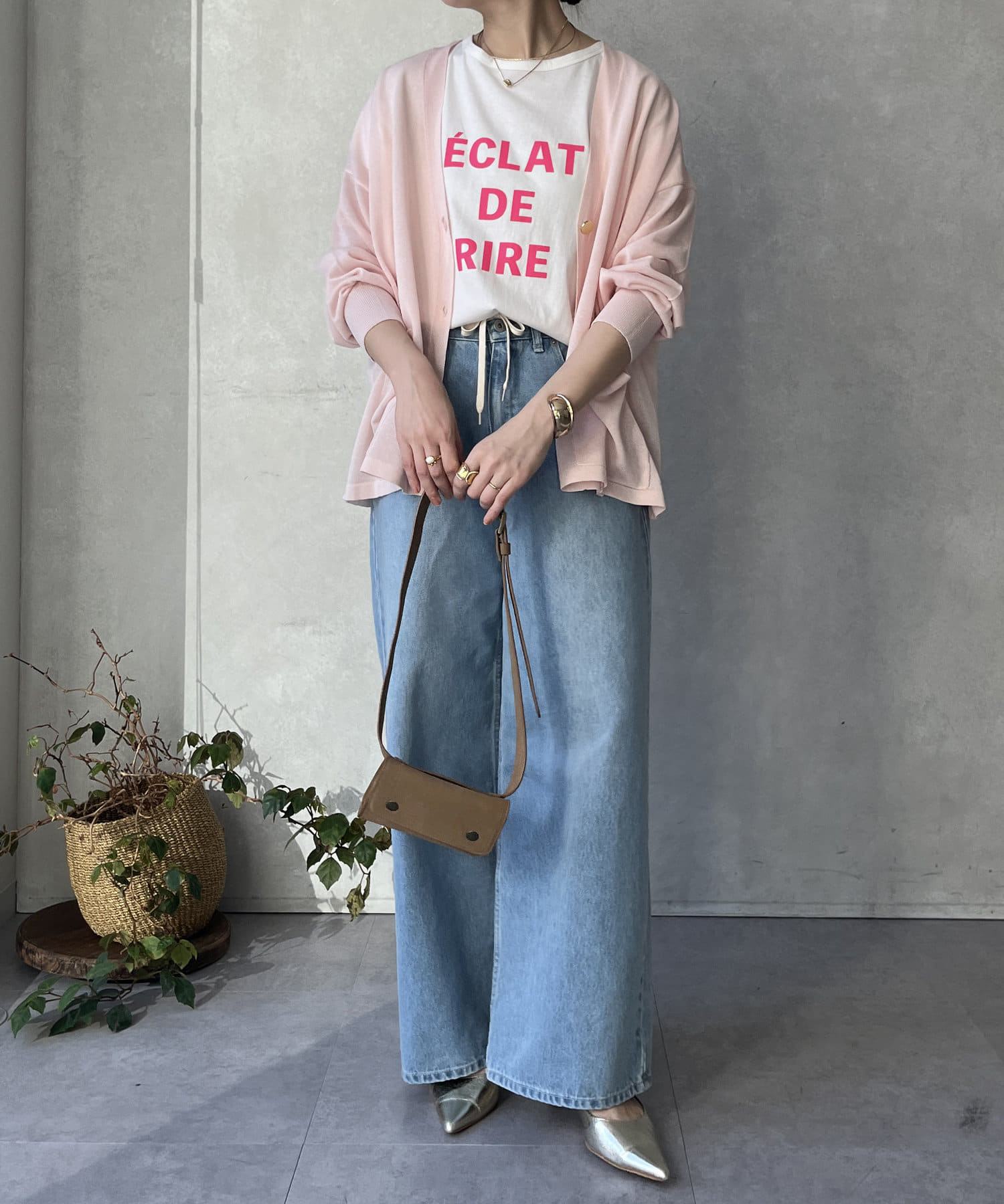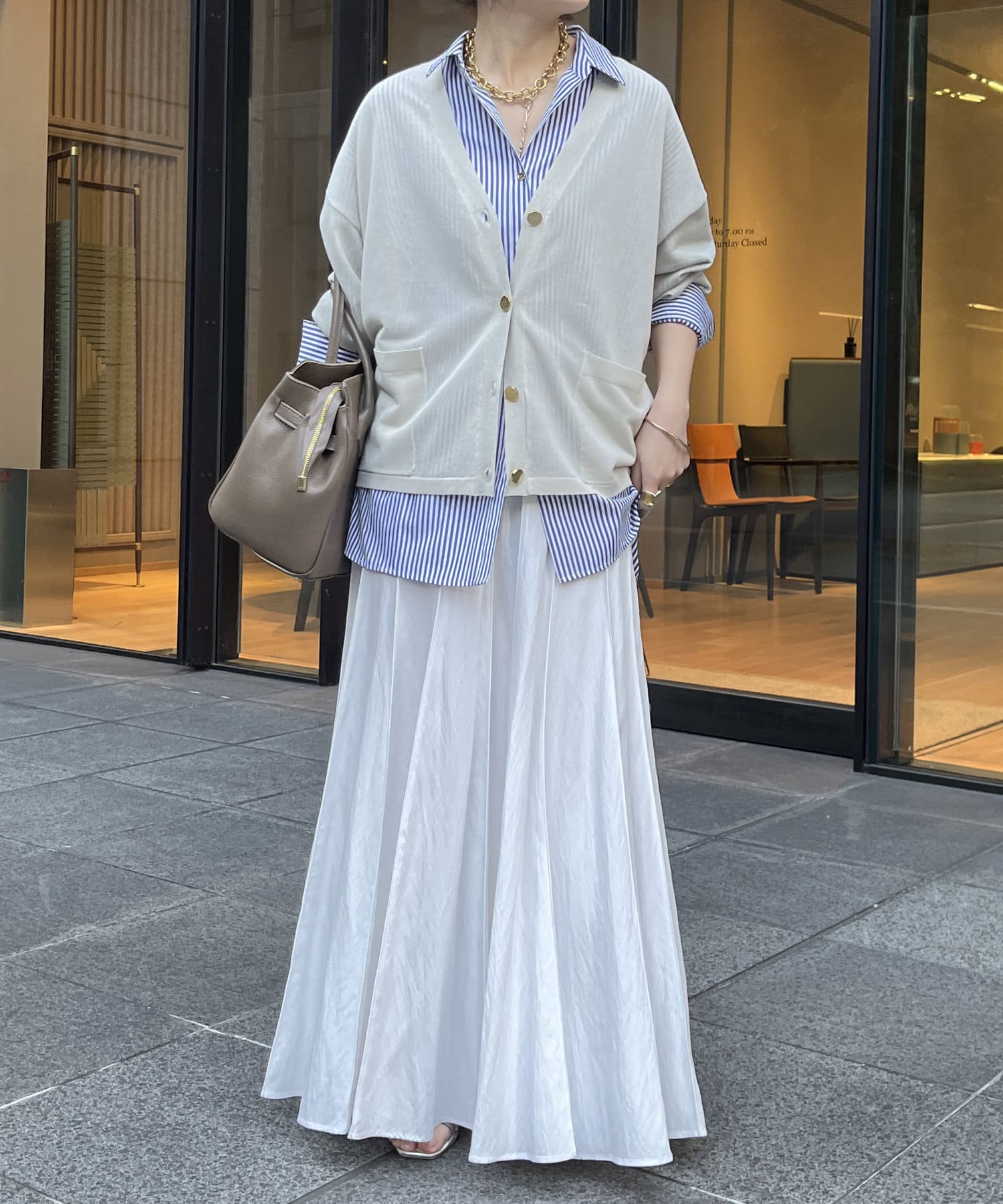 すっきりと見せてくれるVネックカーディガンの定番シルエットは、様々なスタイルに馴染みます。