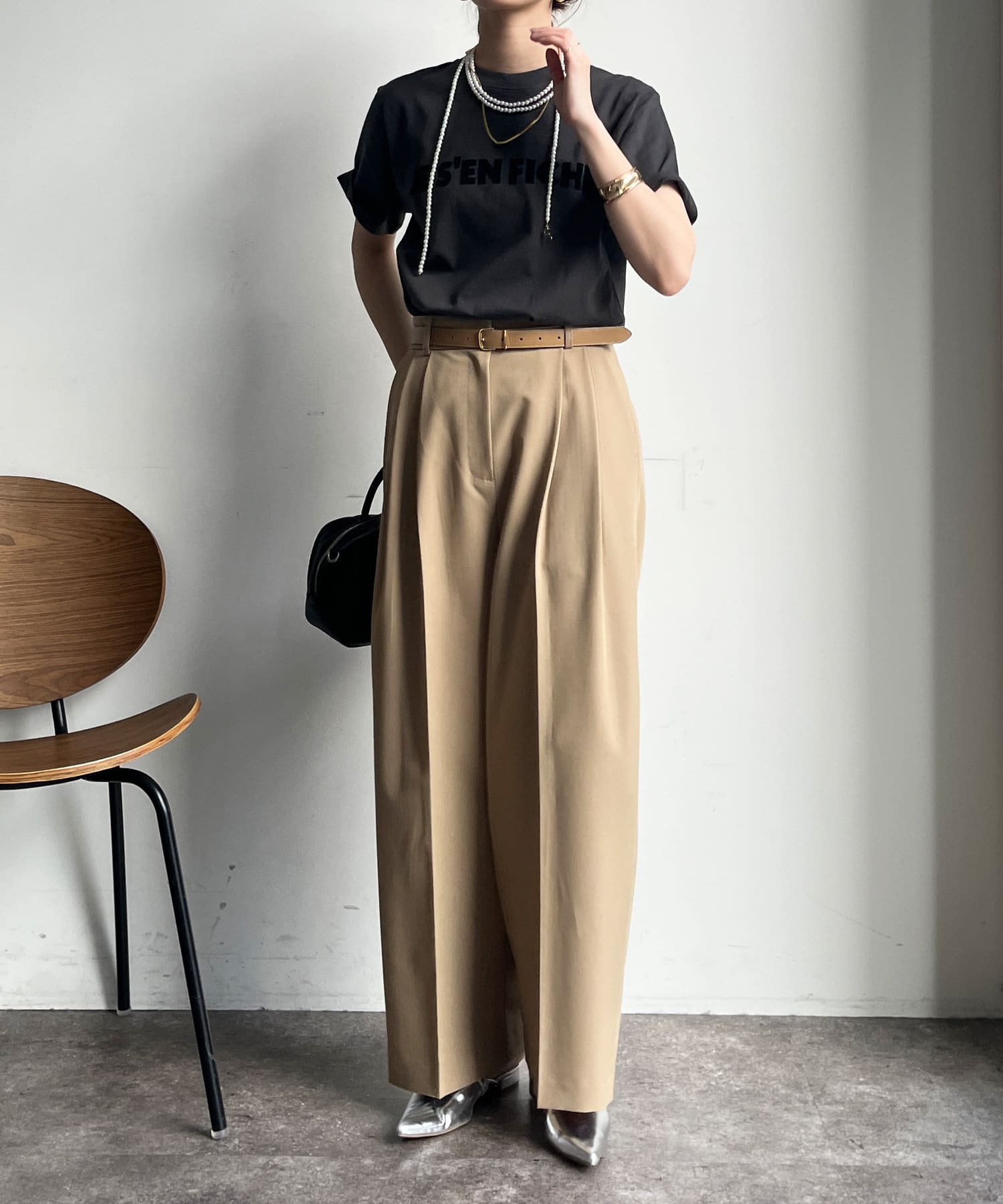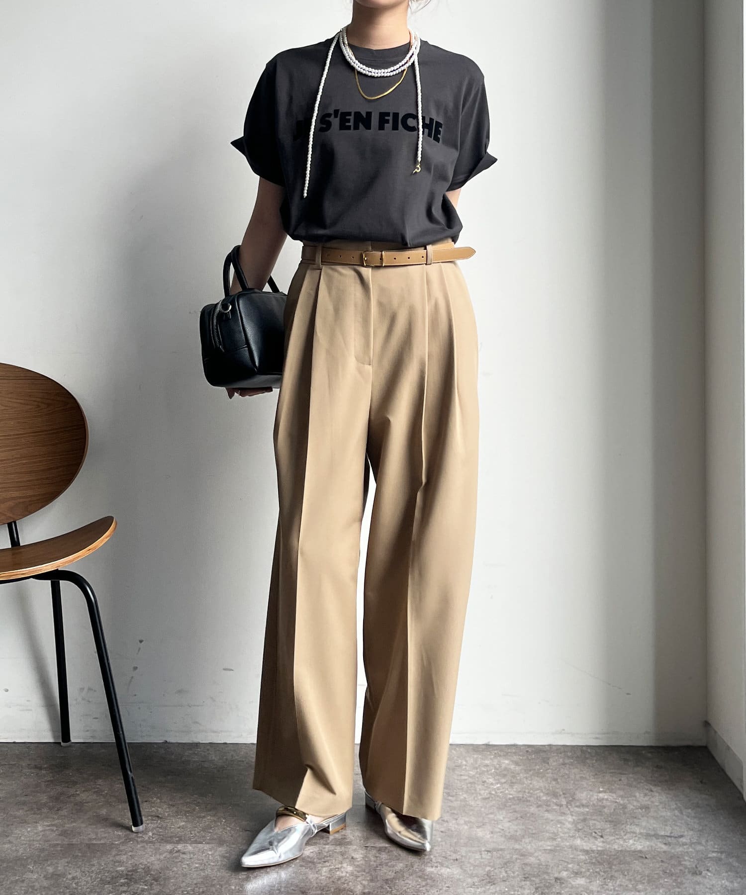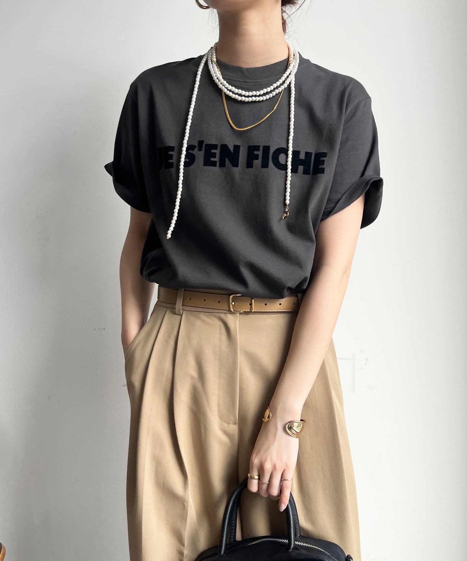 ロゴの何とも言えない可愛さと、コンパクトなサイズ感がカジュアルになり過ぎず、大人なスタイリングにもマッチして着ていただけます。