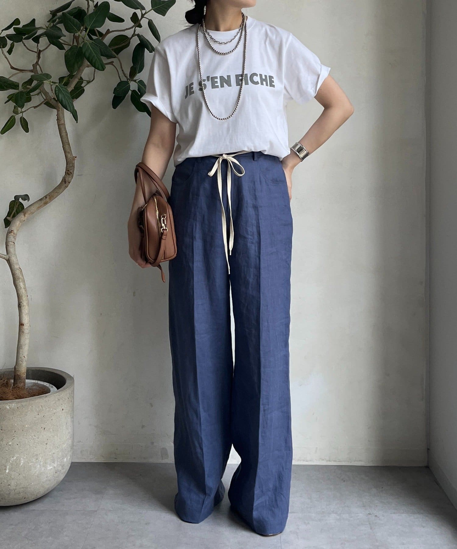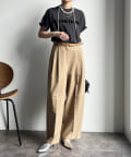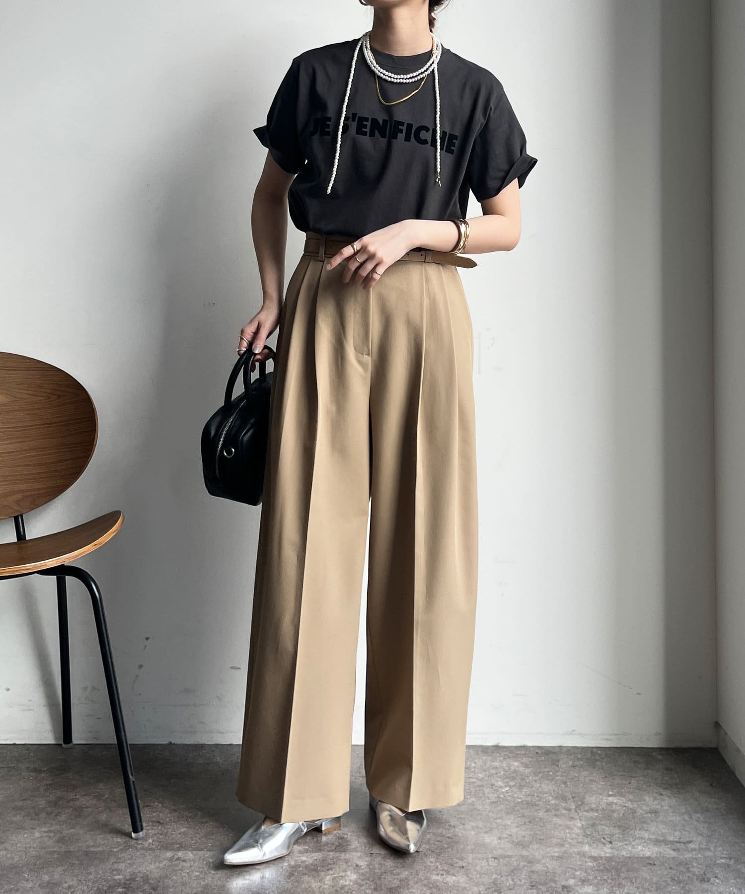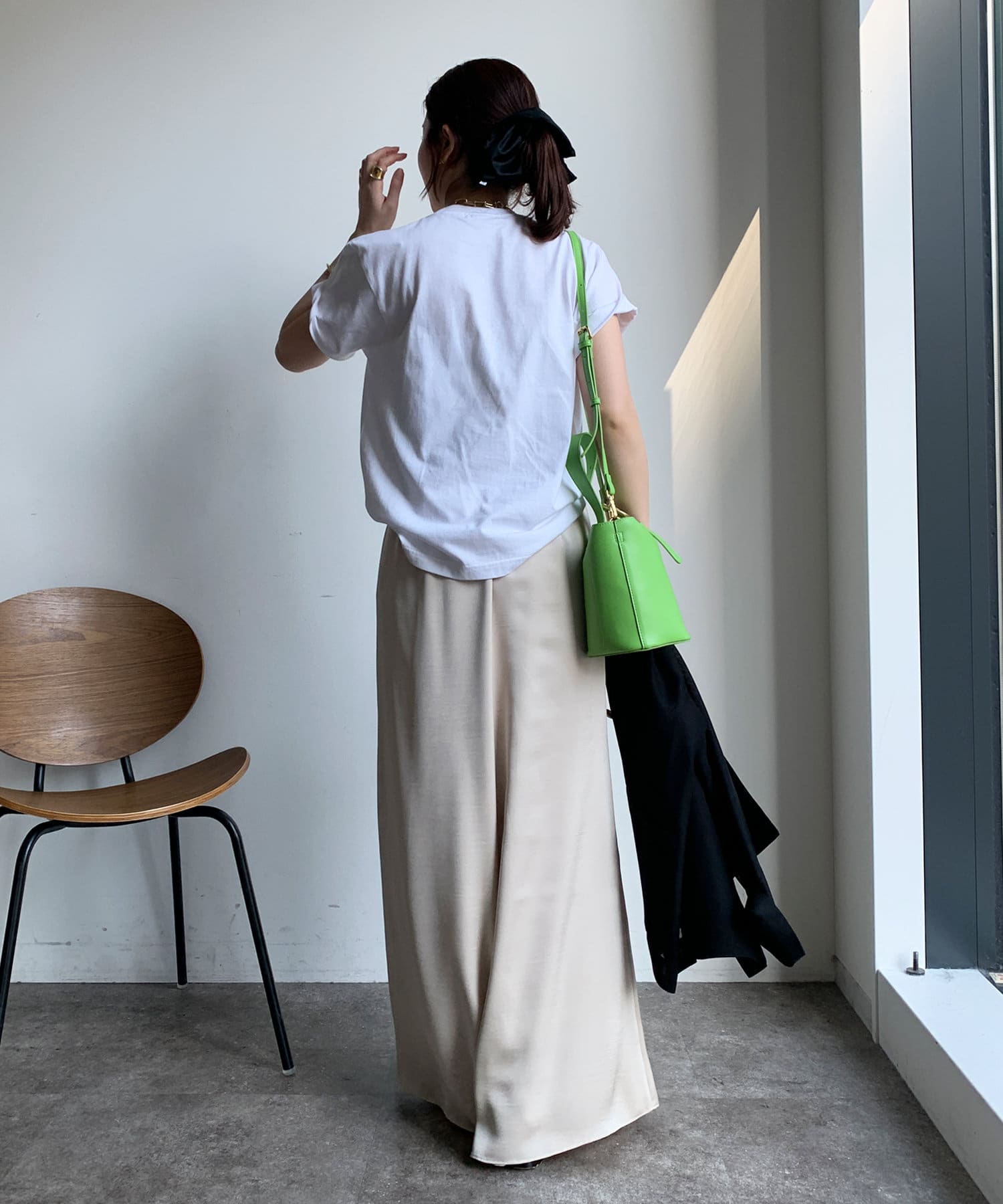 ロゴの何とも言えない可愛さと、コンパクトなサイズ感がカジュアルになり過ぎず、大人なスタイリングにもマッチして着ていただけます。