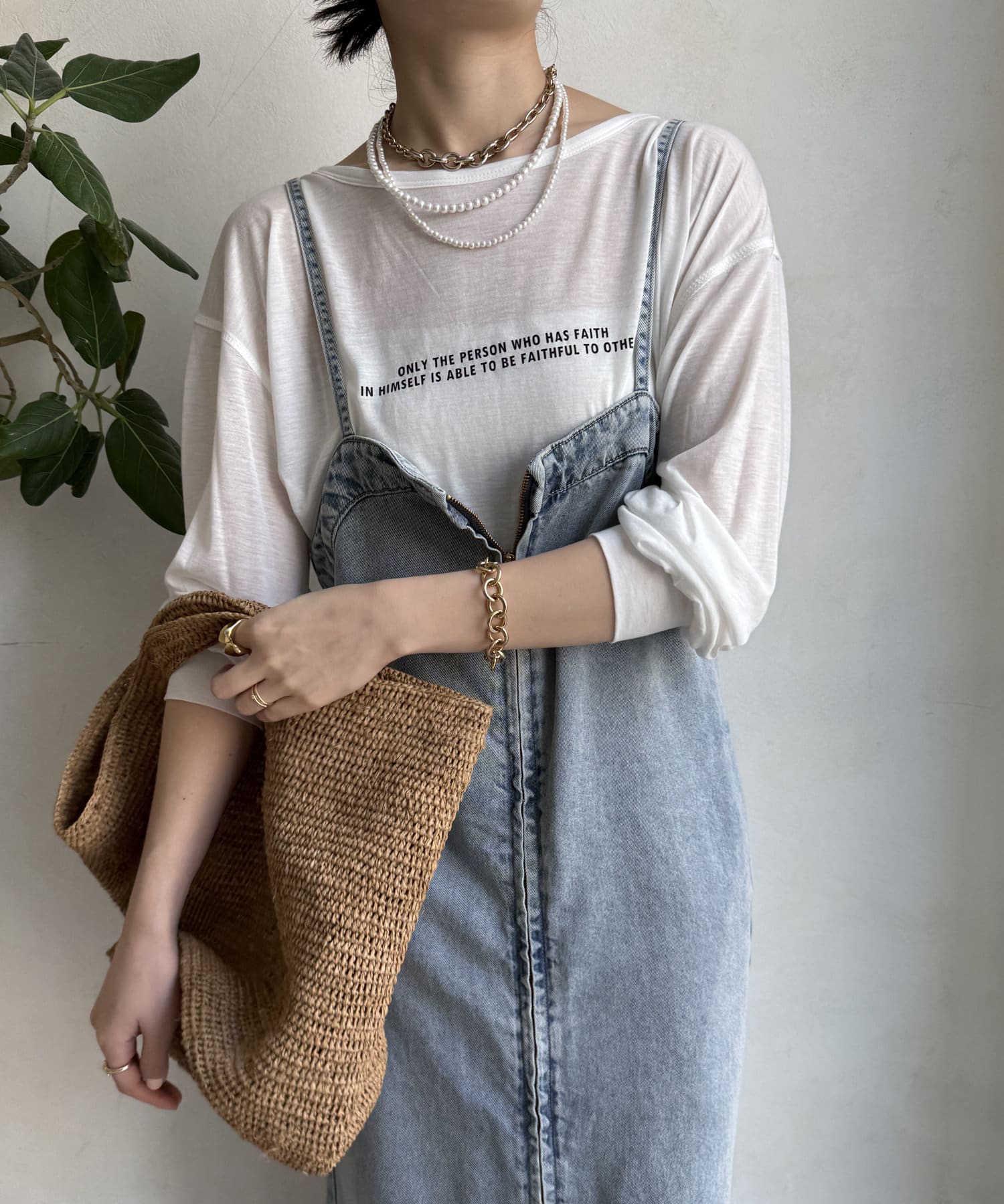 キャミソールやタンクトップをインナーに1枚で着るのはもちろん、