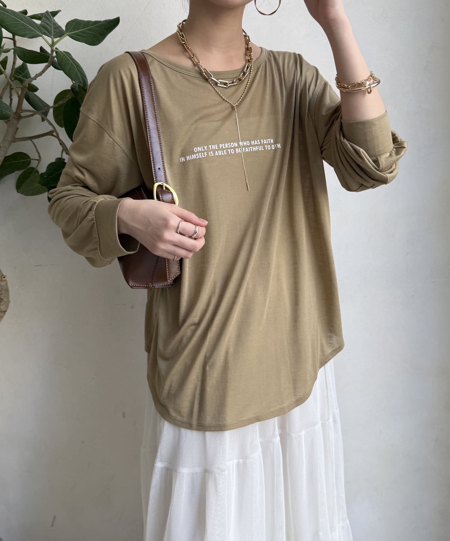 ほんのりとシアー感のある素材とこだわったロゴがポイントの1枚。