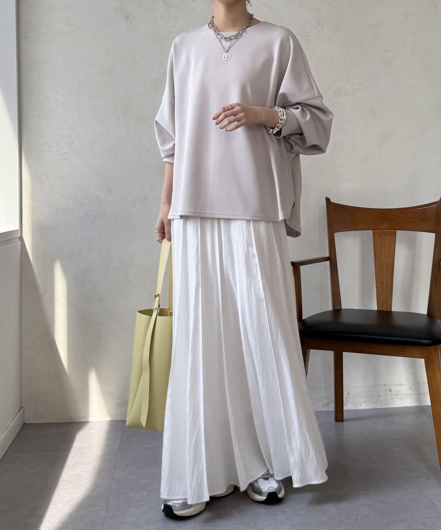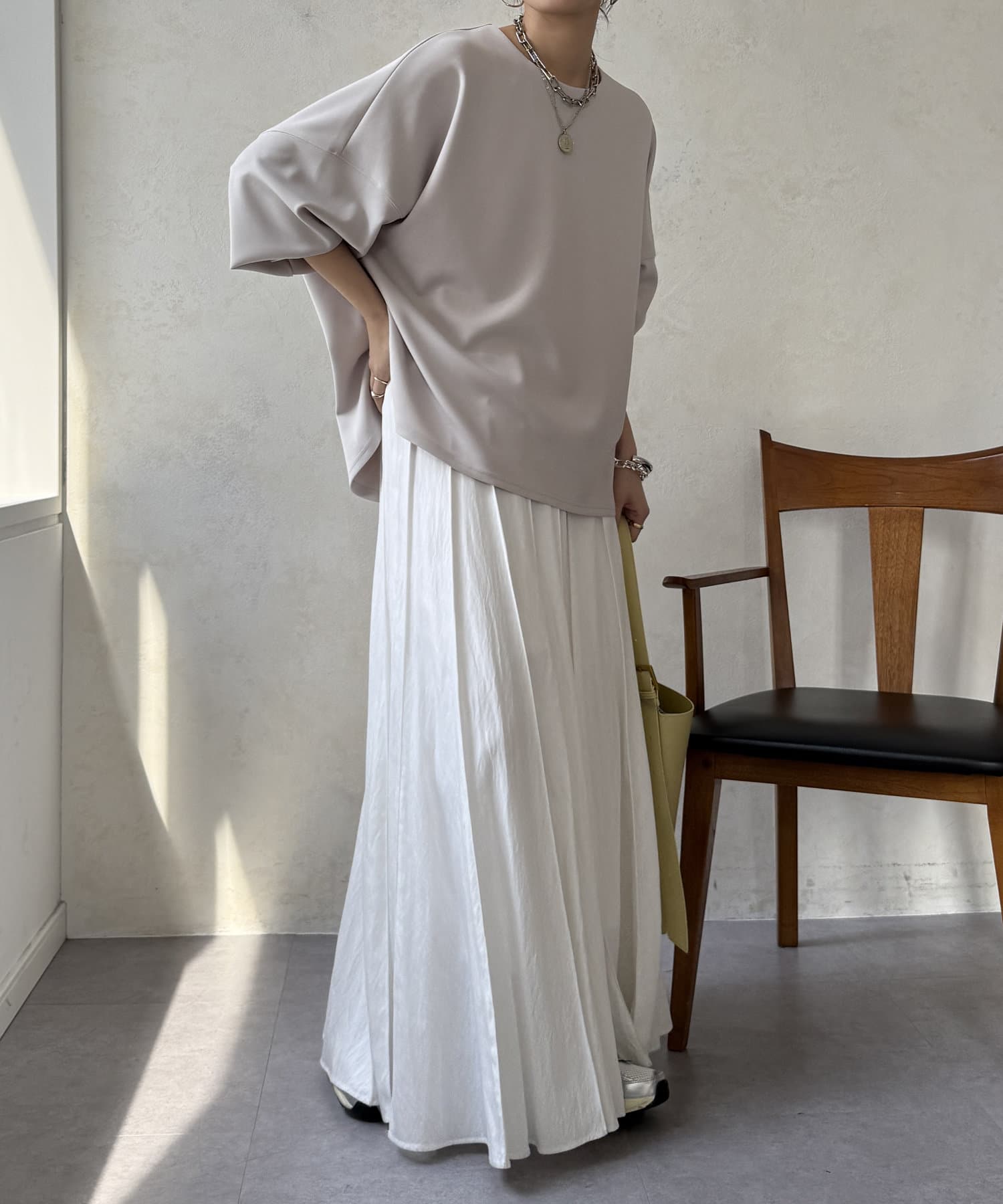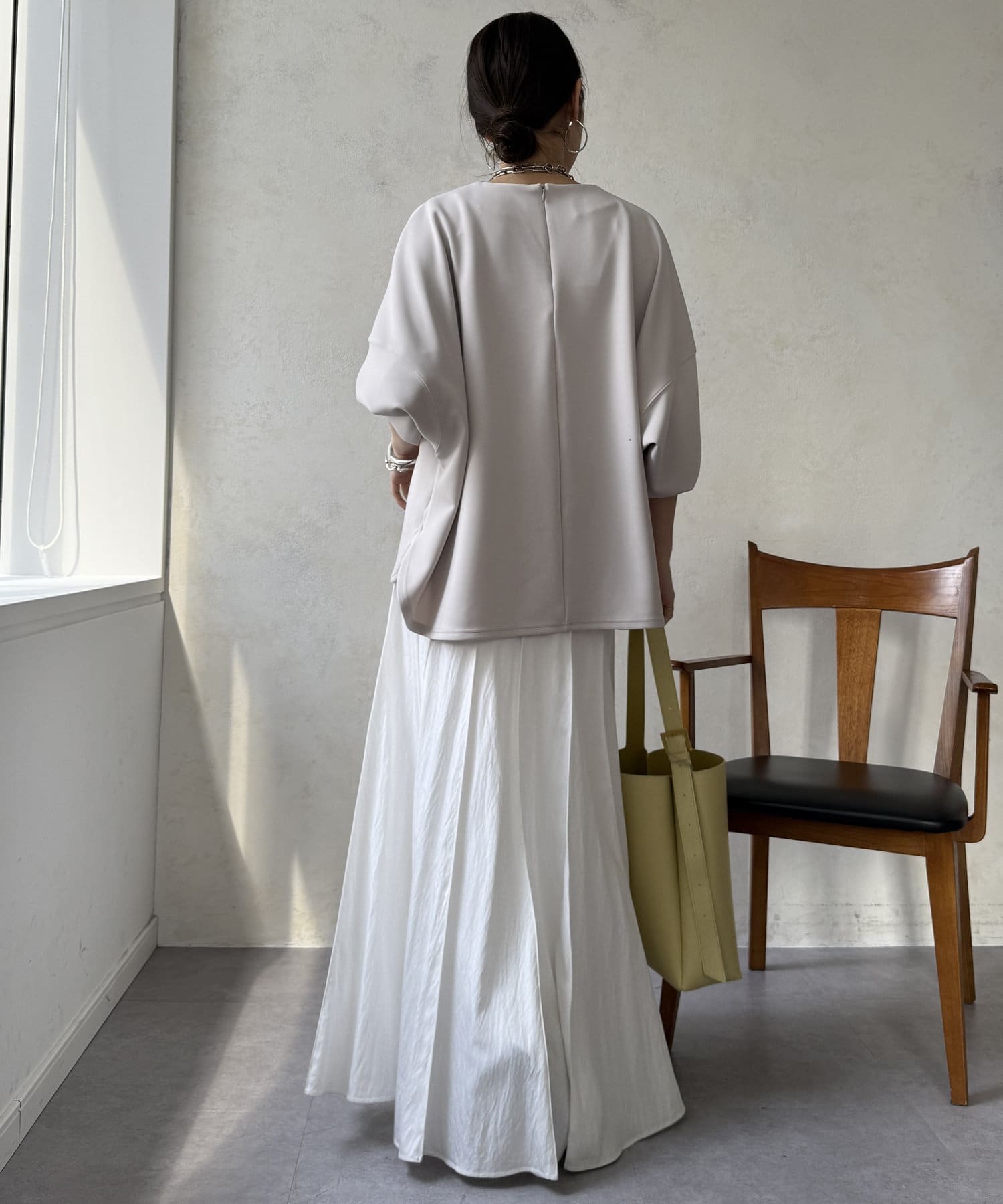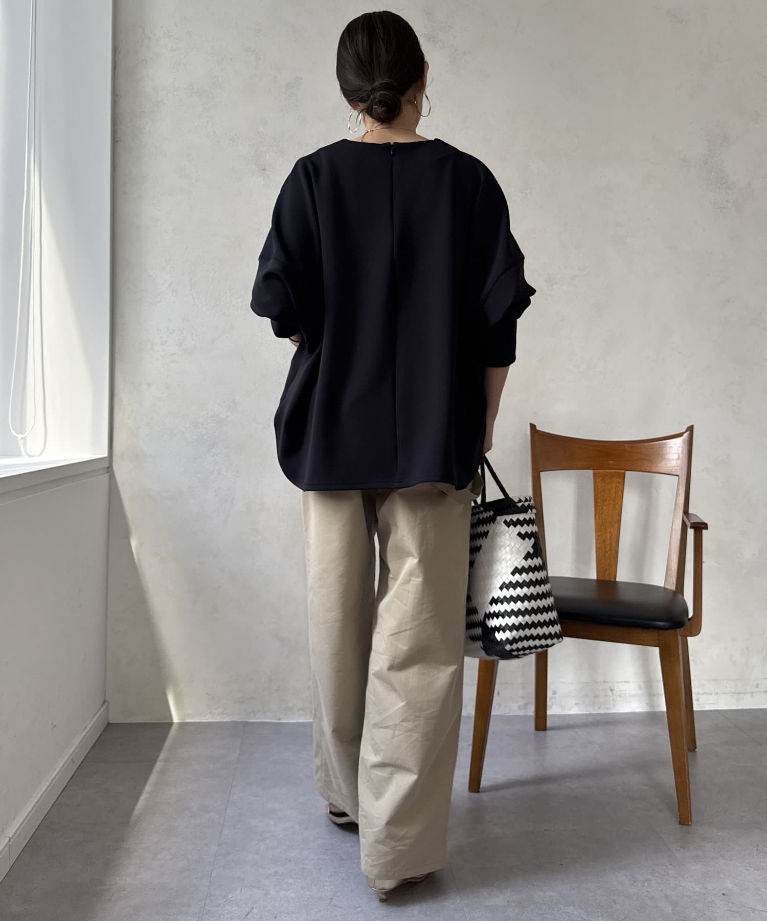 程よくハリのある素材が立体感のあるシルエットで体型カバーにも!