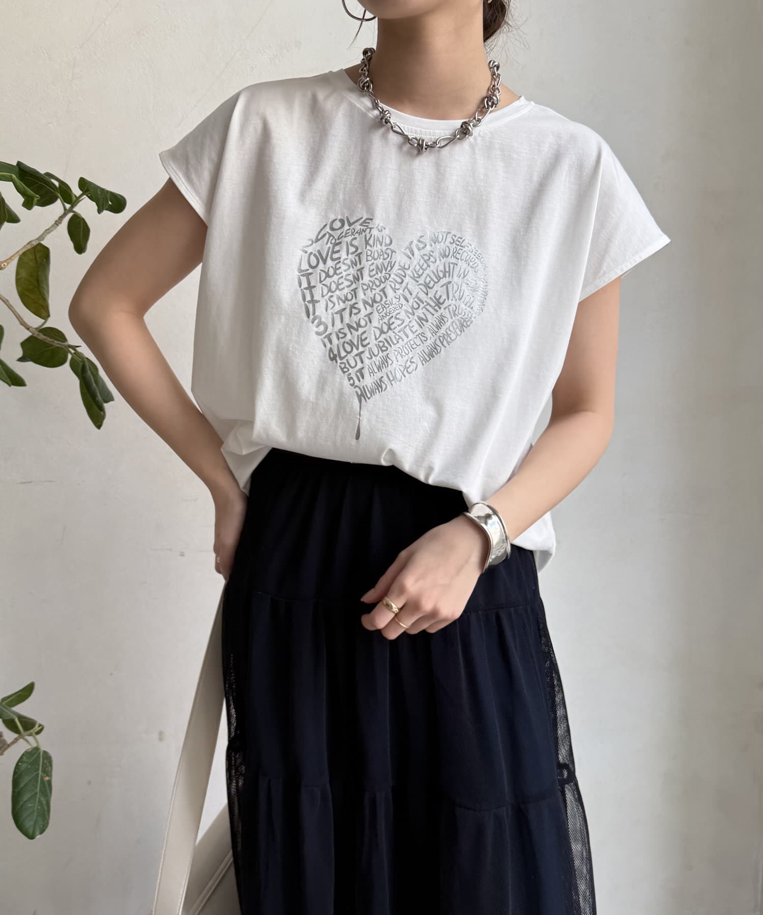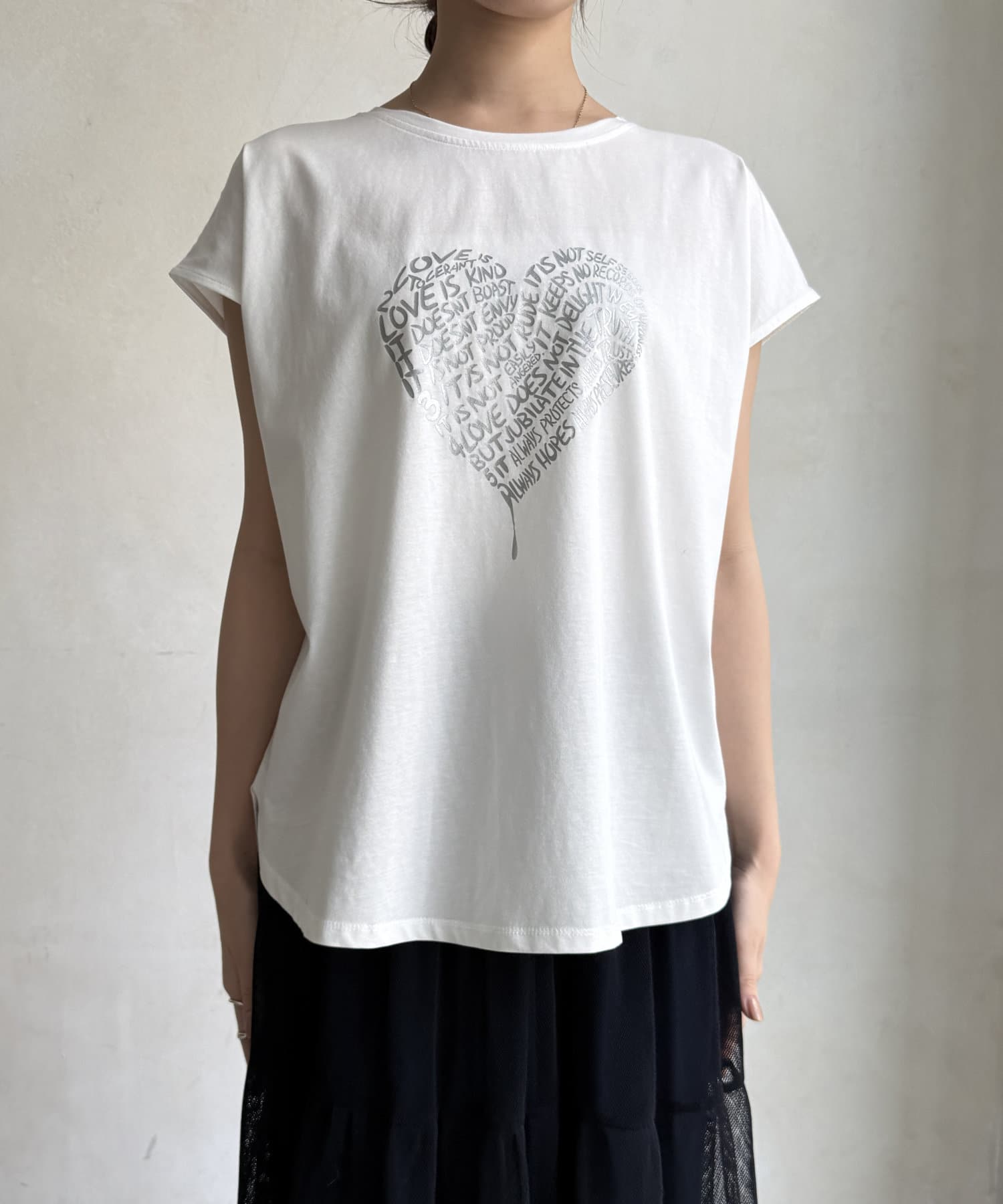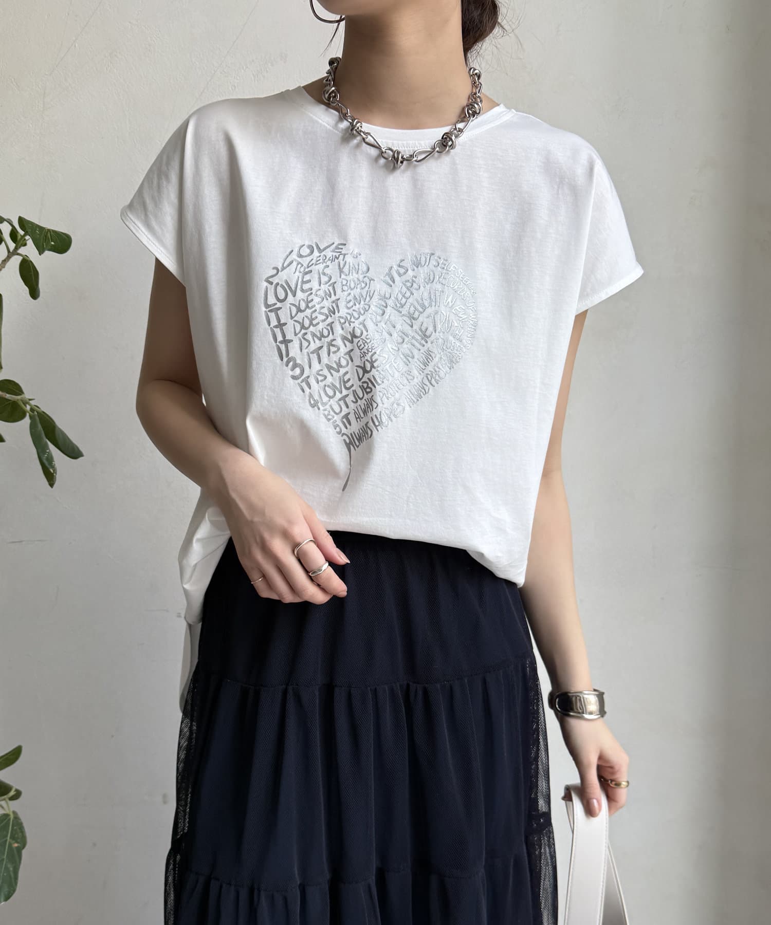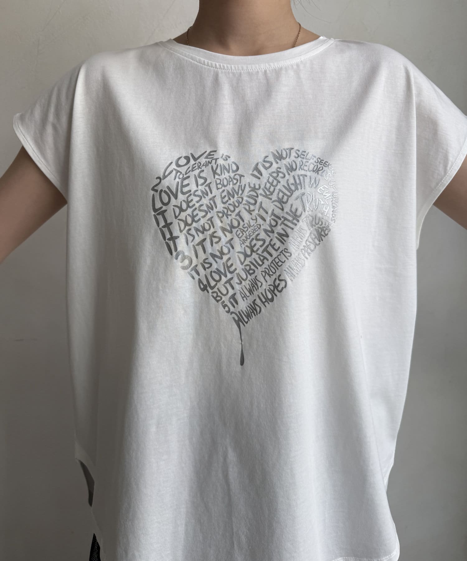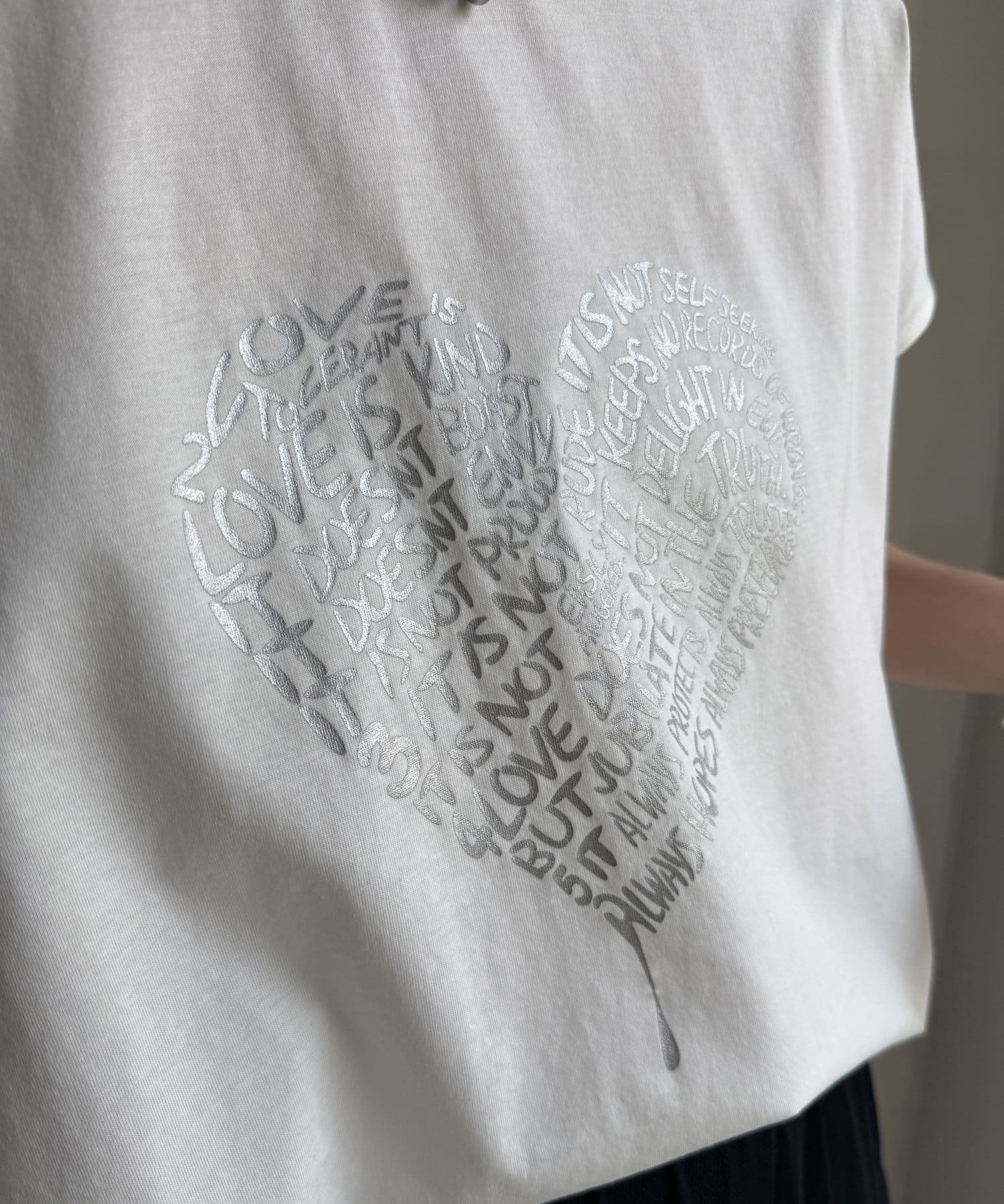 ロゴがぎっしり詰まったハートデザインがお洒落なカットソー。