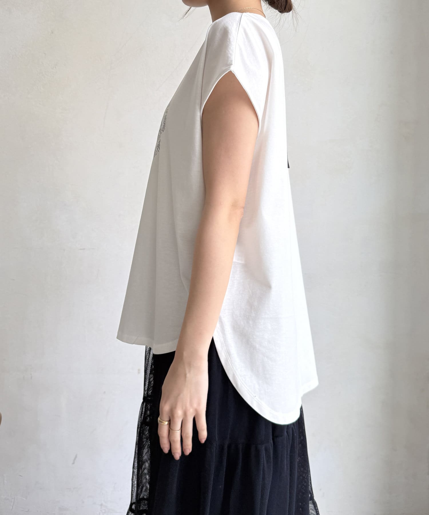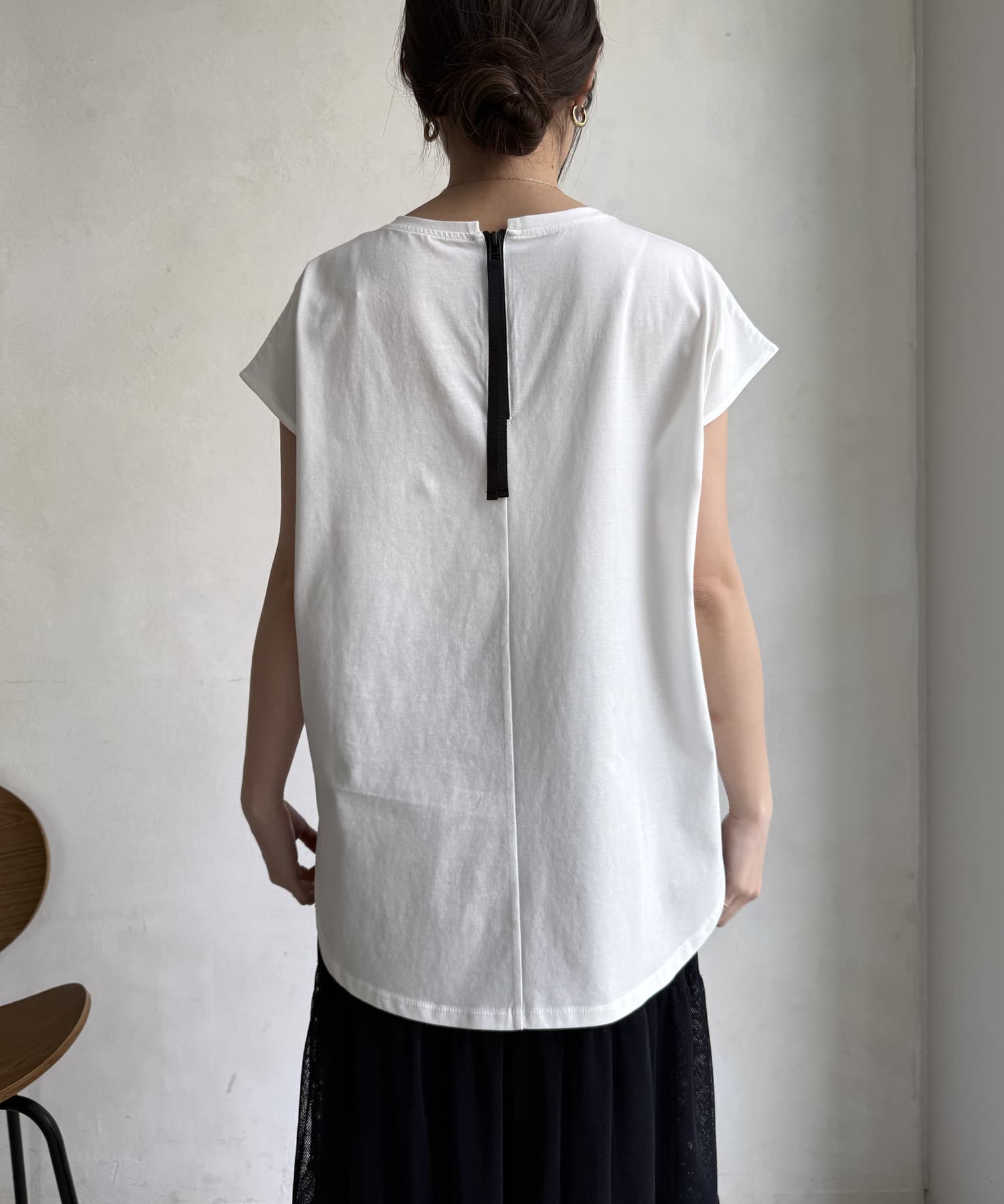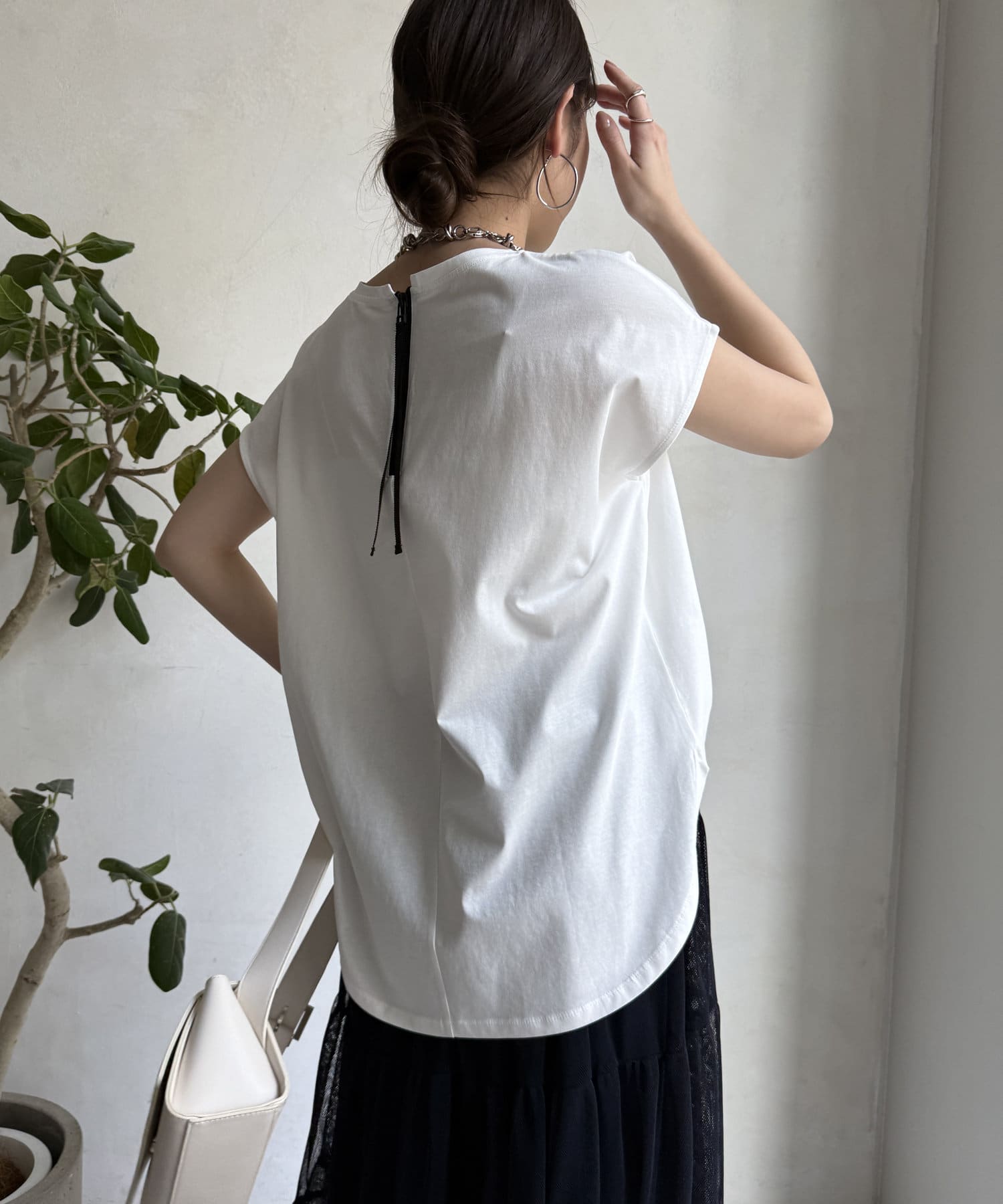 ややリラックス感のあるサイズに仕上げ、フレンチスリーブが上品な印象に。