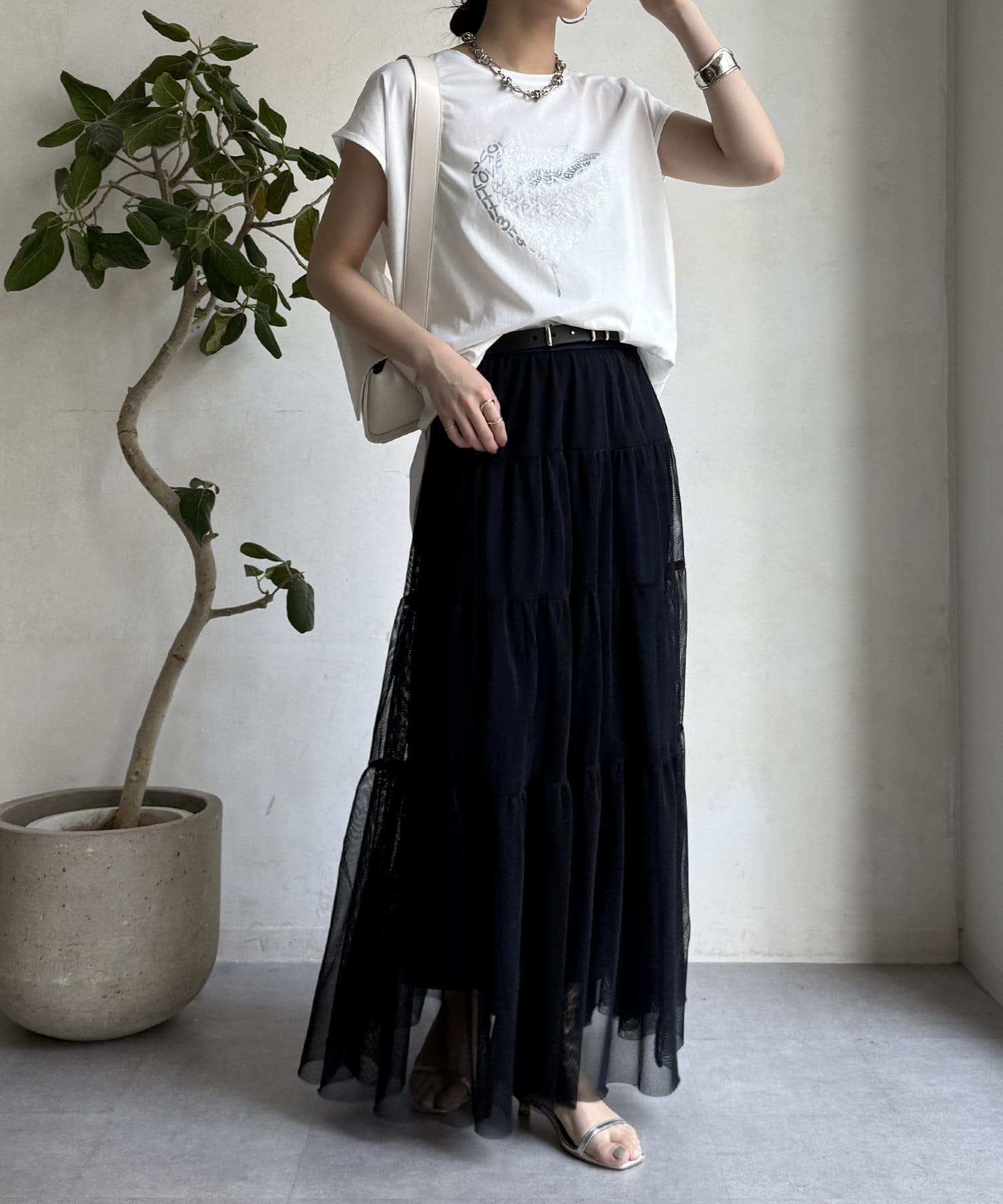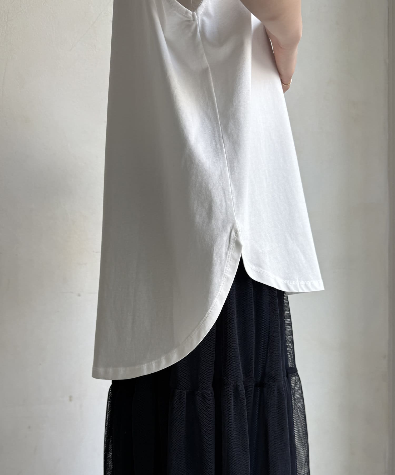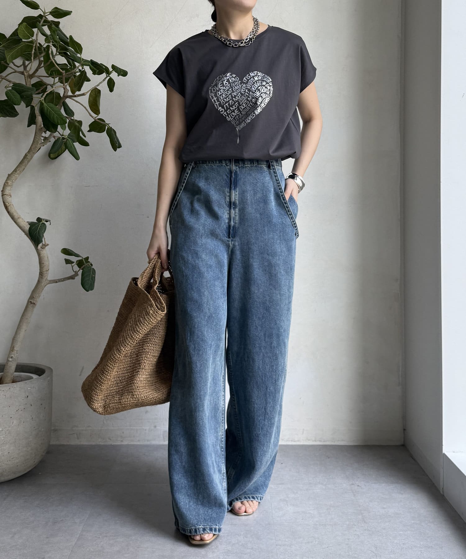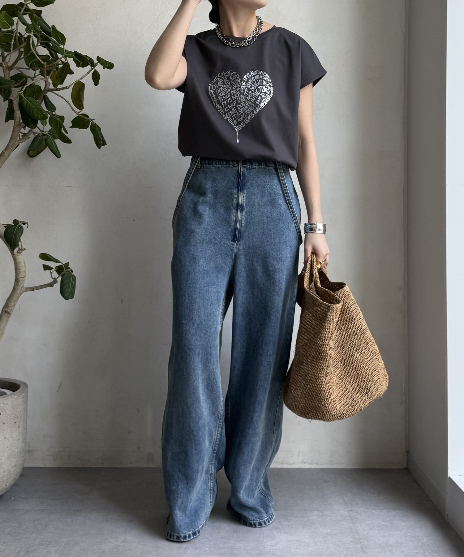 ややリラックス感のあるサイズに仕上げ、フレンチスリーブが上品な印象に。